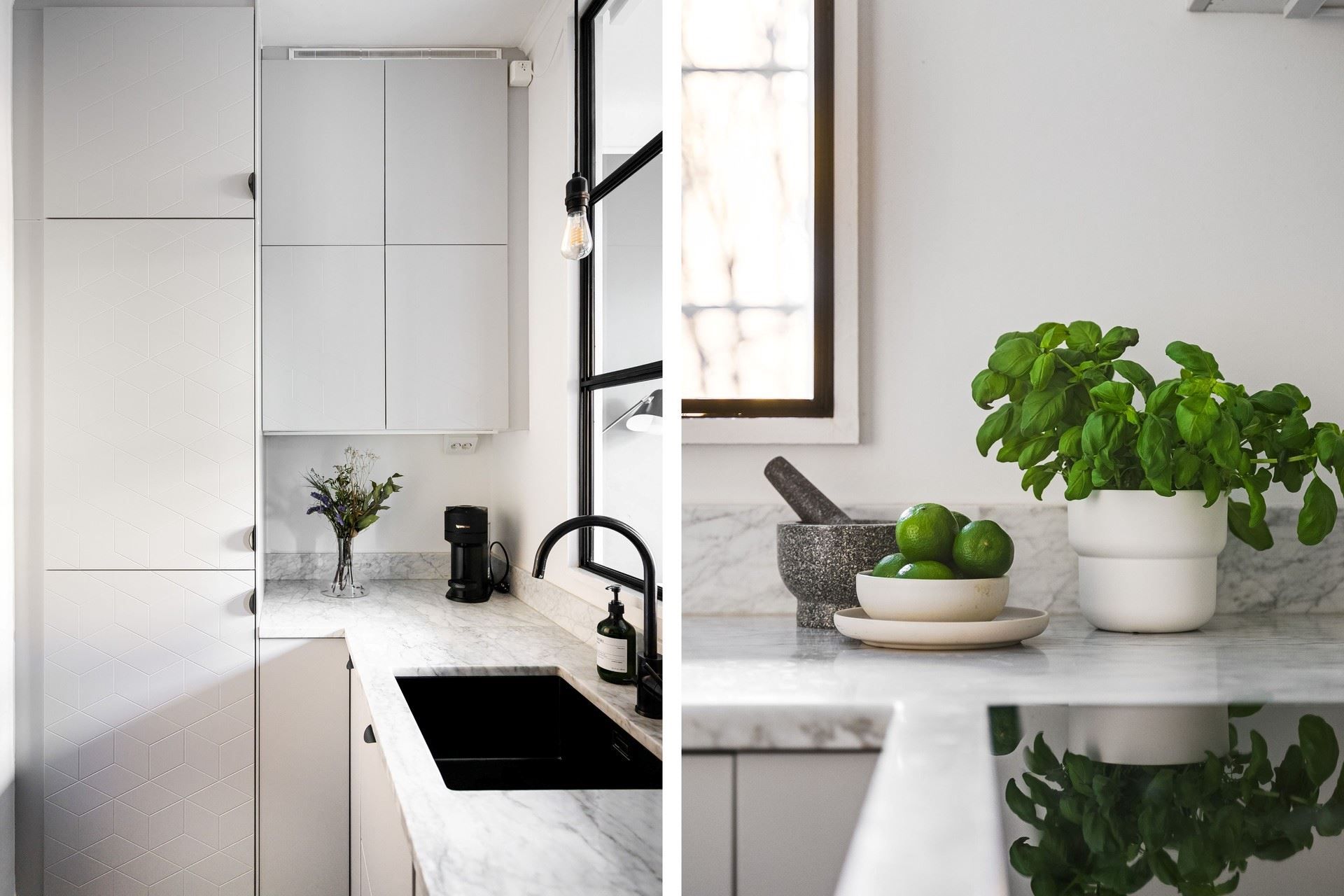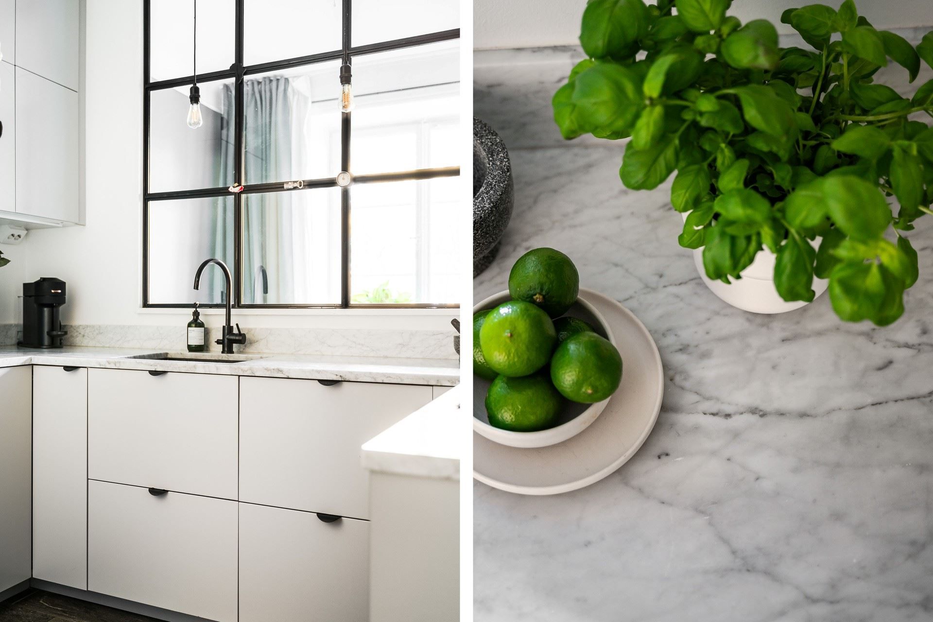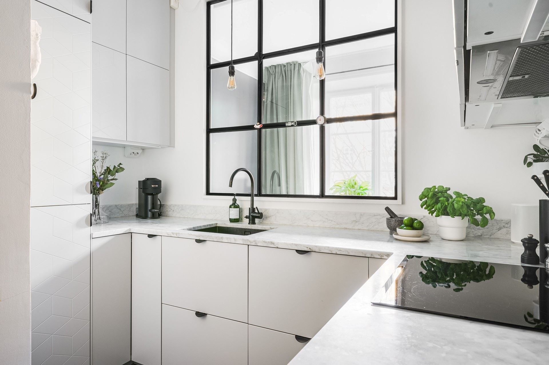 - Genomgående hög standard och fina materialval med bland annat massiva furugolv, klinkergolv och köksbänk i marmor.