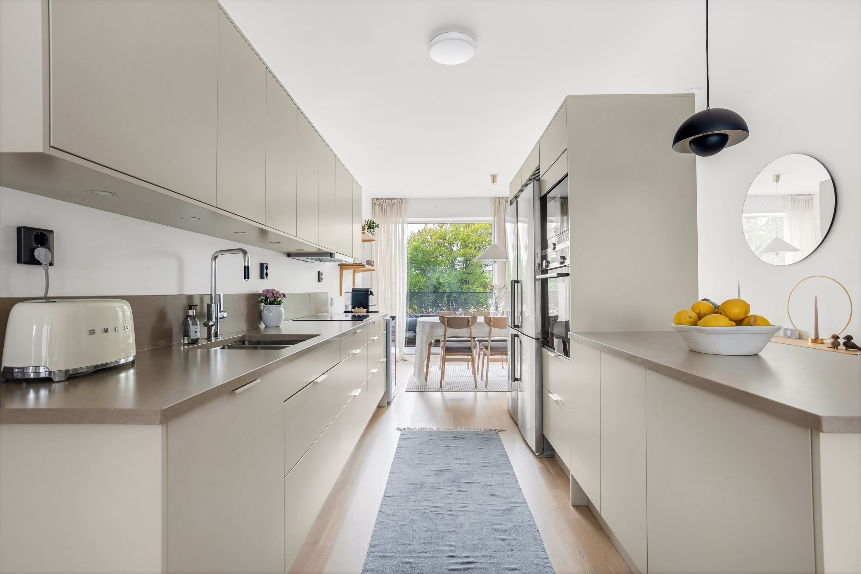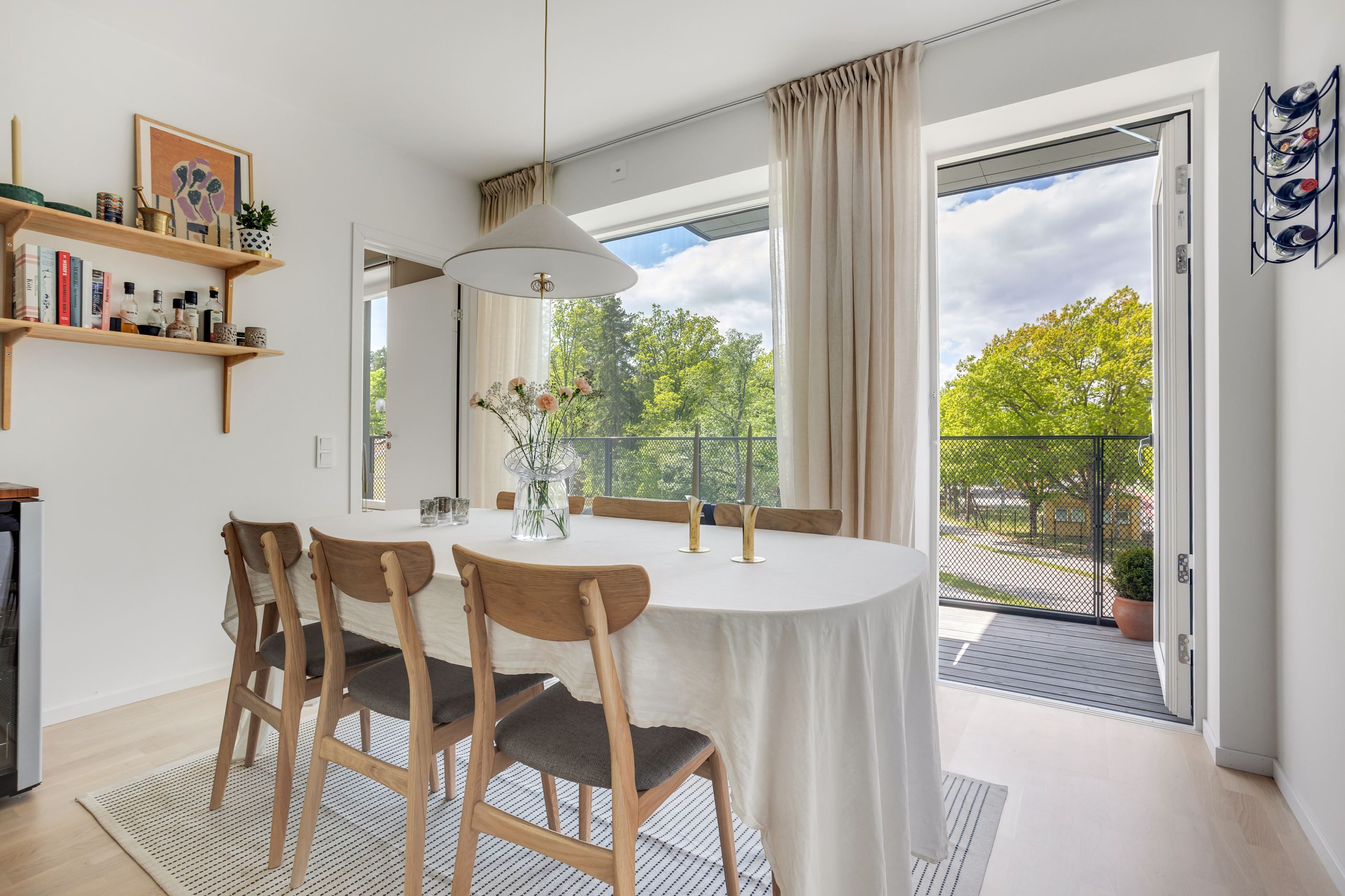 Mitt bland Äppelvikens charmiga 20-talsvillor ligger denna smakfulla fastighet med välplanerade lägenheter och en otroligt fin innergård. Här får ni två badrum, stort sällskapsrum, smakfullt och toppmodernt kök samt två lättmöblerade sovrum. Ett av sovrummen går med enkla medel att dela av till två för att omvandla lägenheten till en 4:a (se alt planritning). Lägenhetens hjärta är verkligen vardagsrum/kök där den öppna planlösningen ger en känsla av rymd samtidigt som ljusflödet är som bäst här med två stora fönsterpartier med fantastisk utsikt. Två balkonger, en i öst och en i väst, vilket innebär att lägenhetens balkonger har sol från tidig soluppgång till sen kvällssol. Fastigheten är nybyggd 2022 med moderniteter som garage (med laddstolpar) och hiss i huset samt vattenburen golvvärme i lägenheterna.