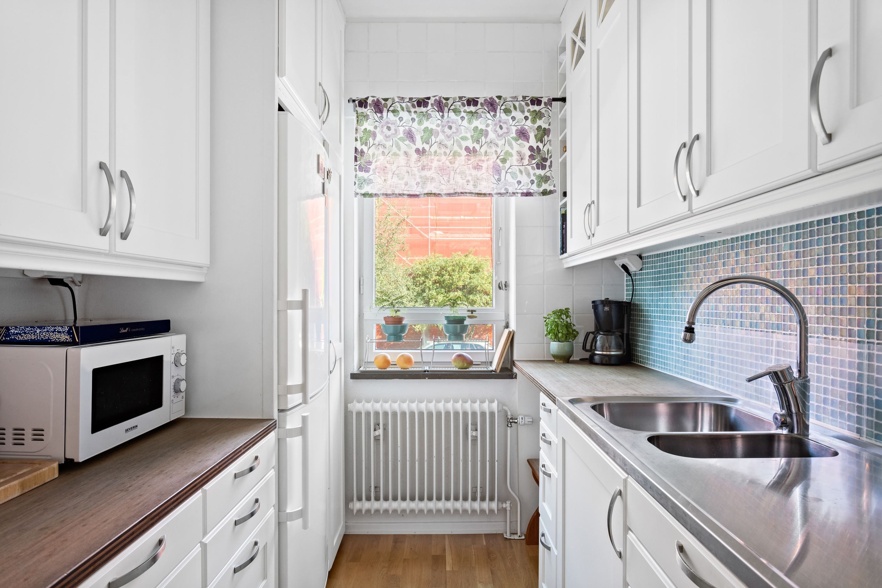Bostaden erbjuder ett fräscht arbetskök med goda arbetsytor, ett helkaklat badrum i modern stil samt ett rymligt sovrum med plats för dubbelsäng och gott om förvaring. Det stora vardagsrummet bjuder på härligt ljusinsläpp och gott om plats för både soffgrupp och matsalsdel – härifrån nås även den soliga balkongen där du kan njuta av dagens bästa timmar. Matrummet kan med fördel användas som ett extra sovrum, hemmakontor eller barnrum, vilket gör bostaden flexibel för olika behov.