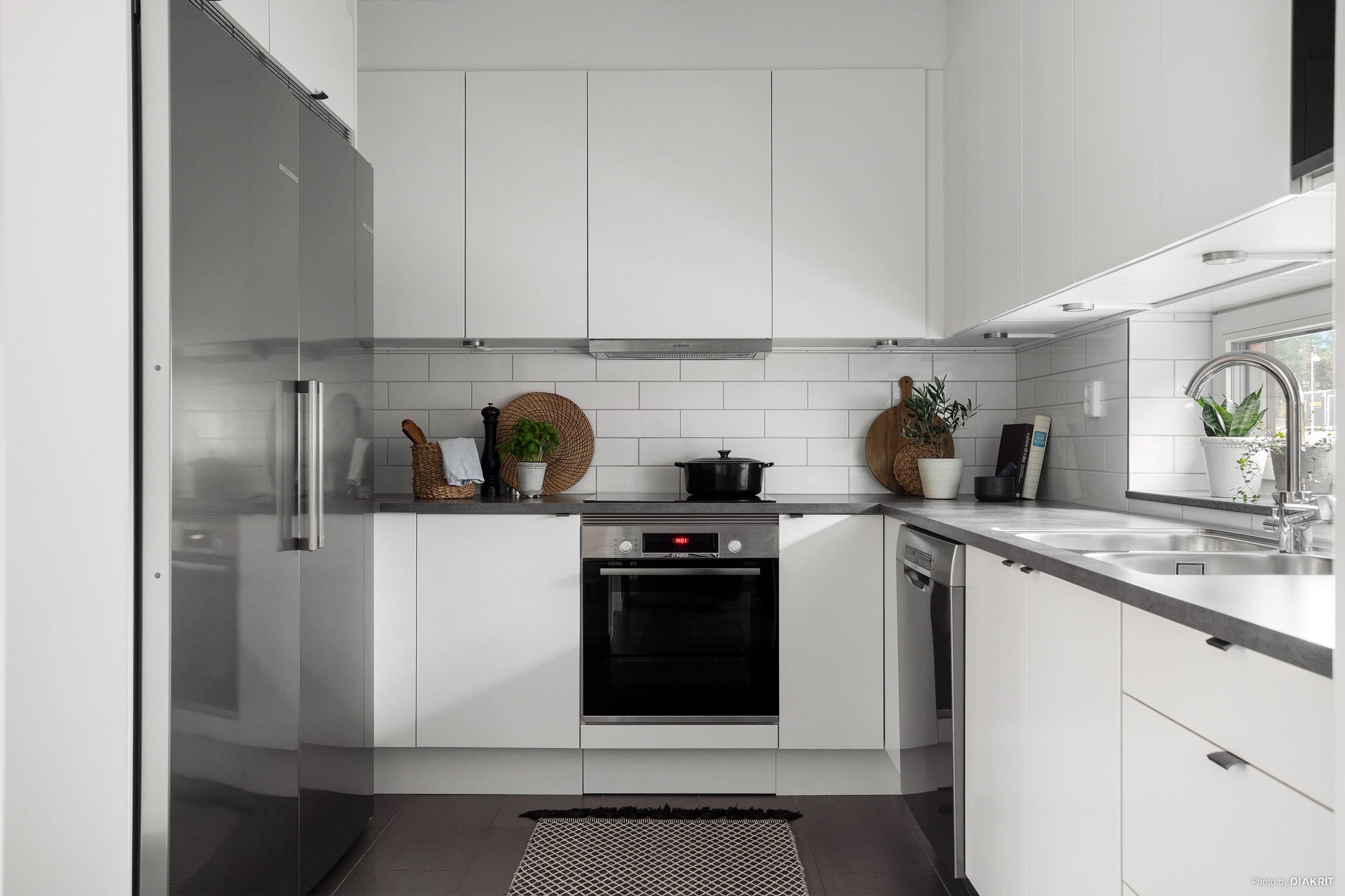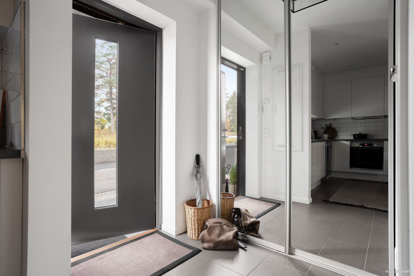 Entréplan erbjuder ytor som är sociala och inbjudande. Det stilfullt inredda köket bjuder in till samtal medan maten tillagas, och tack vare den smarta planlösningen har du kontakt med både matplats och vardagsrum. De stora fönsterpartierna suddar ut gränsen mellan ute och inne, och leder dig vidare till den generösa uteplatsen. Uteplatsen är väl tilltagen, och läget i området är otroligt bra. Här finns plats att duka för stora sällskap när ni bjuder in till grillfest. Här är det enkelt att umgås och njuta av livet. På entréplan finner ni även ett av bostadens två badrum.