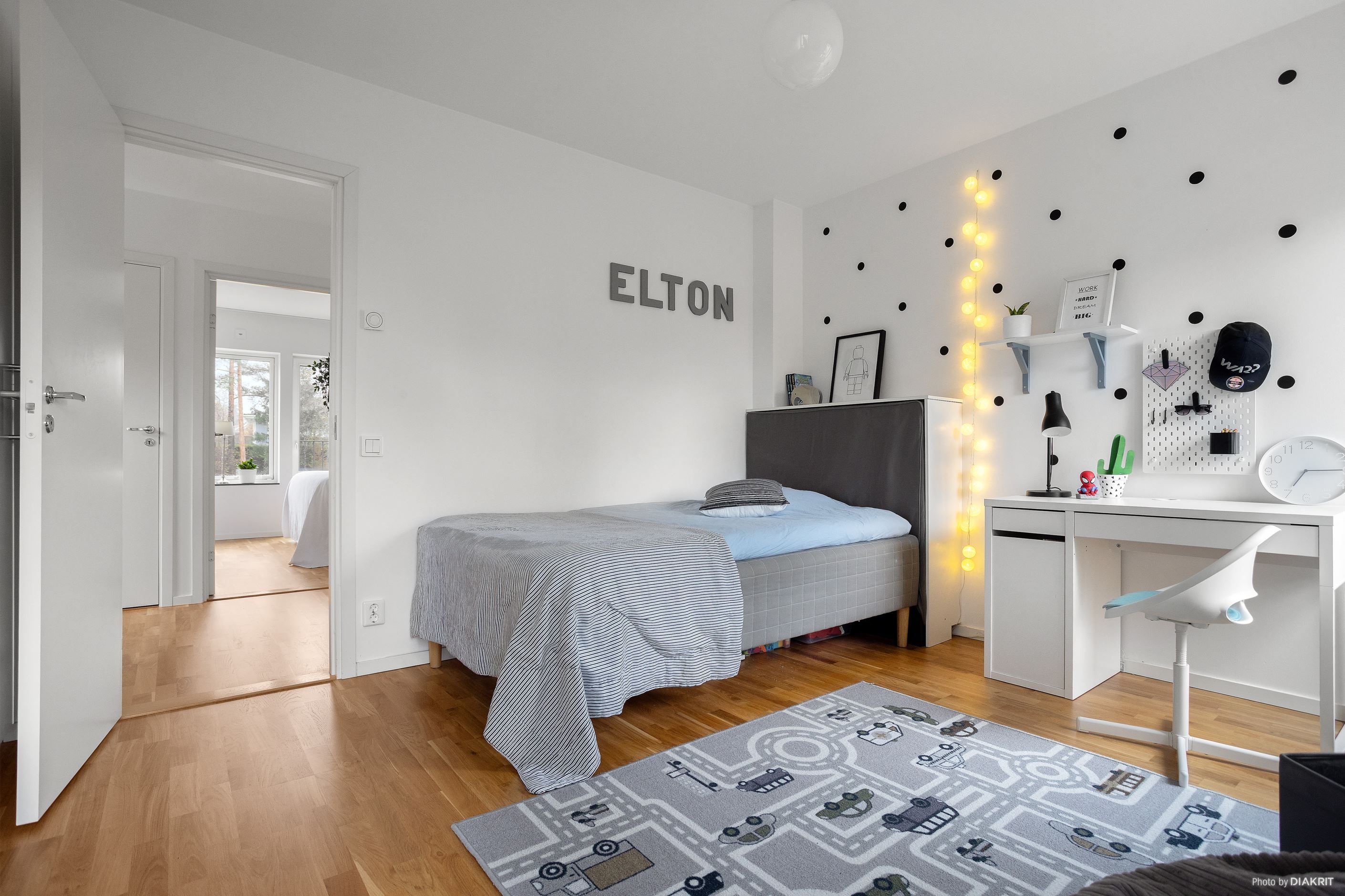 En trappa upp finns två sovrum i bra storlek, varav ett med lyxig walk in closet, som gör vardagen lite enklare och mycket trevligare. Här hittar du även det andra av bostadens två badrum, och gott om förvaring.