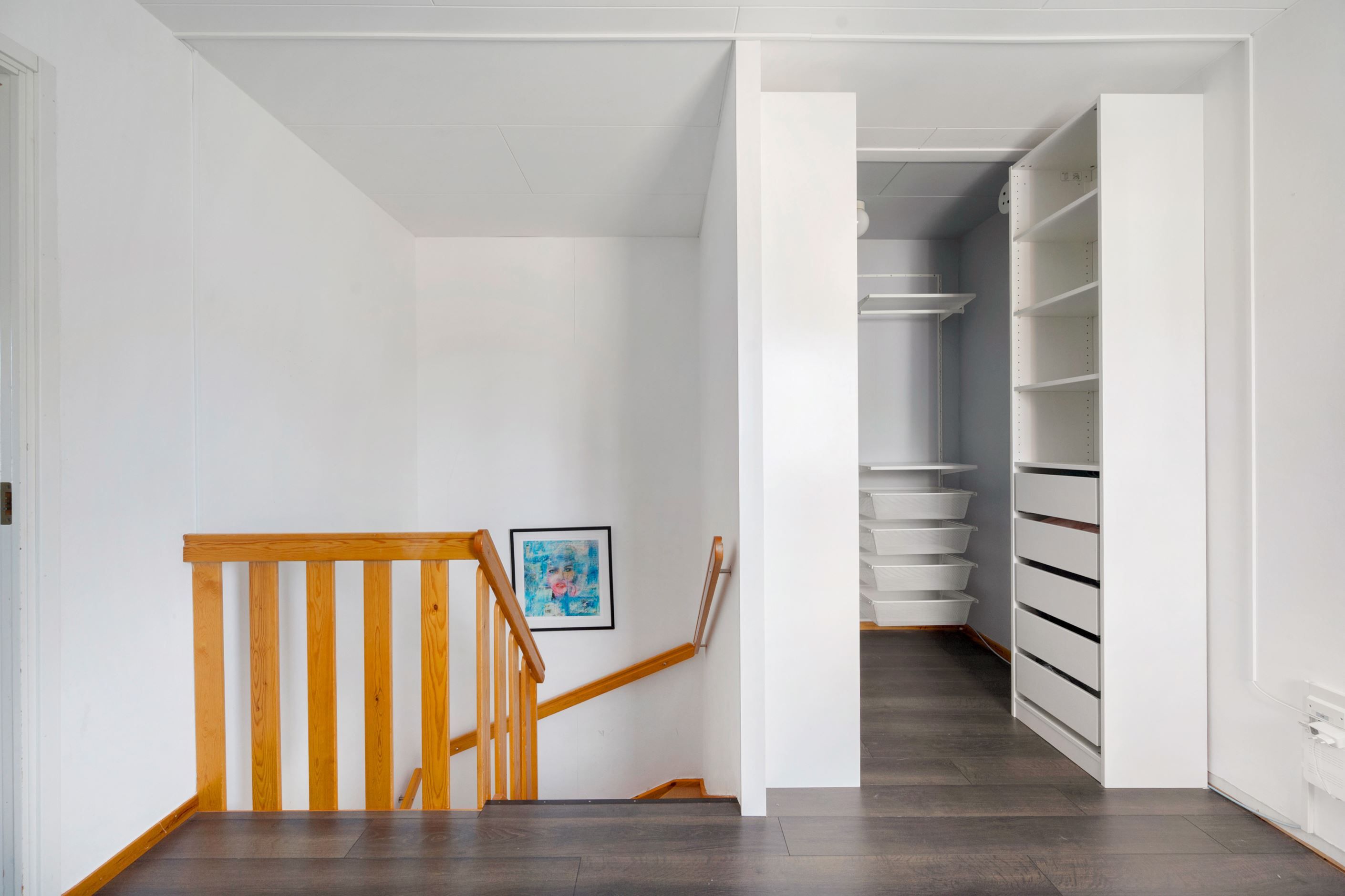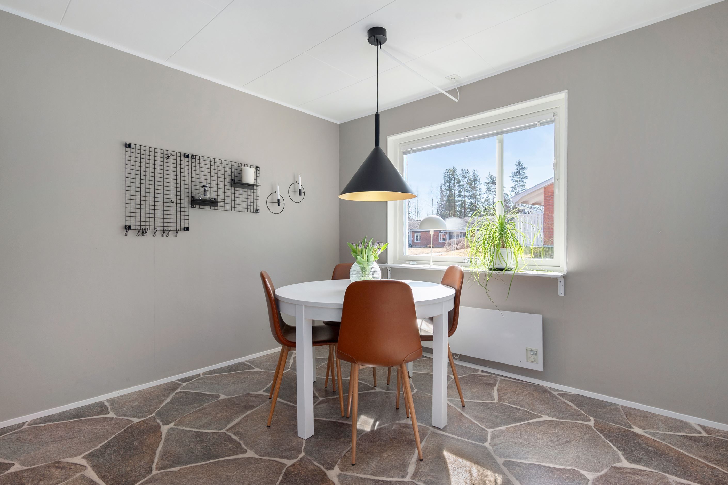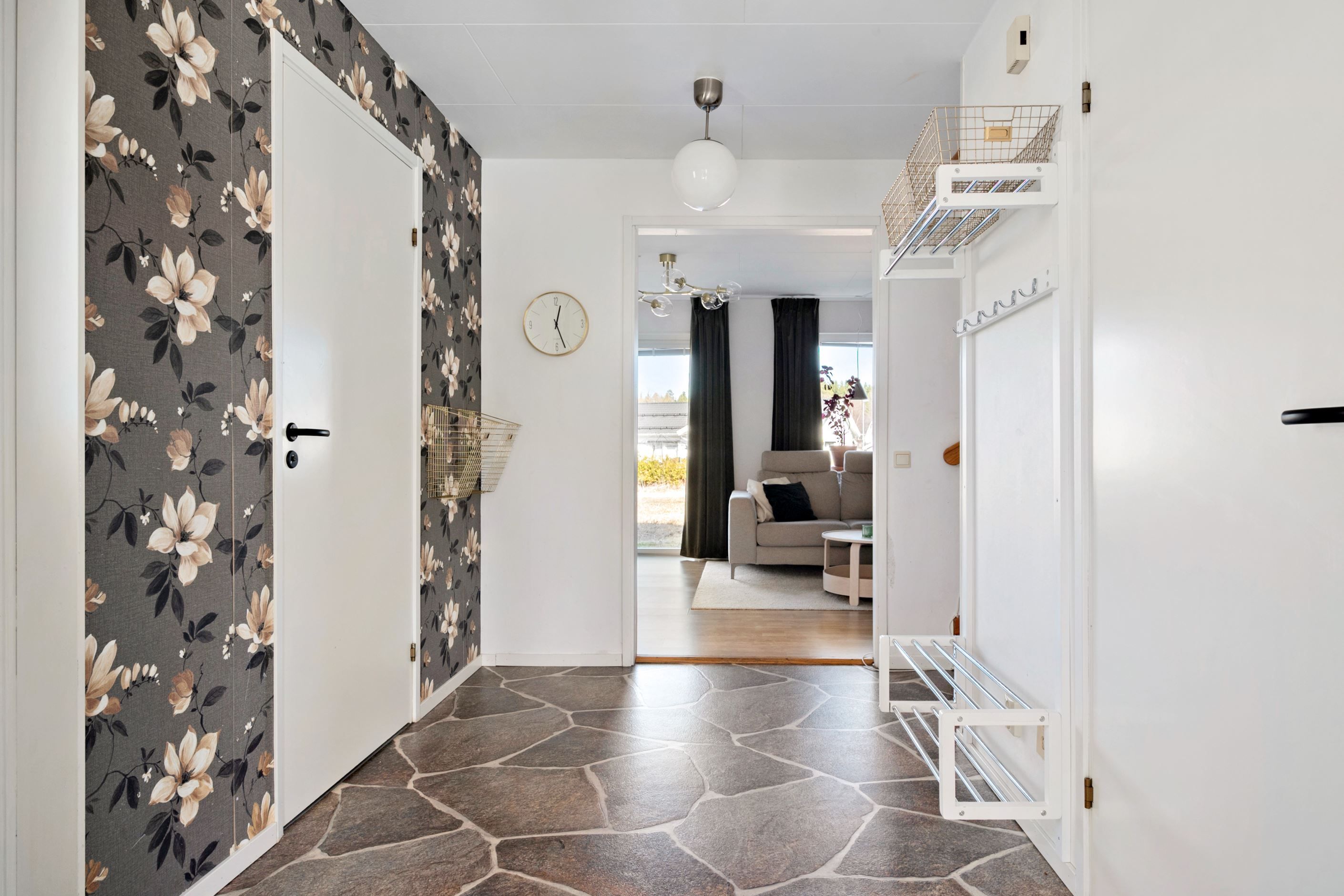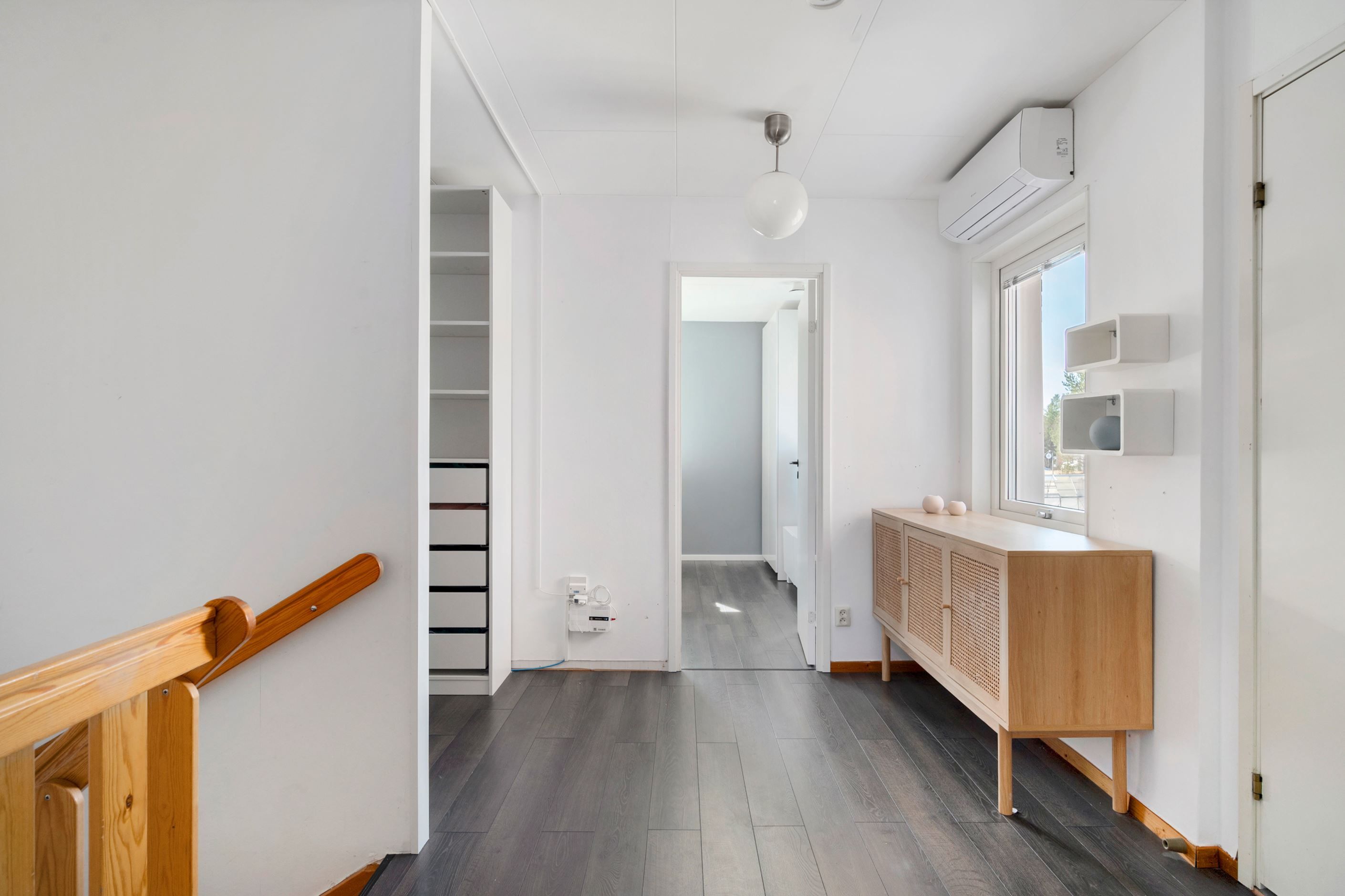 Bostaden erbjuder ett modernt och lättskött hem med genomgående målade ytskikt, stilrent kök med vita luckor och rostfria vitvaror samt två fräscha badrum med nya kommoder och speglar. Planlösningen är smart fördelad med sociala ytor på entréplan och en mer privat sovrumsdel på övre plan.