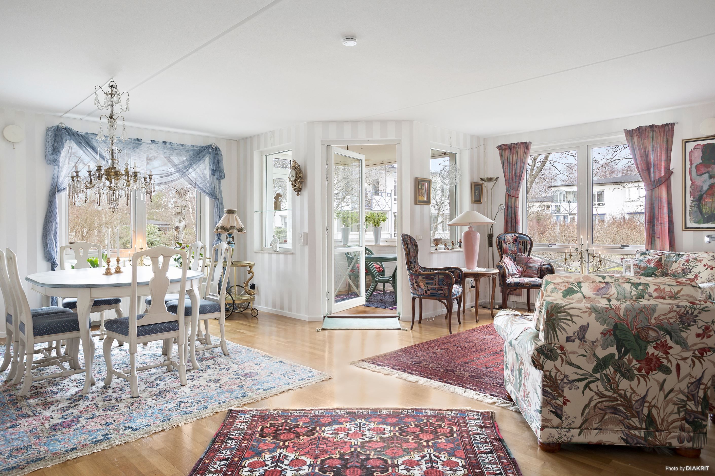 Rymlig och välplanerad trerummare om 110 kvm i attraktiva Brf Armeriahus. Här bor man i ett trivsamt 55+ boende med social gemenskap och unika mervärden. Lägenheten ligger i hörnläge på markplan med direkt utgång till inglasad veranda, trädgård och uteplats, vilket ger en härlig villakänsla. Bostaden har generöst ljusinsläpp, stort vardagsrum med möjlighet att skapa ett fjärde rum, två rejäla sovrum, renoverat kök samt både helkaklat badrum och separat gäst-WC. Till lägenheten hör även en carport vilket kan vara skönt framförallt under vintermånaderna. De boende i området har tillgång till gemensamma faciliteter som restaurang (8 st luncher ingår i månadsavgiften), gästrum, festlokal och boulebana. Ta chansen att bosätta dig i en underbar miljö med närhet till havet och med all tänkbar service i närheten.