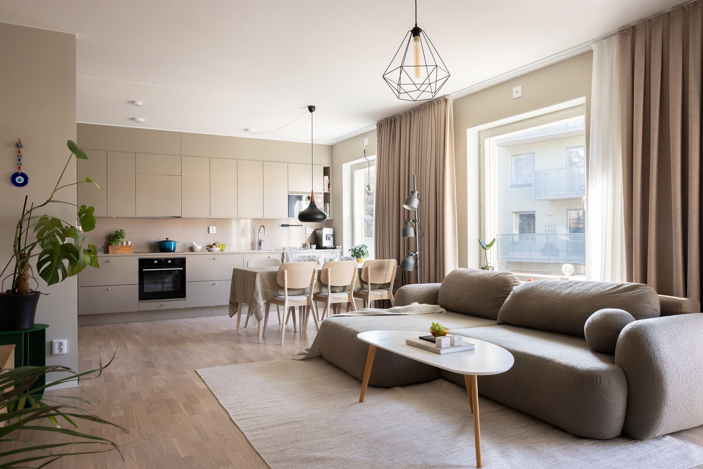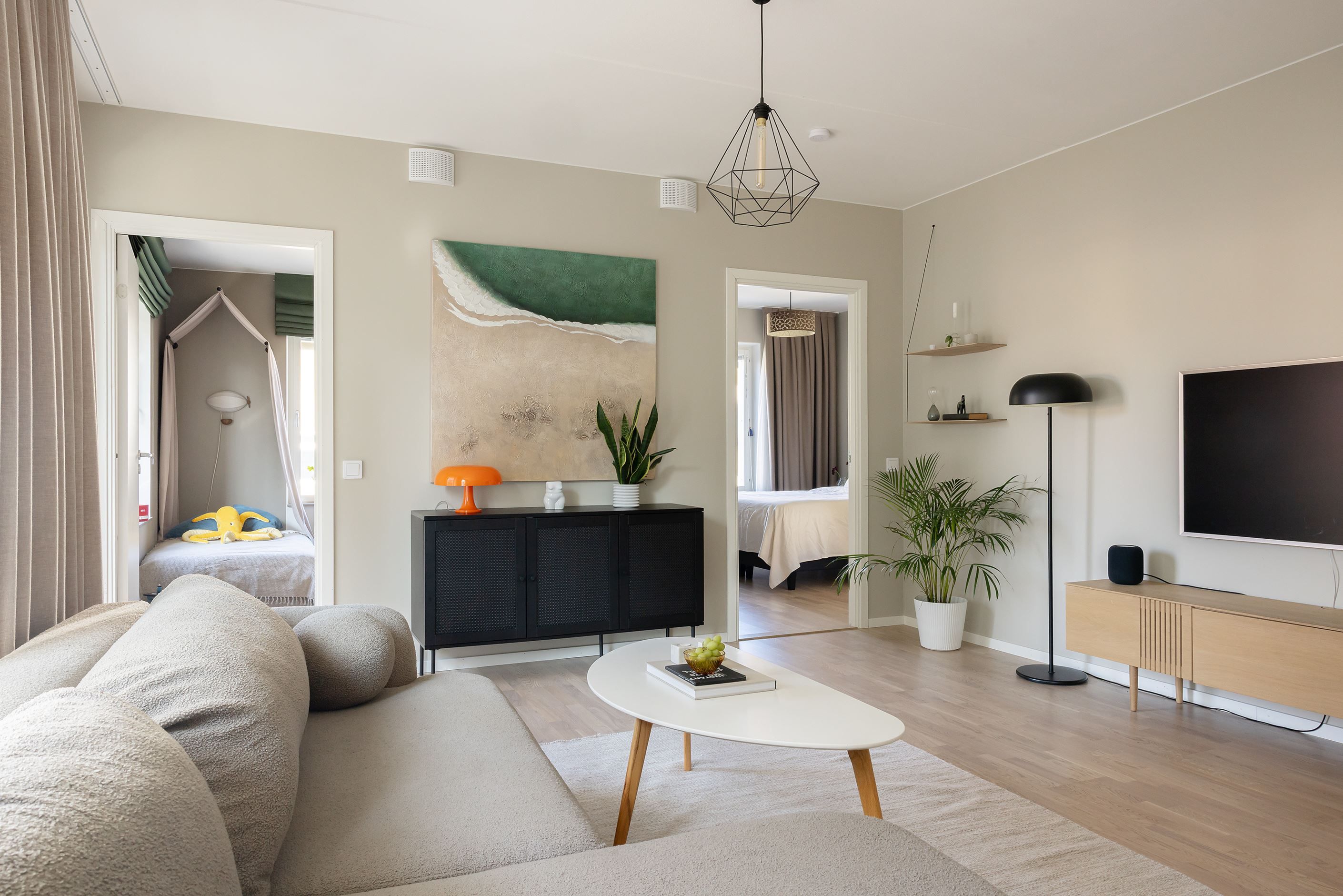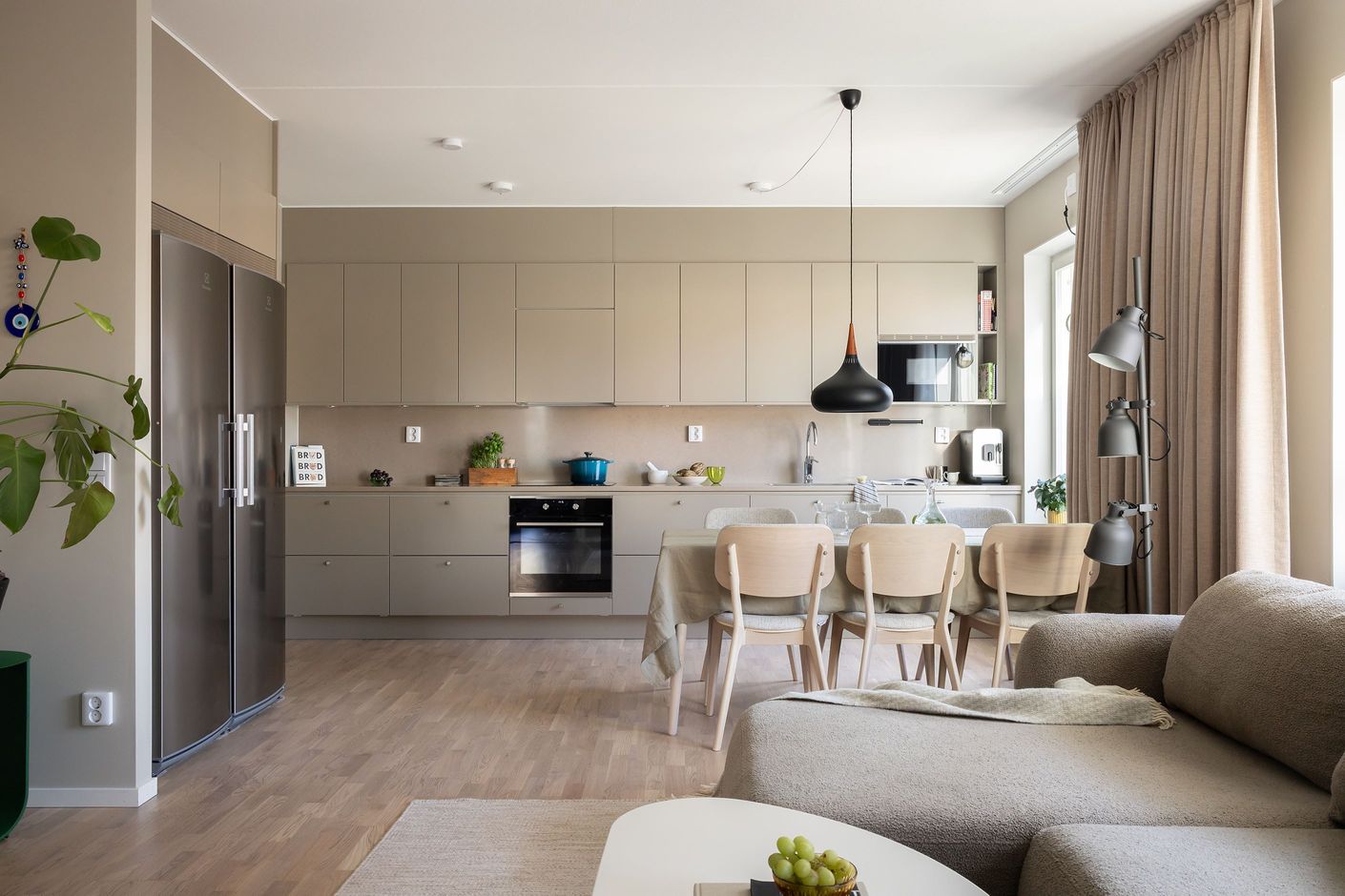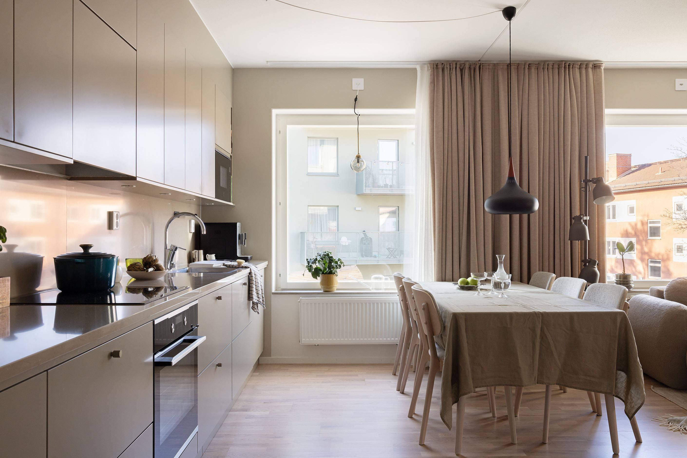 Hemmets 76 välplanerade kvadratmeter bjuder på en öppen och social planlösning mellan kök och vardagsrum – perfekt för både umgänge med vänner och mysiga familjestunder. Med sober färgsättning, noga utvalda material och parkettgolv skapas en enhetlig och exklusiv känsla. Köket från Vedum är påkostat, med bra förvaring, god arbetsyta och maskinell utrustning från Electrolux. Den öppna ytan mot vardagsrummet rymmer både matplats och soffhörna, och gavelläget ger ett fantastiskt ljusinsläpp. Från vardagsrummet nås den härliga balkongen, som blir ett naturligt förlängt vardagsrum under årets varma månader. Båda sovrummen är rogivande och rymliga med garderober för optimal förvaring. Badrummet är stort och helkaklat med dusch, handfat på kommod, WC samt tvättmaskin och torktumlare under praktisk arbetsbänk med skåp. Med modern design, smarta förvaringslösningar och balkong är detta ett riktigt drömhem – välkommen på visning, välkommen hem!