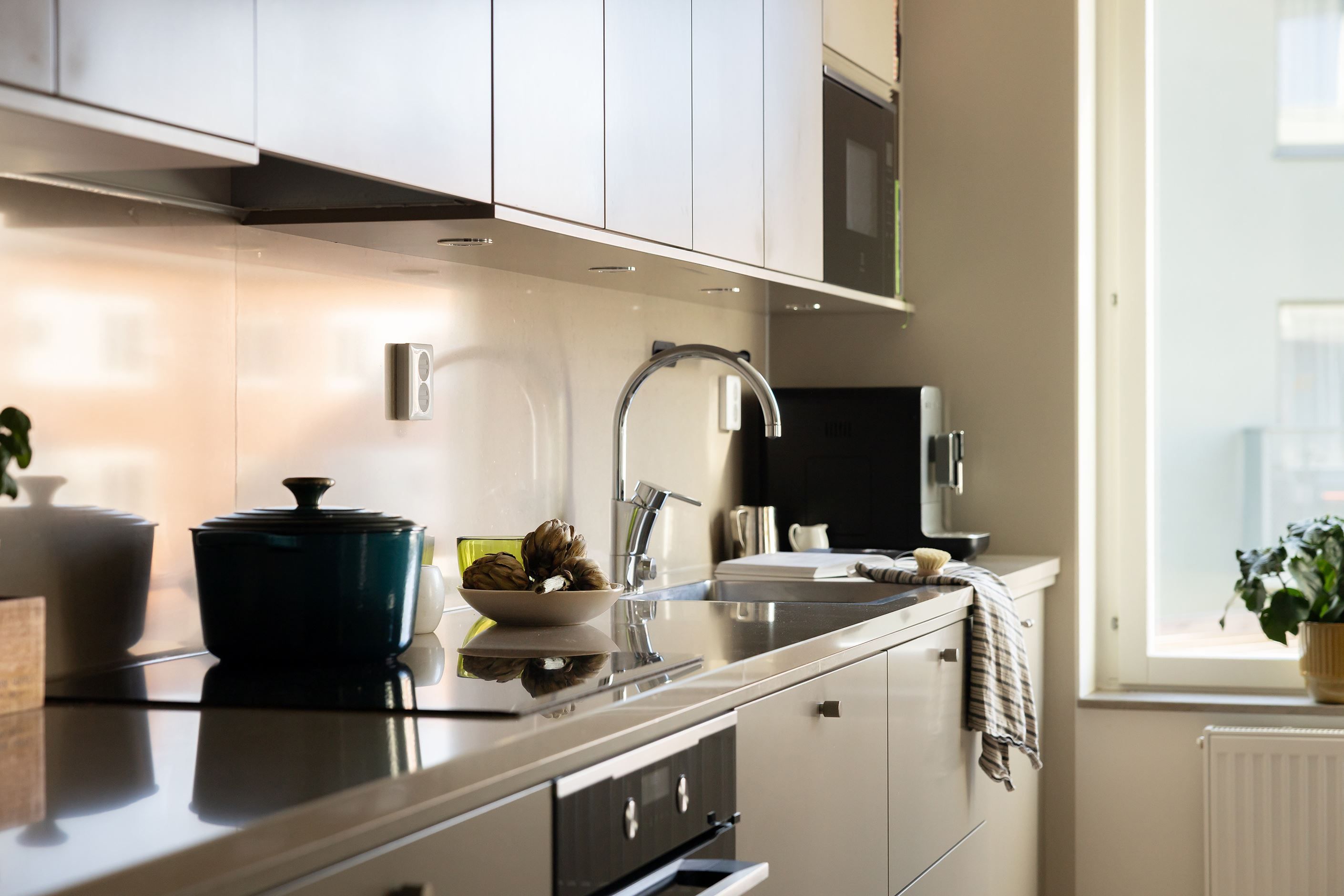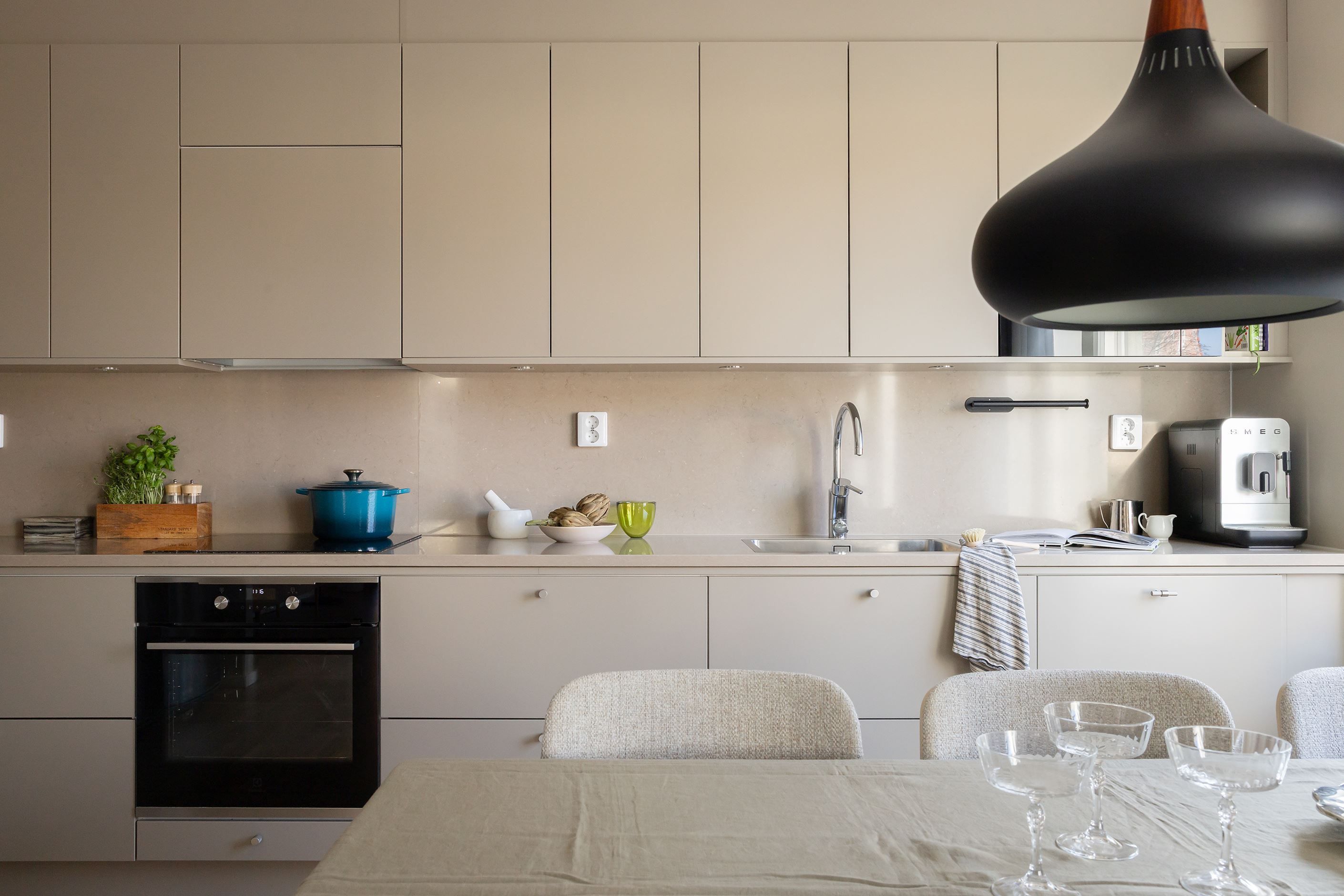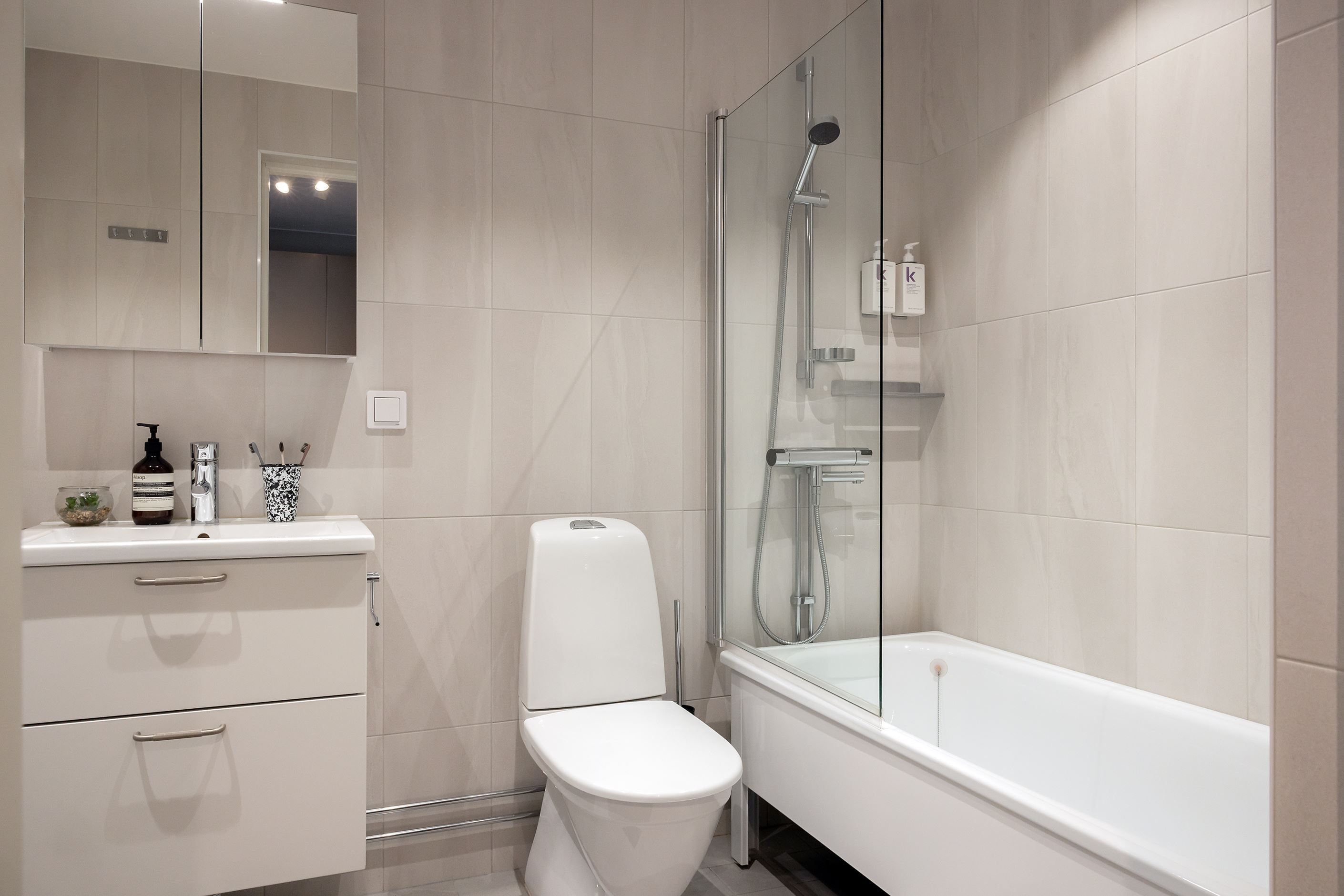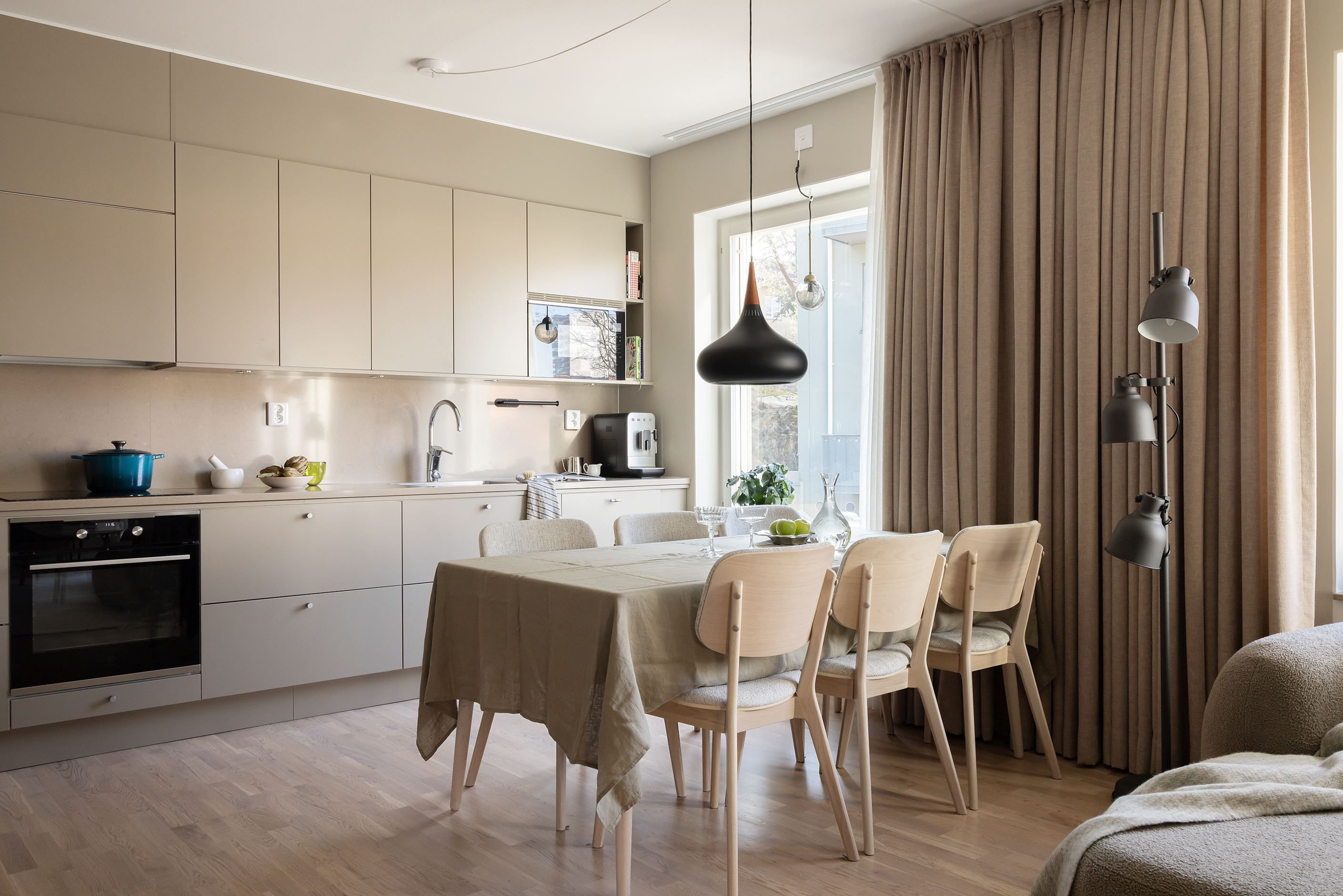 Hemmets 76 välplanerade kvadratmeter bjuder på en öppen och social planlösning mellan kök och vardagsrum – perfekt för både umgänge med vänner och mysiga familjestunder. Med sober färgsättning, noga utvalda material och parkettgolv skapas en enhetlig och exklusiv känsla. Köket från Vedum är påkostat, med bra förvaring, god arbetsyta och maskinell utrustning från Electrolux. Den öppna ytan mot vardagsrummet rymmer både matplats och soffhörna, och gavelläget ger ett fantastiskt ljusinsläpp. Från vardagsrummet nås den härliga balkongen, som blir ett naturligt förlängt vardagsrum under årets varma månader. Båda sovrummen är rogivande och rymliga med garderober för optimal förvaring. Badrummet är stort och helkaklat med dusch, handfat på kommod, WC samt tvättmaskin och torktumlare under praktisk arbetsbänk med skåp. Med modern design, smarta förvaringslösningar och balkong är detta ett riktigt drömhem – välkommen på visning, välkommen hem!