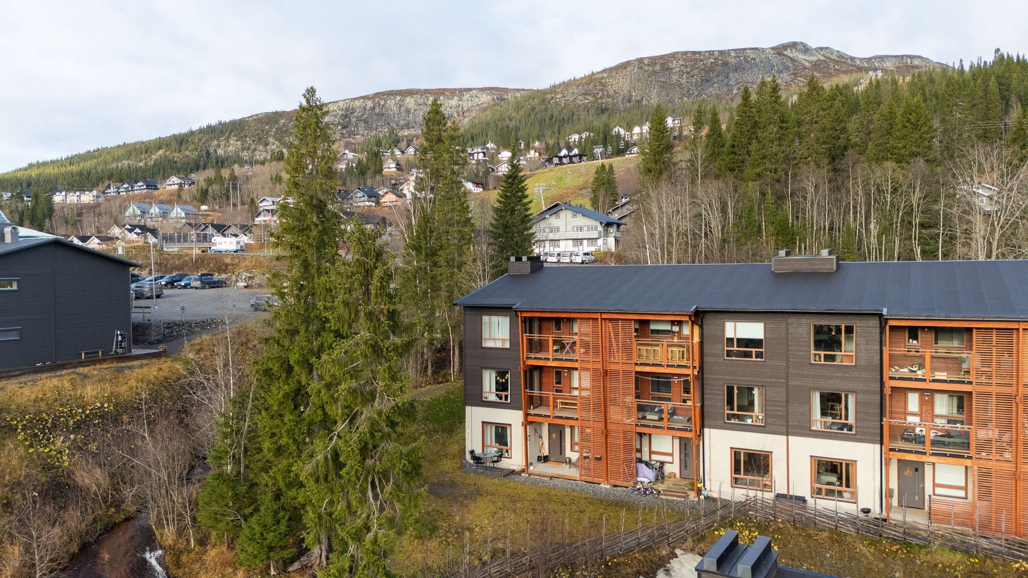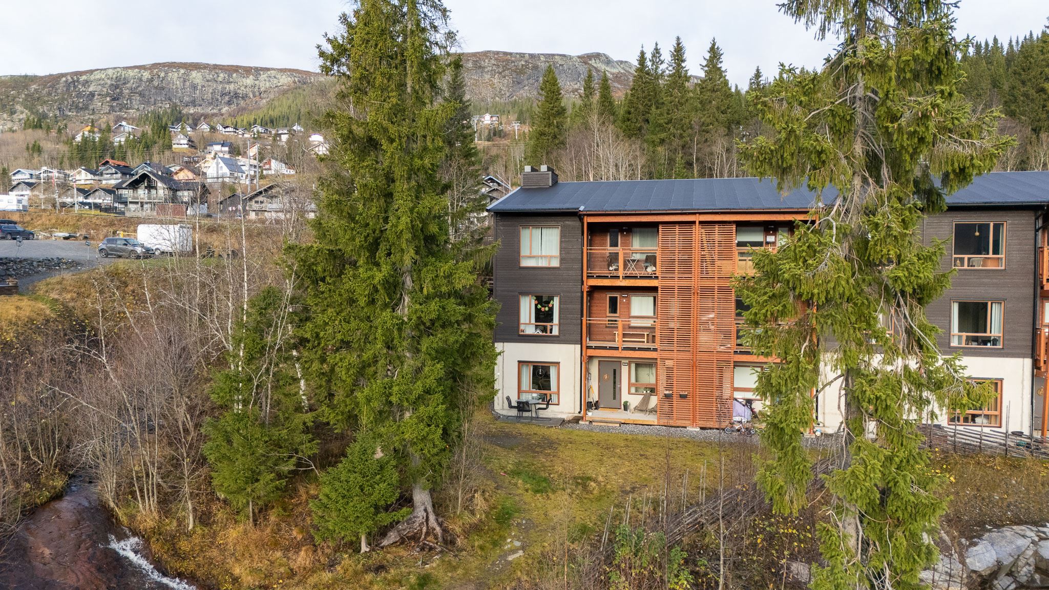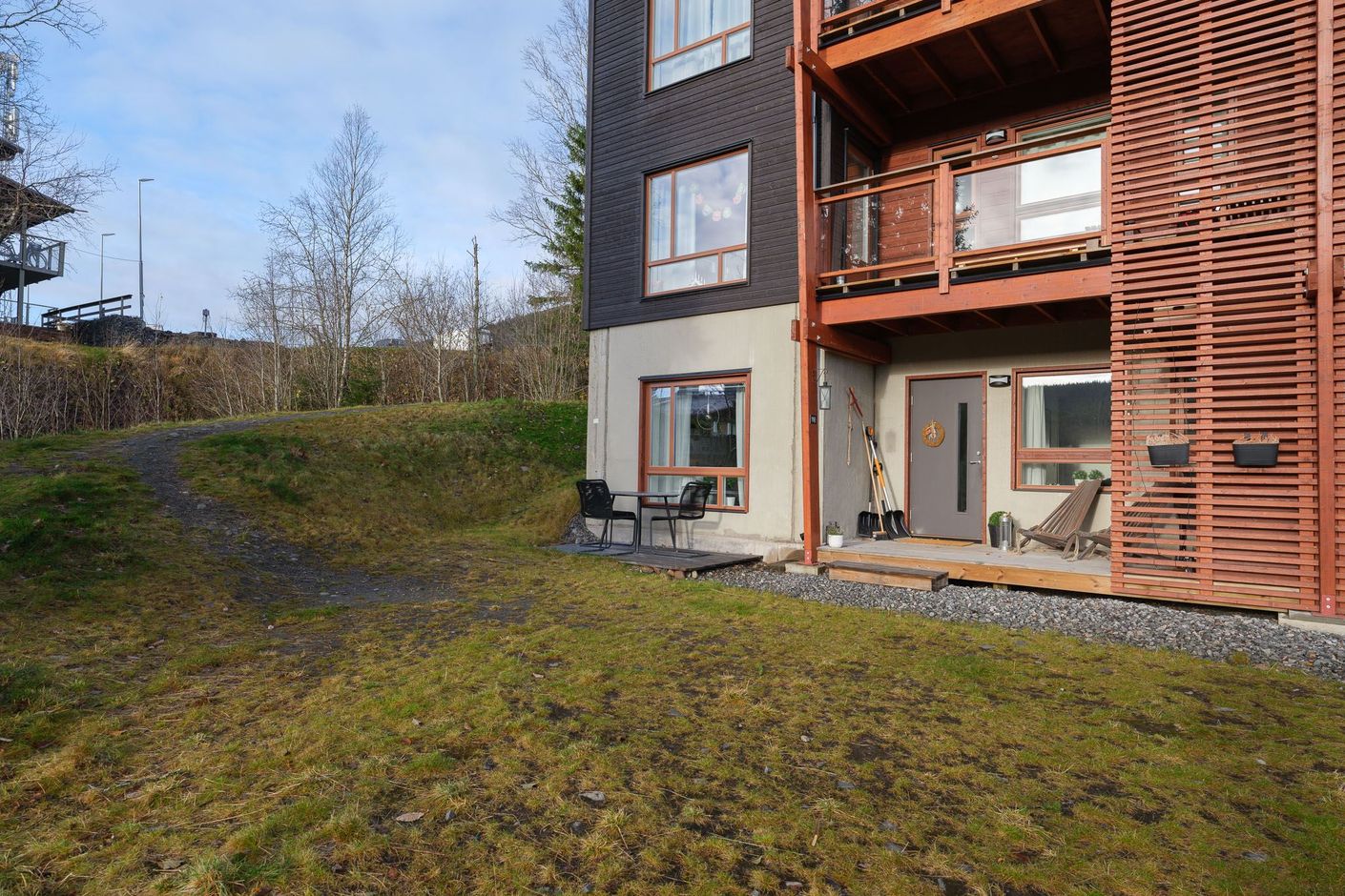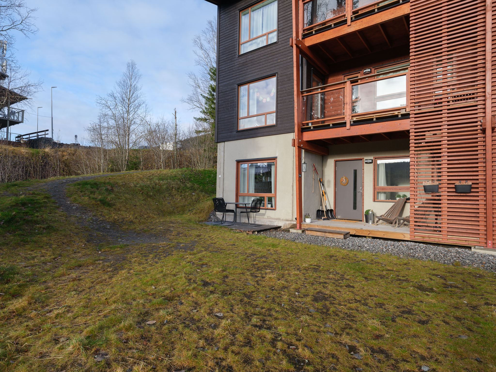 Välkommen till denna ljusa och välplanerade hörnlägenhet om 70 kvm – en perfekt kombination av komfort, funktion och fjällkänsla! Här bor du högst upp i området med ett fritt och soligt söderläge. Från uteplatsen njuter du av solen hela dagen och på husets gavel finns ytterliggare en uteplats med kvällssol i västerläge. På framsidan finns en gräsmatta som inte tillhör lägenheten men är perfekt för barnens lek eller en stund i solen efter dagens äventyr.