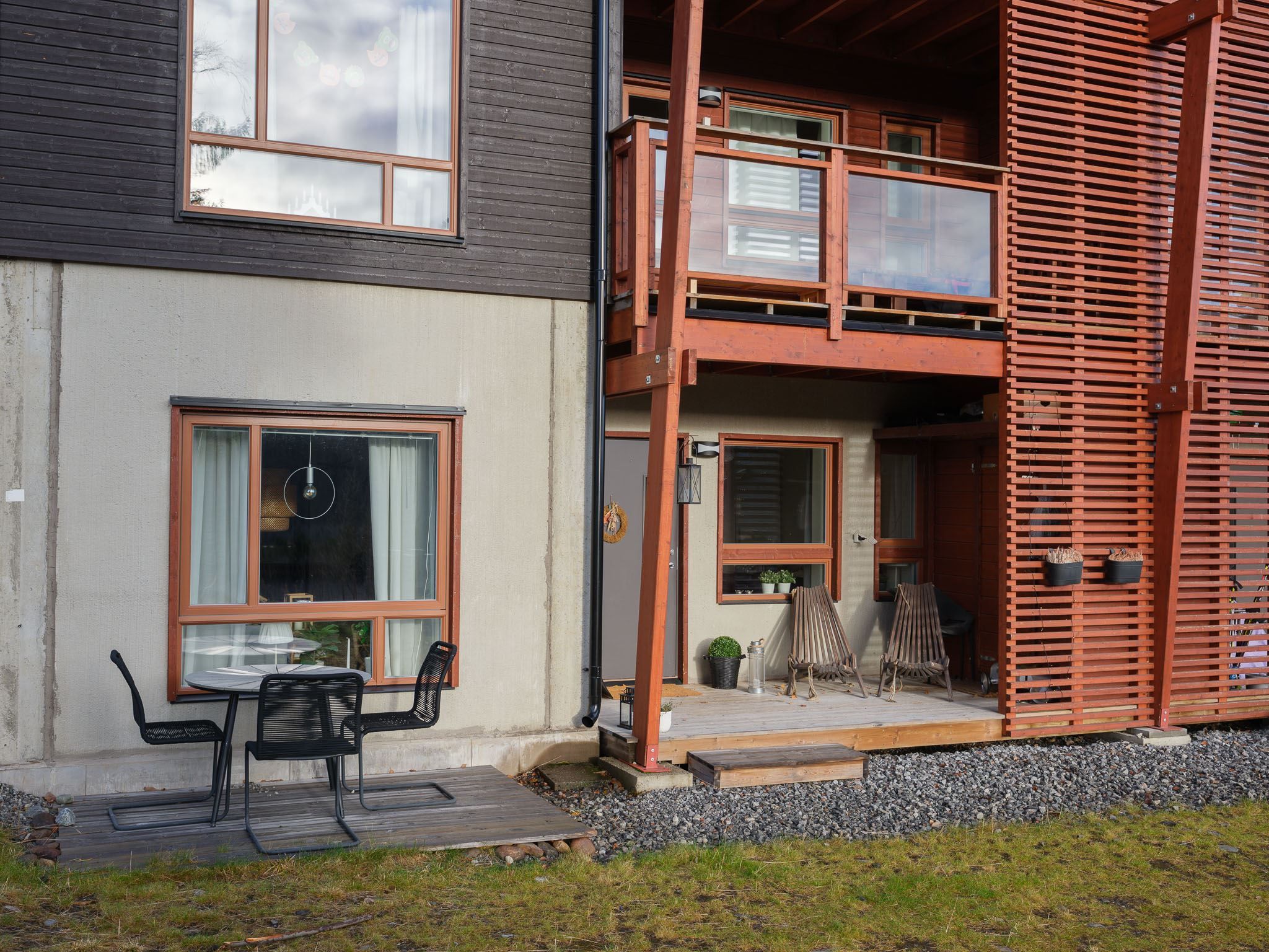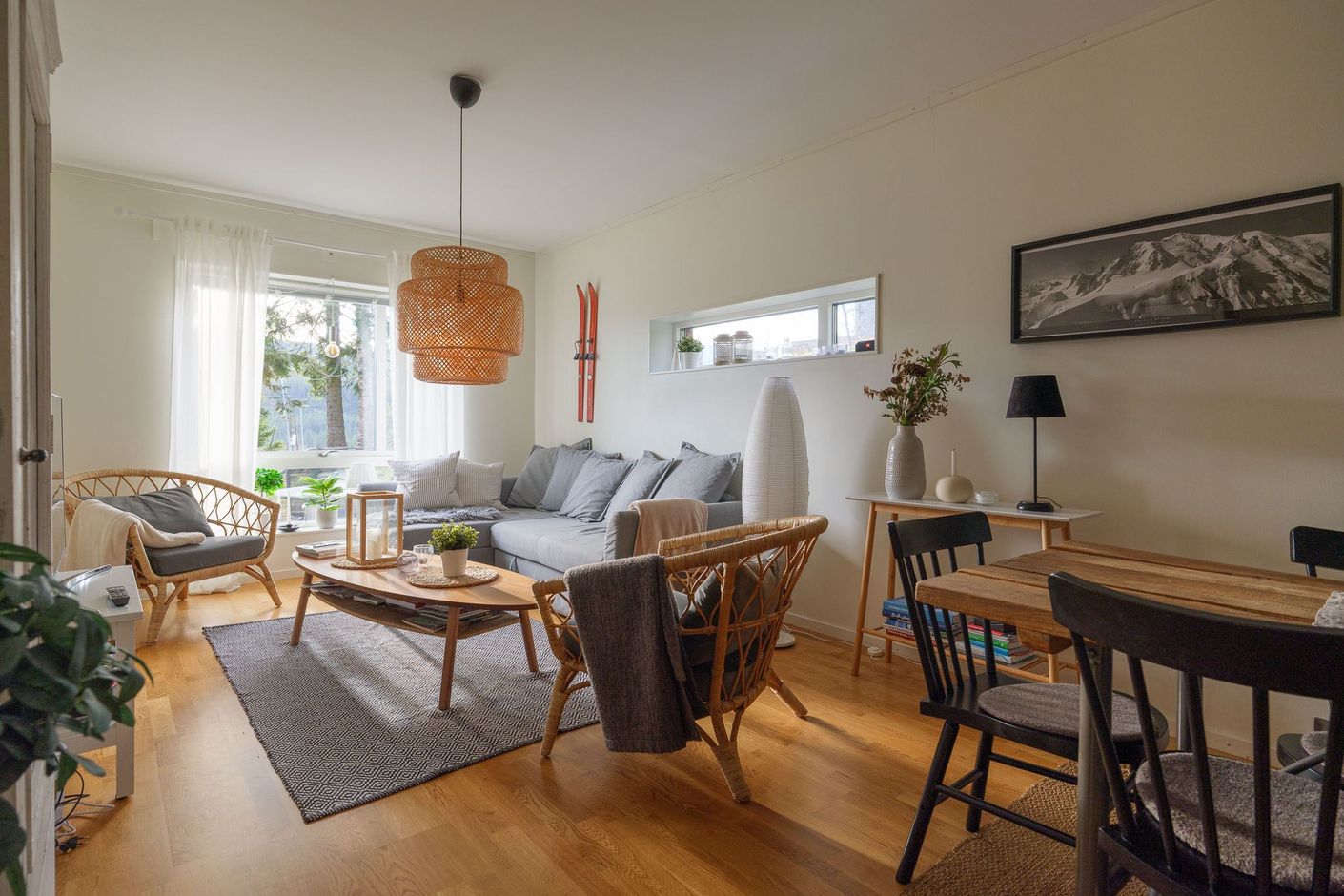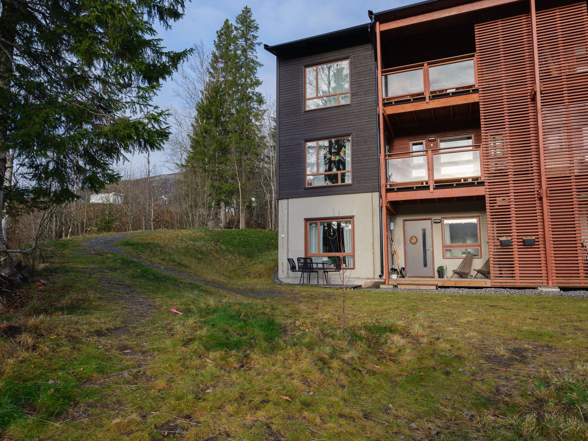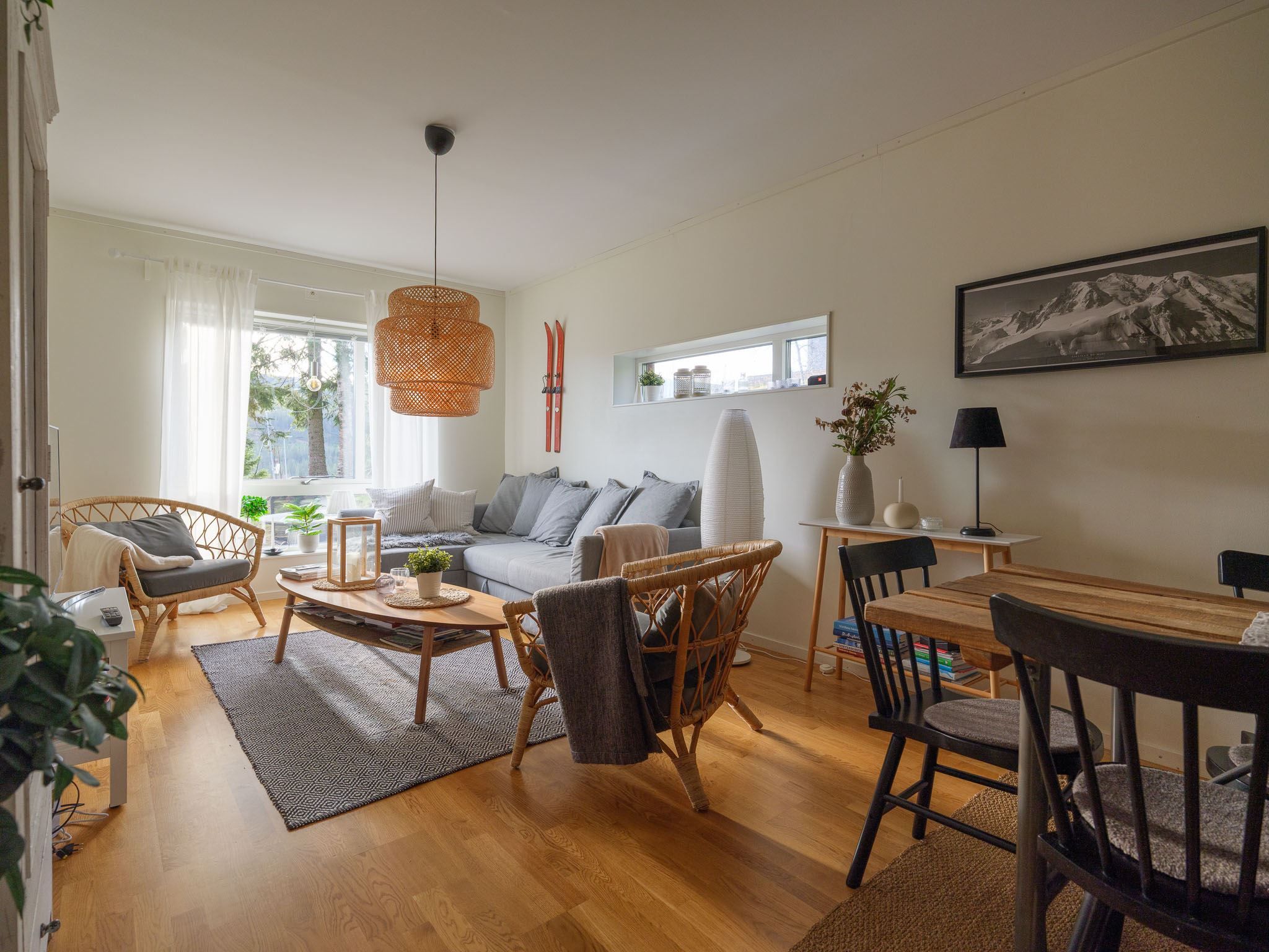 Välkommen till denna ljusa och välplanerade hörnlägenhet om 70 kvm – en perfekt kombination av komfort, funktion och fjällkänsla! Här bor du högst upp i området med ett fritt och soligt söderläge. Från uteplatsen njuter du av solen hela dagen och på husets gavel finns ytterliggare en uteplats med kvällssol i västerläge. På framsidan finns en gräsmatta som inte tillhör lägenheten men är perfekt för barnens lek eller en stund i solen efter dagens äventyr.