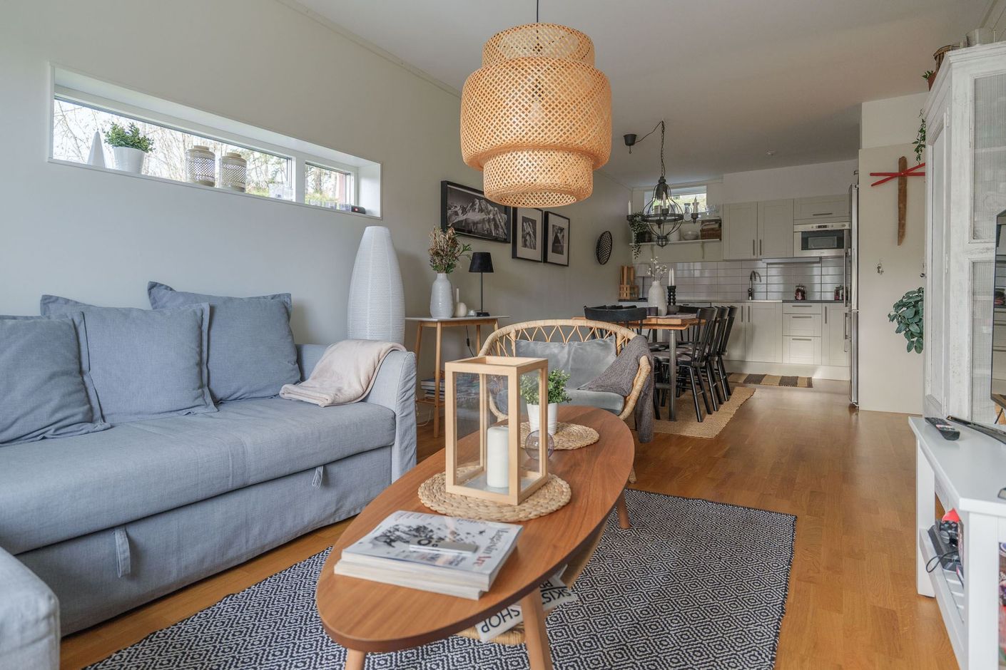 Bostaden har en modern och öppen planlösning mellan kök och allrum – en naturlig samlingsplats för familj och vänner. Här finns två sovrum, ett fräscht badrum med bastu samt ett praktiskt förråd. Golvvärme i hela lägenheten.