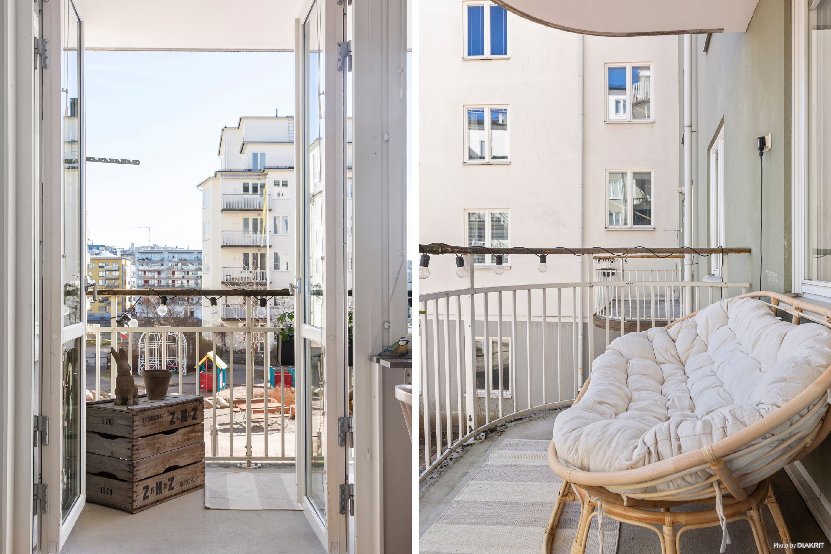 Balkongen är en självklar favoritplats – här njuter du av solen från morgon till förmiddag med en rogivande vy mot vattnet. Perfekt för frukost i solen, odlingar eller en lugn stund med en kopp kaffe. Och bara några steg bort väntar kajkanten för promenader längs vattnet.