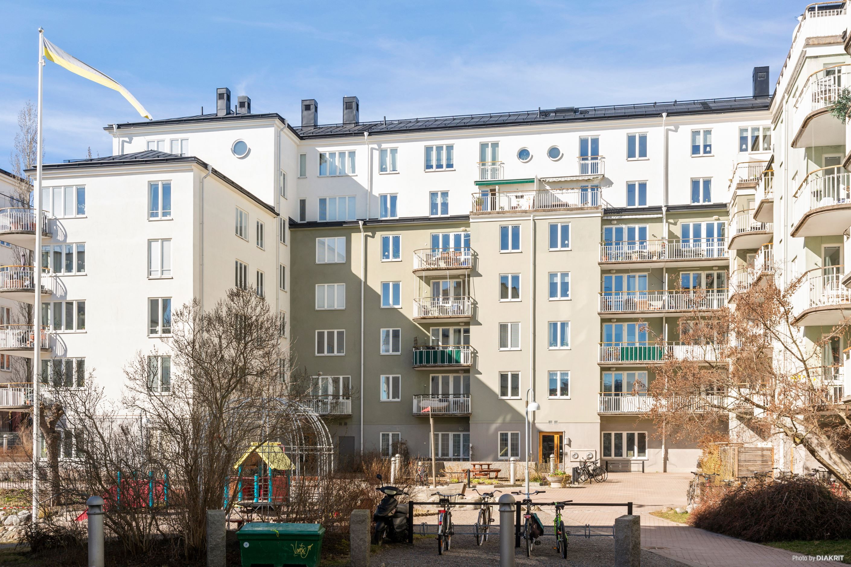 Här bor du i en trygg och stabil förening med god ekonomi och tillgång till bland annat övernattningsrum, festlokal, garage och hobbyrum. Den gröna innergården erbjuder lekytor och trivsam miljö för både stora och små.