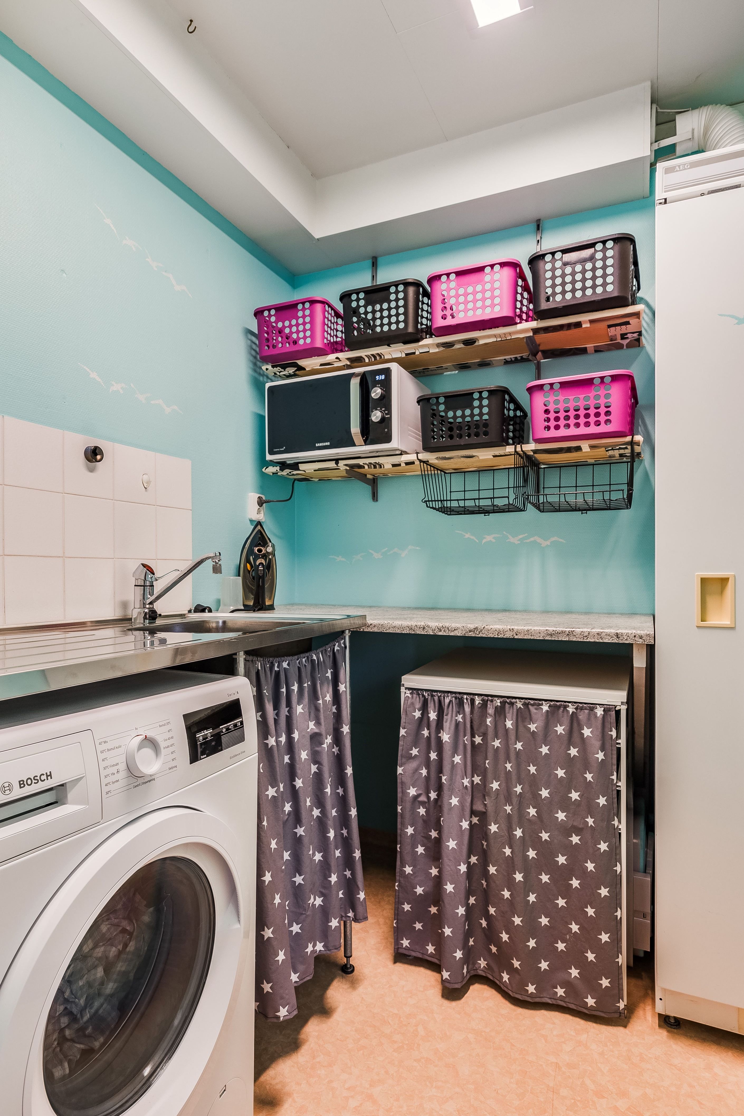 Bostaden disponeras med en luftig hall med avhängningsyta för ytterkläder innanför ytterdörren. Från hallen nås köket som med ljusa köksluckor- och lådor samt plats för matbord intill stort fönsterparti. Vidare finner du ett helkaklat badrum med skön golvvärme, duschhörna och handukstork och strax intill badrummet finns en praktisk tvättstuga med både tvättmaskin och torkskåp.