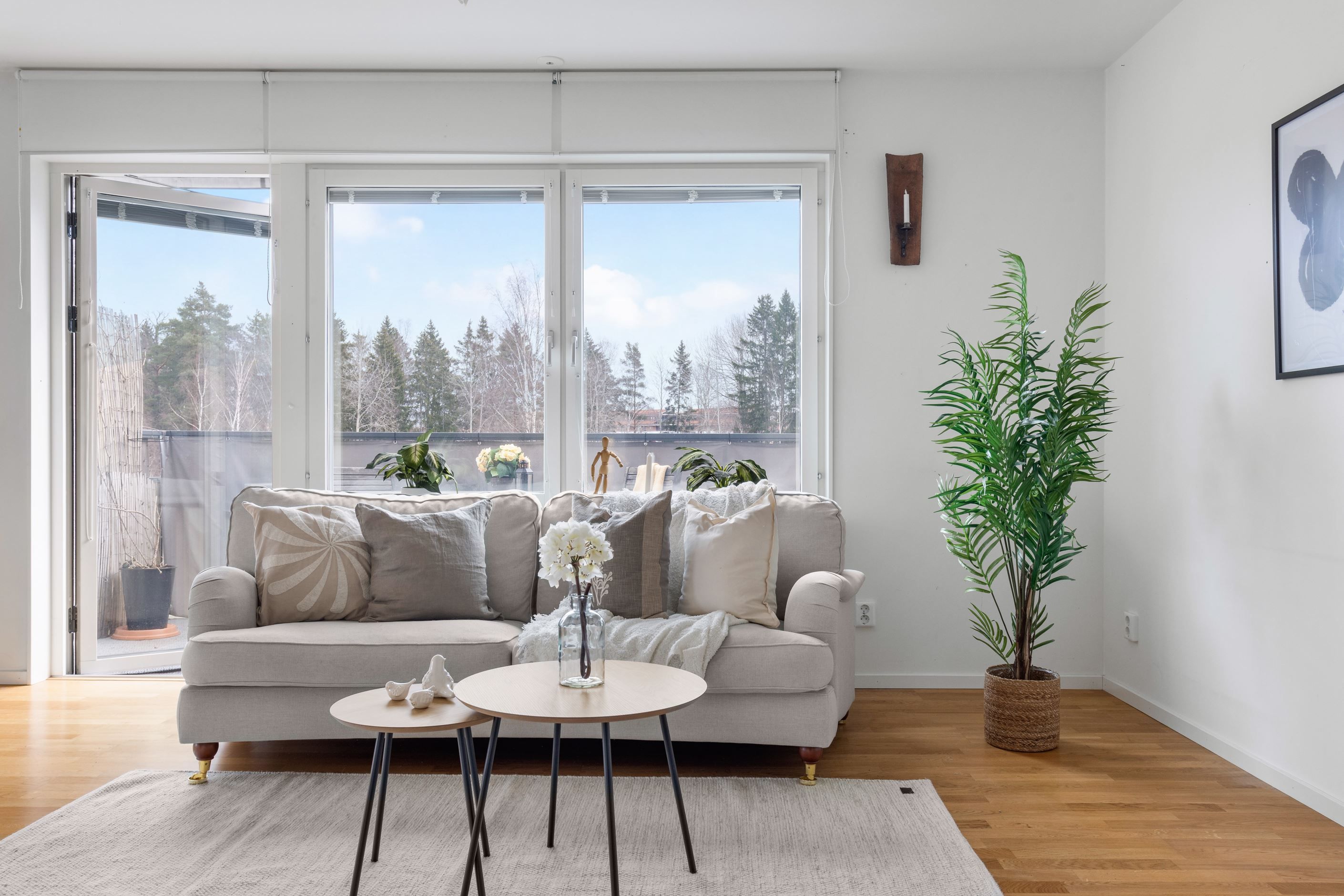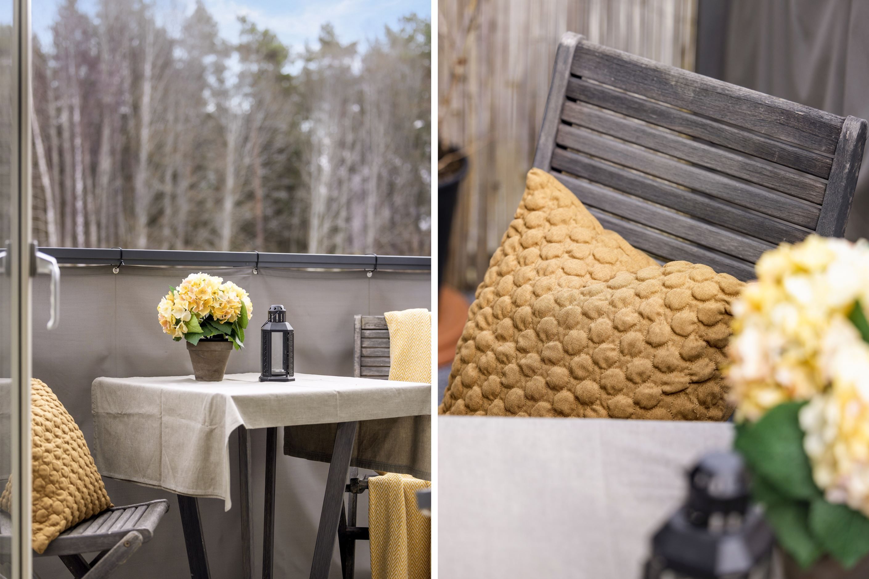 - Mysig balkong utan direkt insyn med 2 vildvinsplantor som ringlar sig uppför bambuväggarna på kortsidorna.