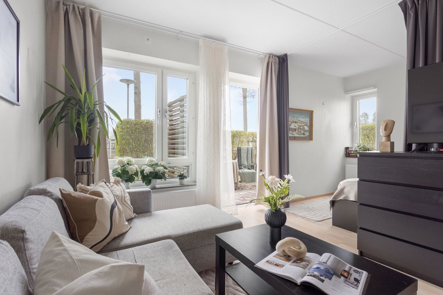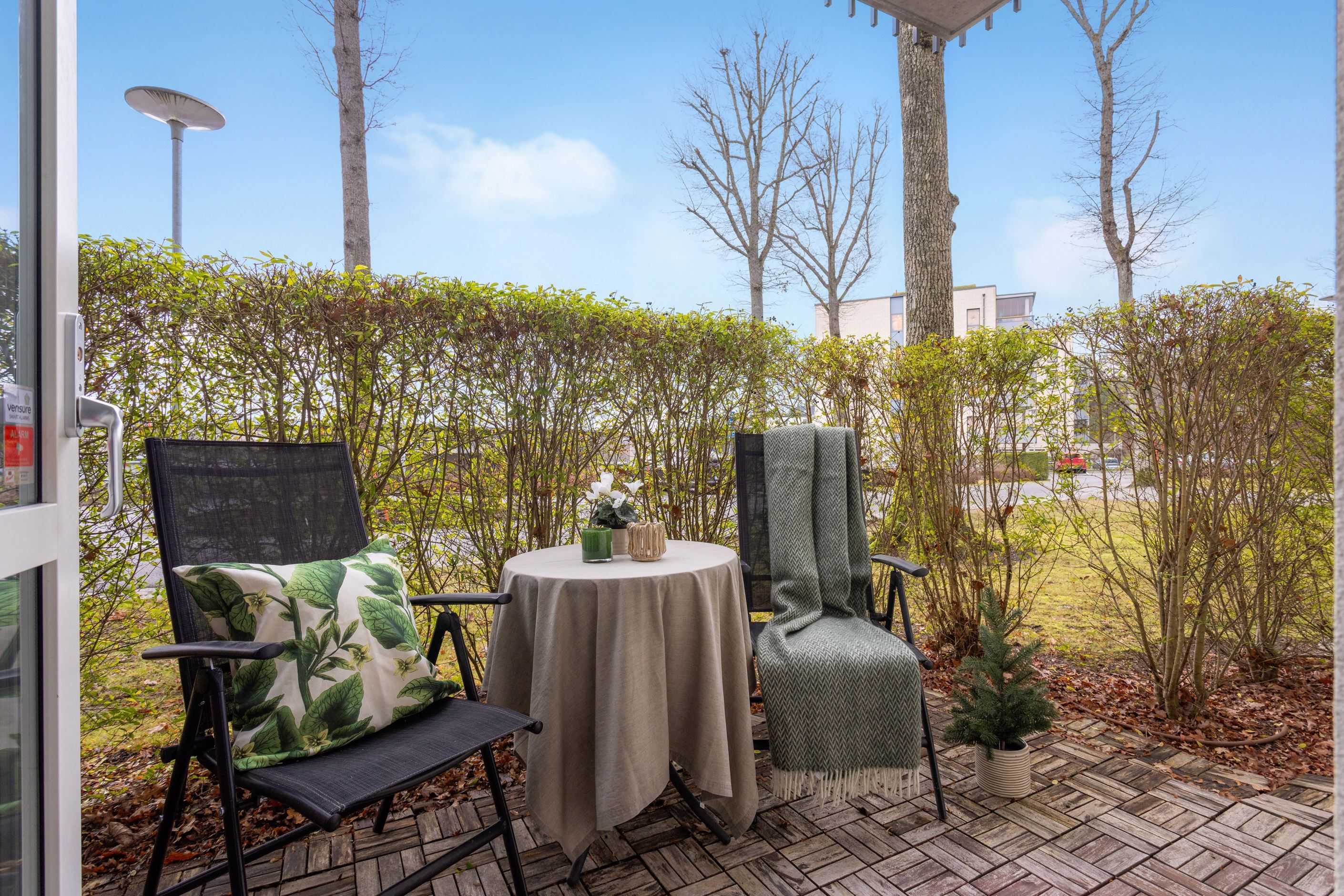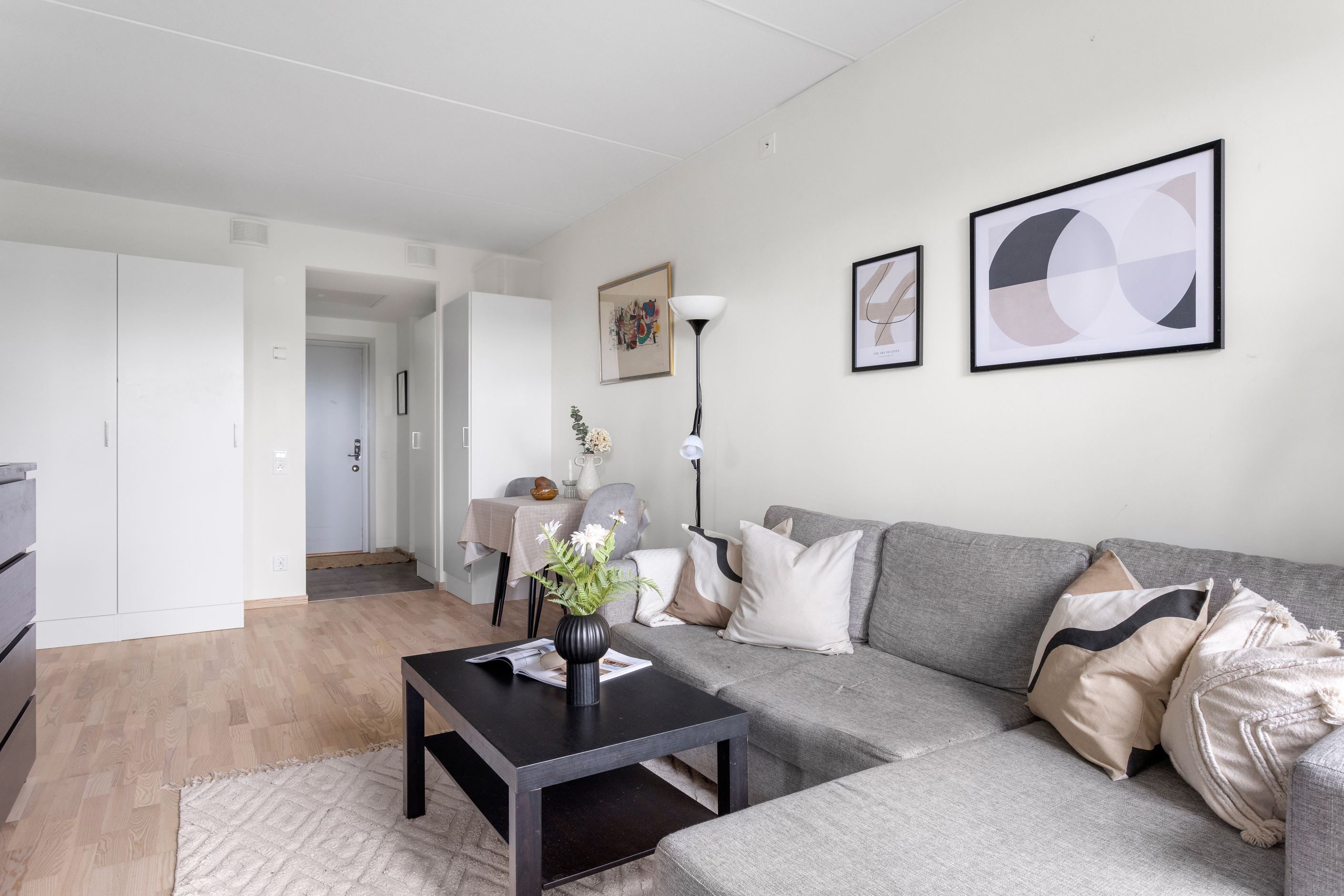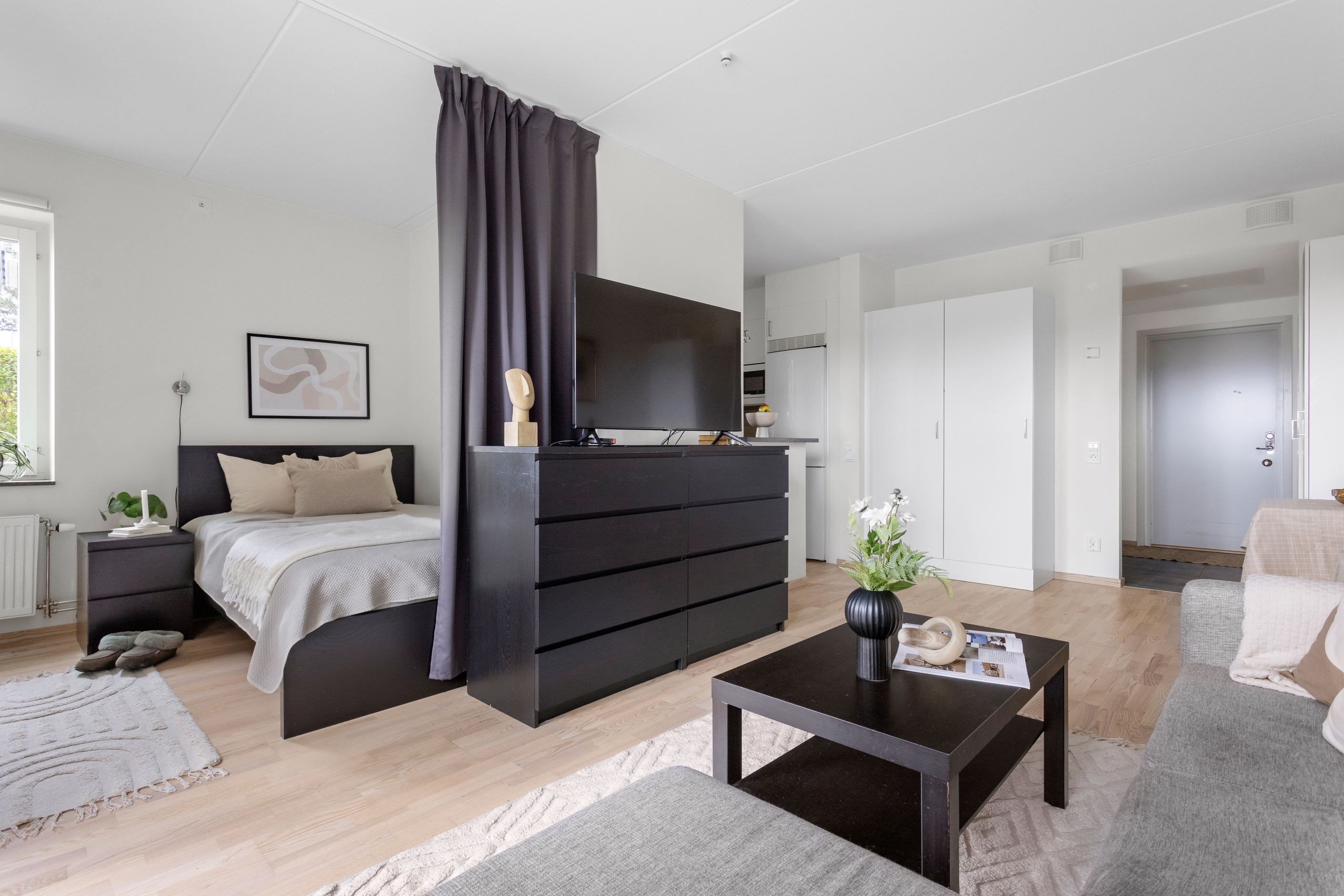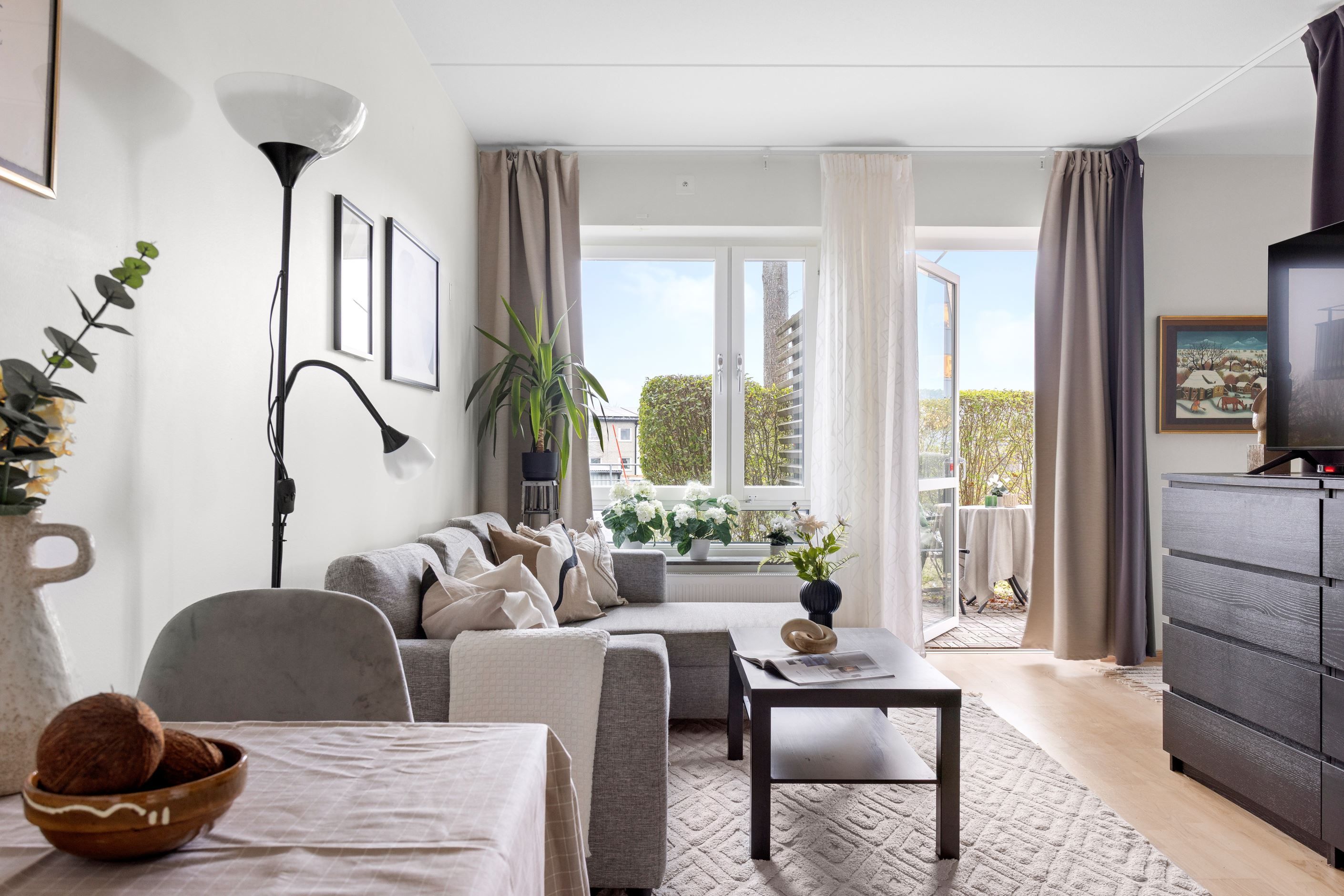 Nu finns äntligen möjlighet att förvärva denna fantastiska 1,5-rumslägenhet med en alldeles särskild och härlig uteplats. Belägen i ett stillsamt område i Viksjö, med närhet till både kommunikationer och all tänkbar service, ligger denna charmiga bostad i en modern och tilltalande fastighet. Lägenheten är smart planerad och präglas av en samtida stil där köket är välutrustat och utnyttjat till fullo med ugn, spishäll, fullstor kyl och frys samt diskmaskin. Den separata sovalkoven kan enkelt göras om till ett avskilt rum. De öppna och sociala ytorna erbjuder gott om plats för en större soffgrupp och TV-möbel.