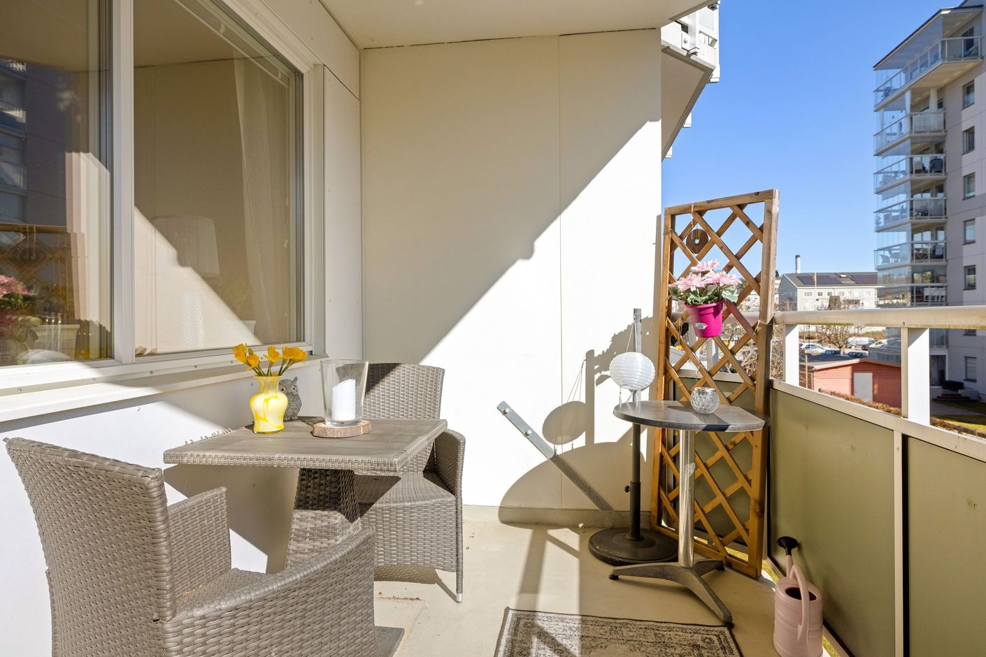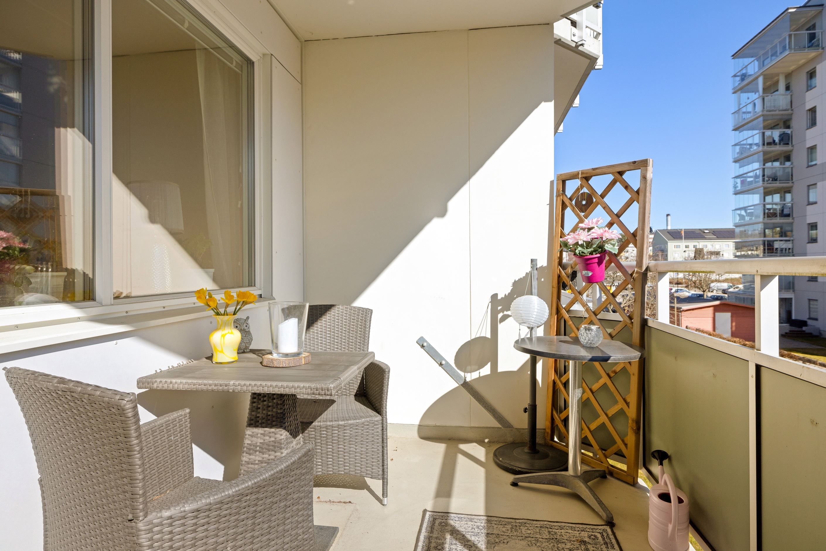 Här finns stort vardagsrum med plats för både soffa och matsalsmöblemang om så önskas. Från vardagsrummet når man den trivsamma balkongen i fint läge. Rymligt sovrum med gott om plats för dubbelsäng samt ytterligare möblemang. Stambytt badrum med golvvärme och dusch. Bra förvaringsmöjligheter i platsbyggda garderober.
