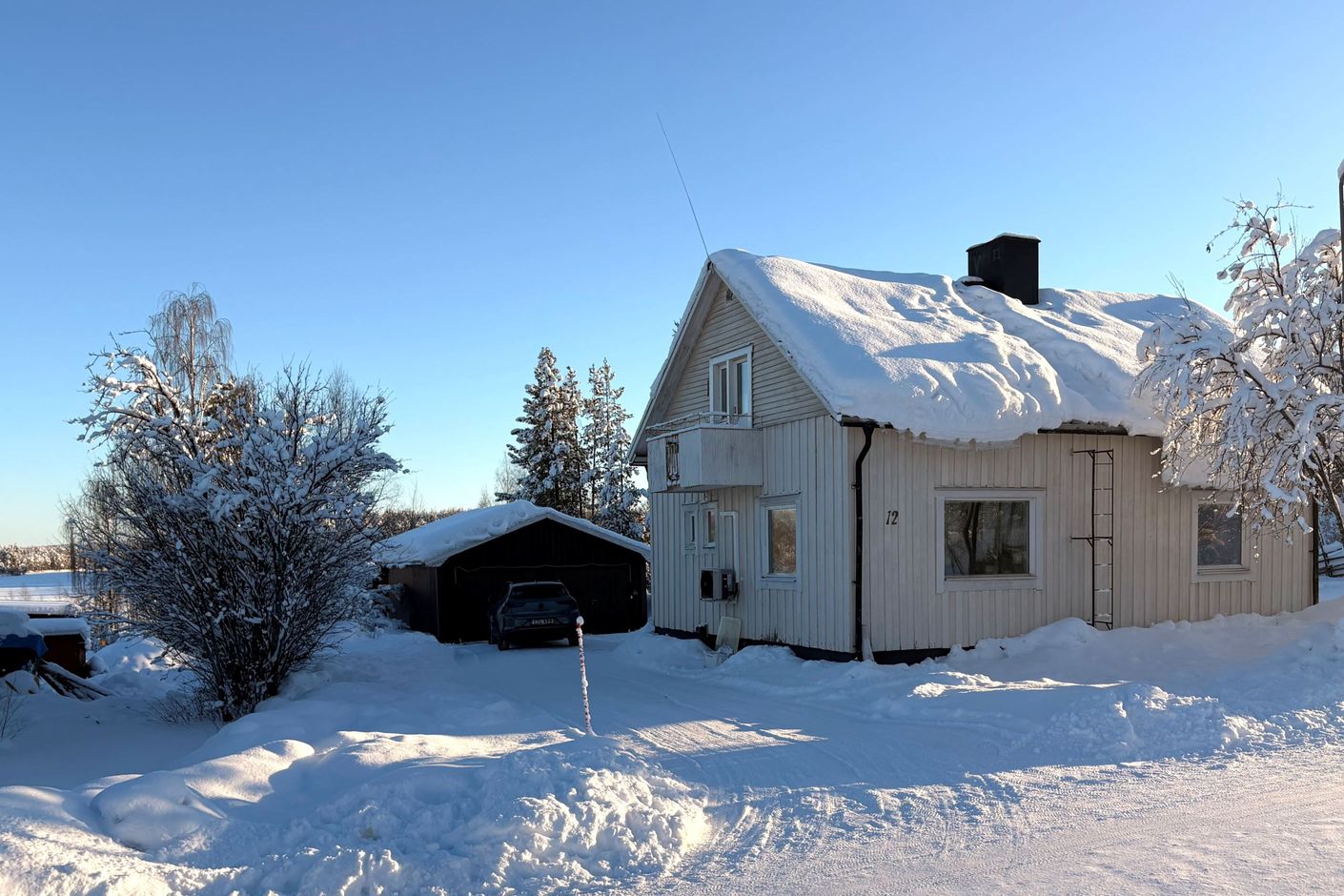 I högt trevligt läge med utsikt mot älven ligger denna gedigna villa med fristående dubbelgarage. På entréplan finns ett rymligt kök, vardagsrum med öppen spis, ett sovrum samt badrum och klädkammare. Övervåningen har två rymliga sovrum och gott om förvaring, ena sovrummet har balkong med vacker utsikt över älven.