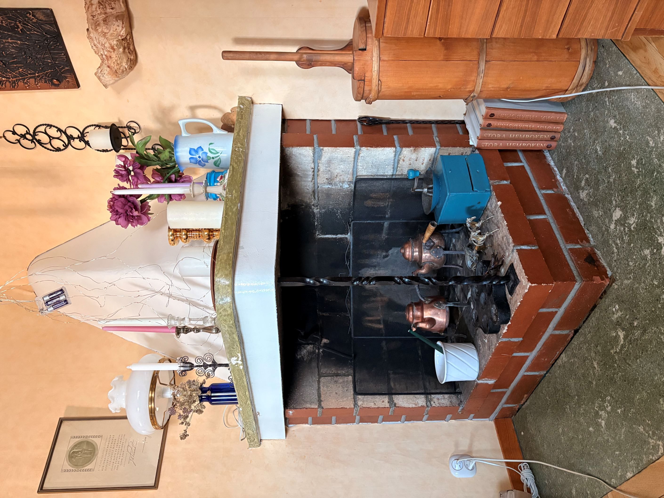 Källare med pannrum, tvättstuga, matkällare och förvaringsutrymme. Vattenburen värme med vedpanna och elpatron, på entréplan har man installerat en luftvärmepump. Fiber finns indraget i huset.