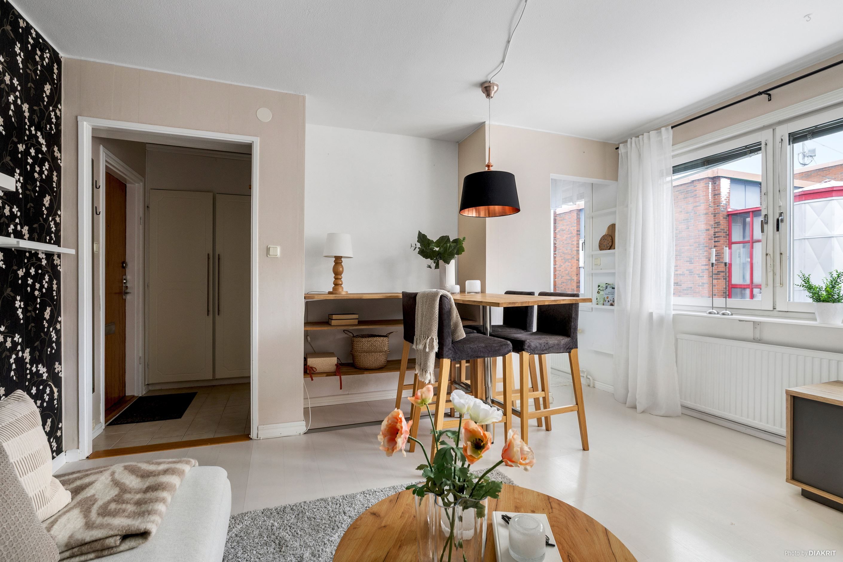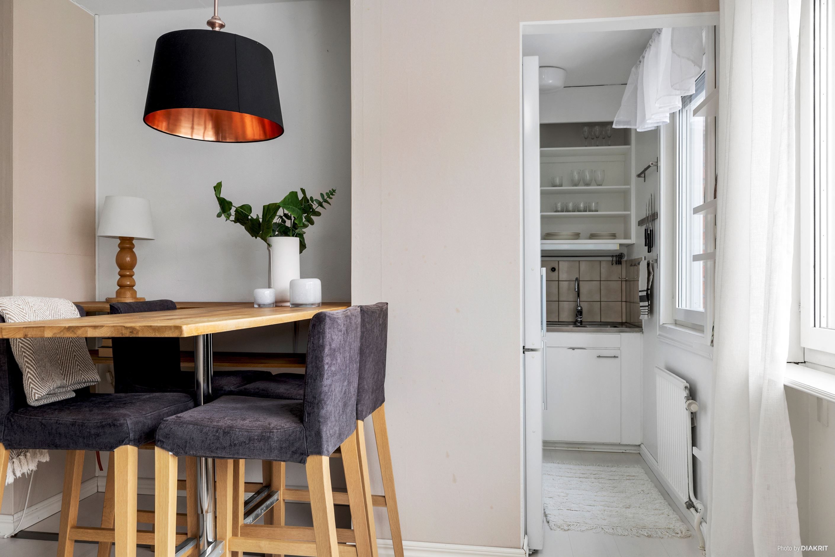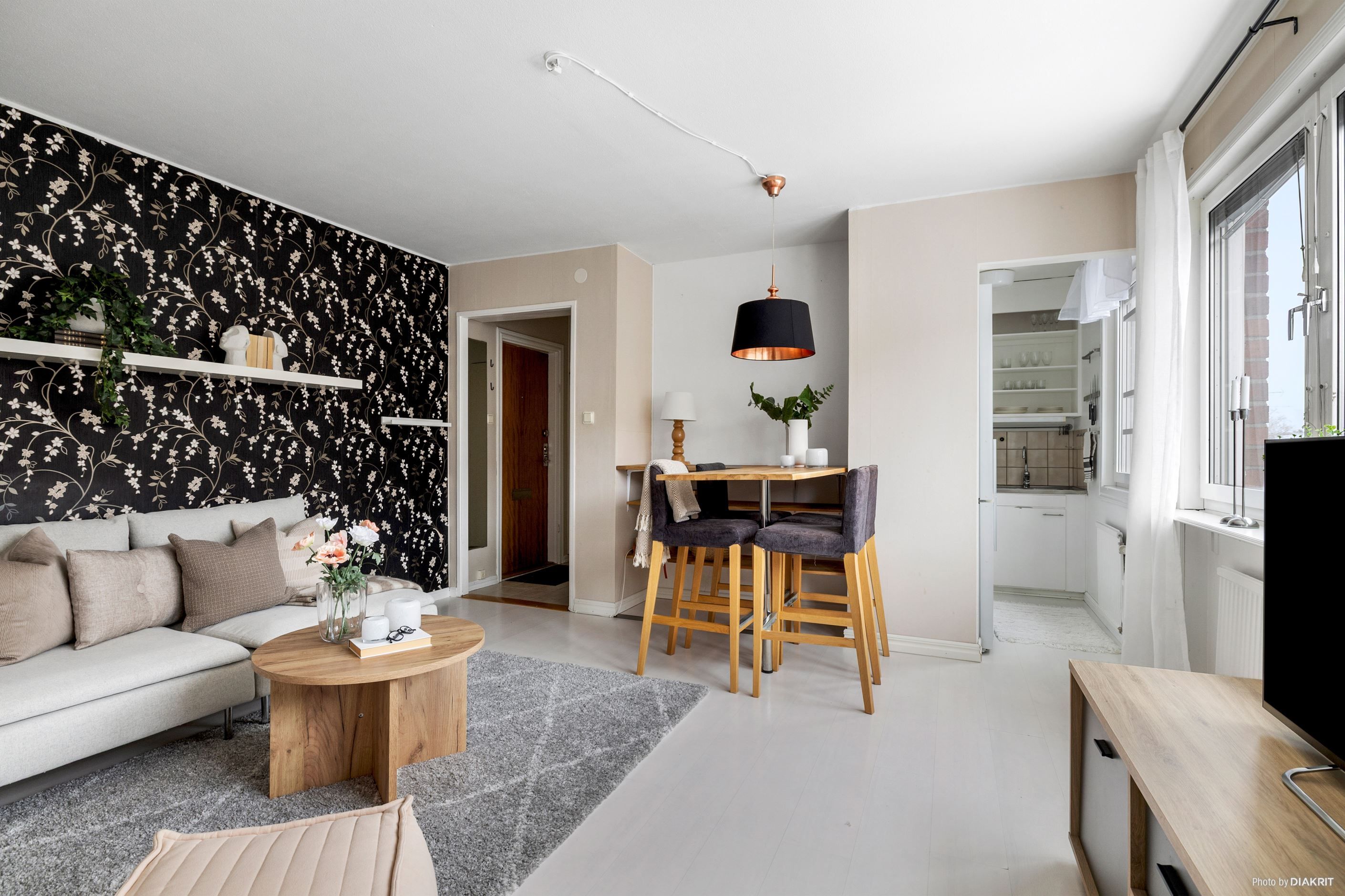Välkommen till en yteffektiv tvåa i en obelånad förening som erbjuder allt du behöver för ett bekvämt stadsboende. Denna lägenhet har en välkomnande hall med gott om plats för avhängning och en praktisk garderob för förvaring. Köket är fullt utrustat med skåpförvaring och har plats för matbord precis utanför, vilket skapar en social och trivsam miljö. Det ljusa vardagsrummet har tre fönster som ger en härlig känsla av rymd, och då lägenheten är belägen på den högsta våningen genomsyras bostaden av ett generöst naturligt ljus