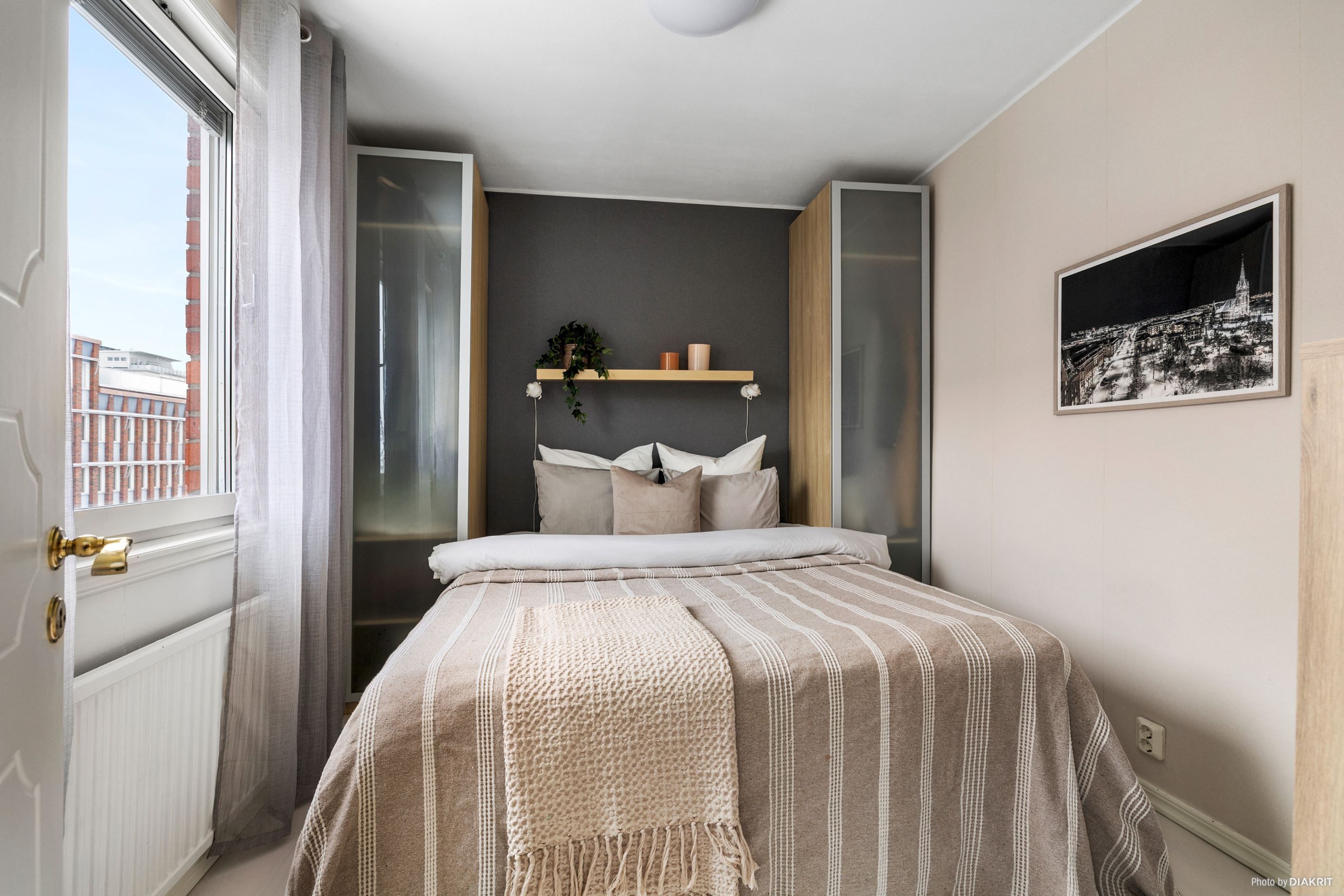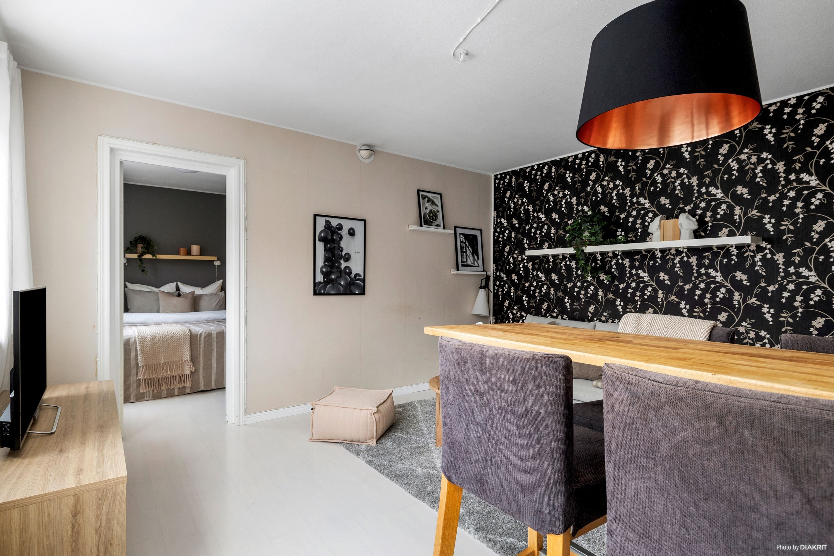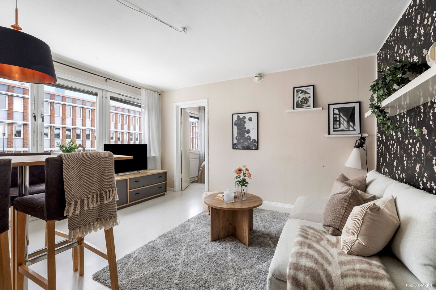 Välkommen till en yteffektiv tvåa i en obelånad förening som erbjuder allt du behöver för ett bekvämt stadsboende. Denna lägenhet har en välkomnande hall med gott om plats för avhängning och en praktisk garderob för förvaring. Köket är fullt utrustat med skåpförvaring och har plats för matbord precis utanför, vilket skapar en social och trivsam miljö. Det ljusa vardagsrummet har tre fönster som ger en härlig känsla av rymd, och då lägenheten är belägen på den högsta våningen genomsyras bostaden av ett generöst naturligt ljus
