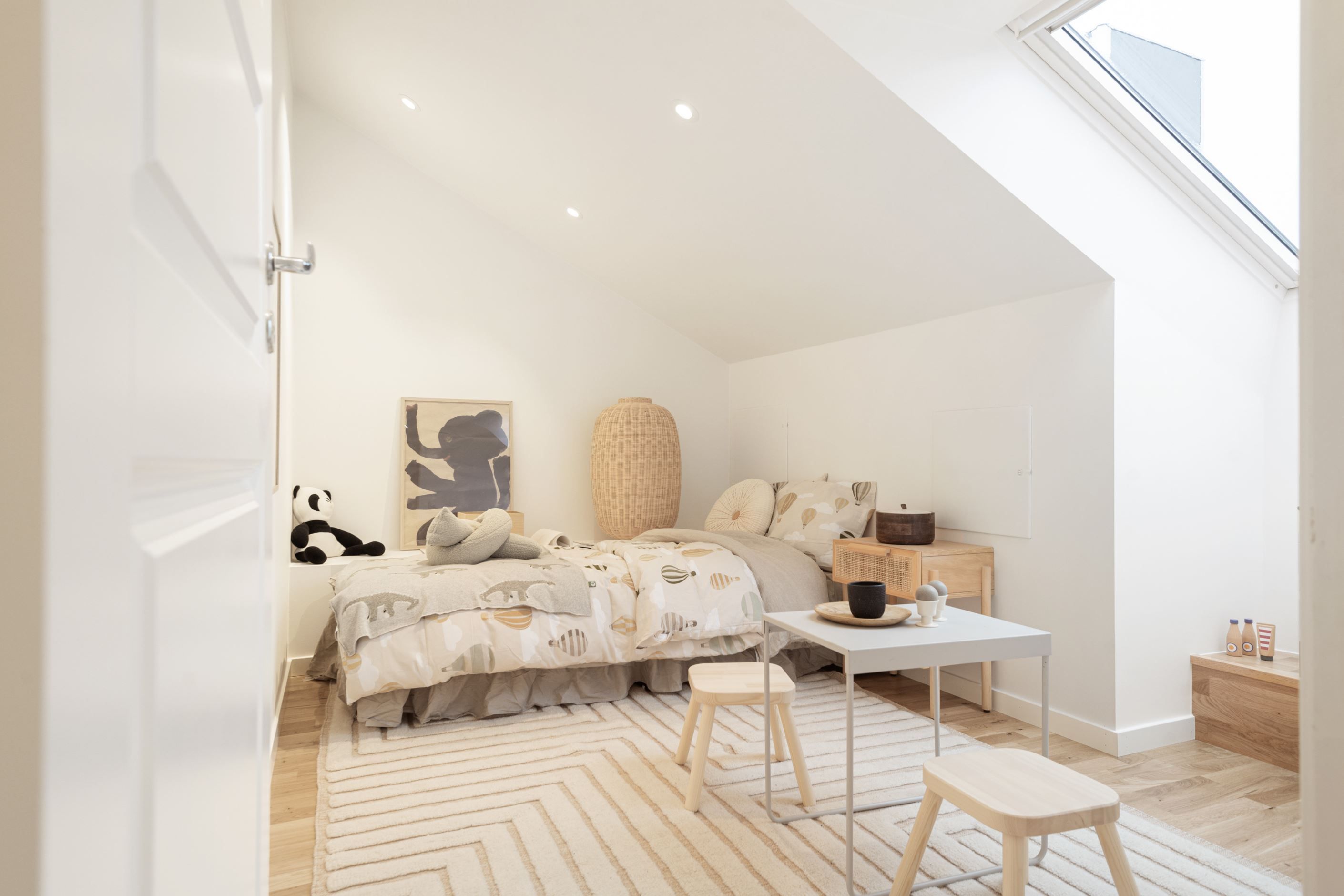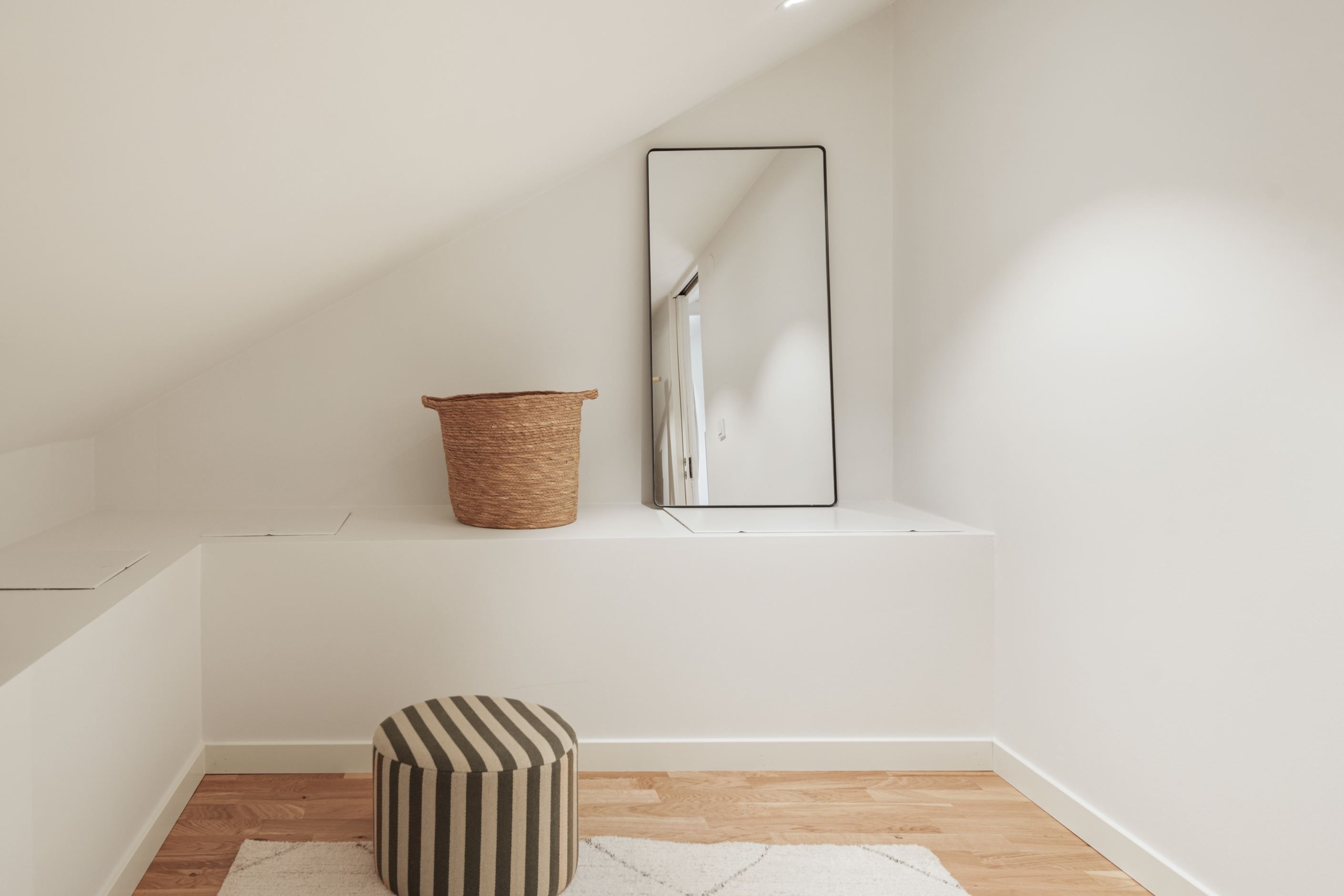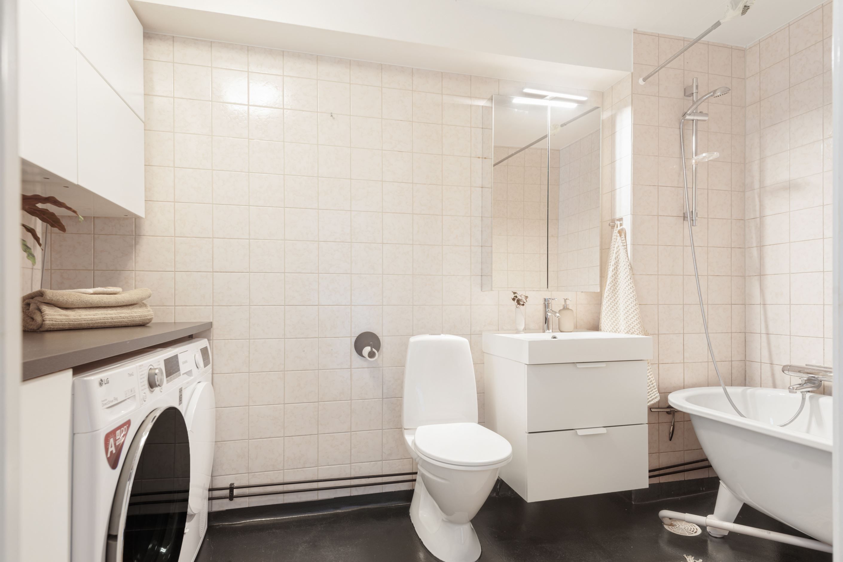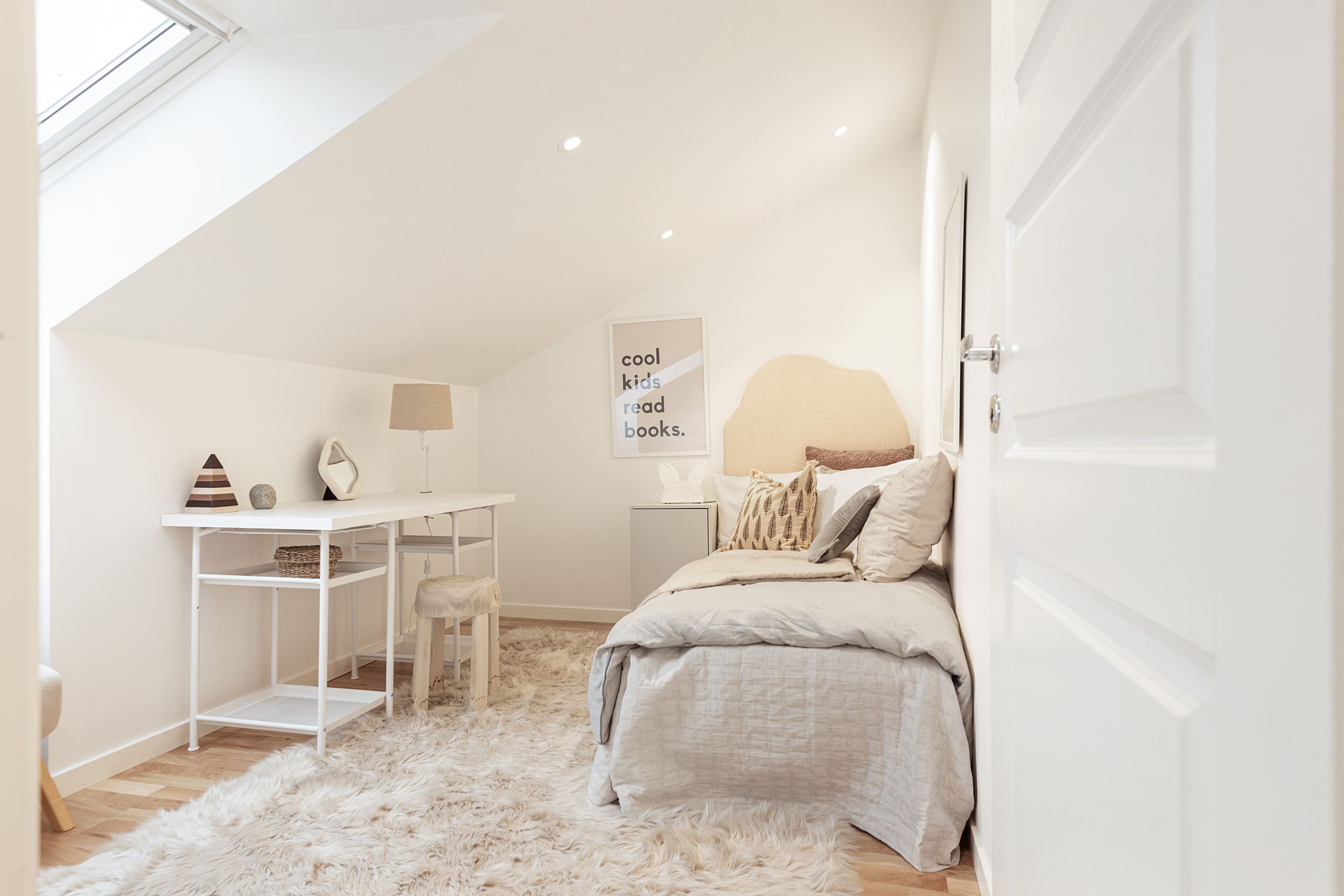 Planlösningen är genomtänkt med tre sovrum, varav två med takfönster som släpper in generöst ljus. Här finns även ett smakfullt väggkaklat badrum med badkar och kombinerad tvättavdelning, samt två härliga uteplatser – en rymlig balkong i högt läge och en trivsam entrébalkong.