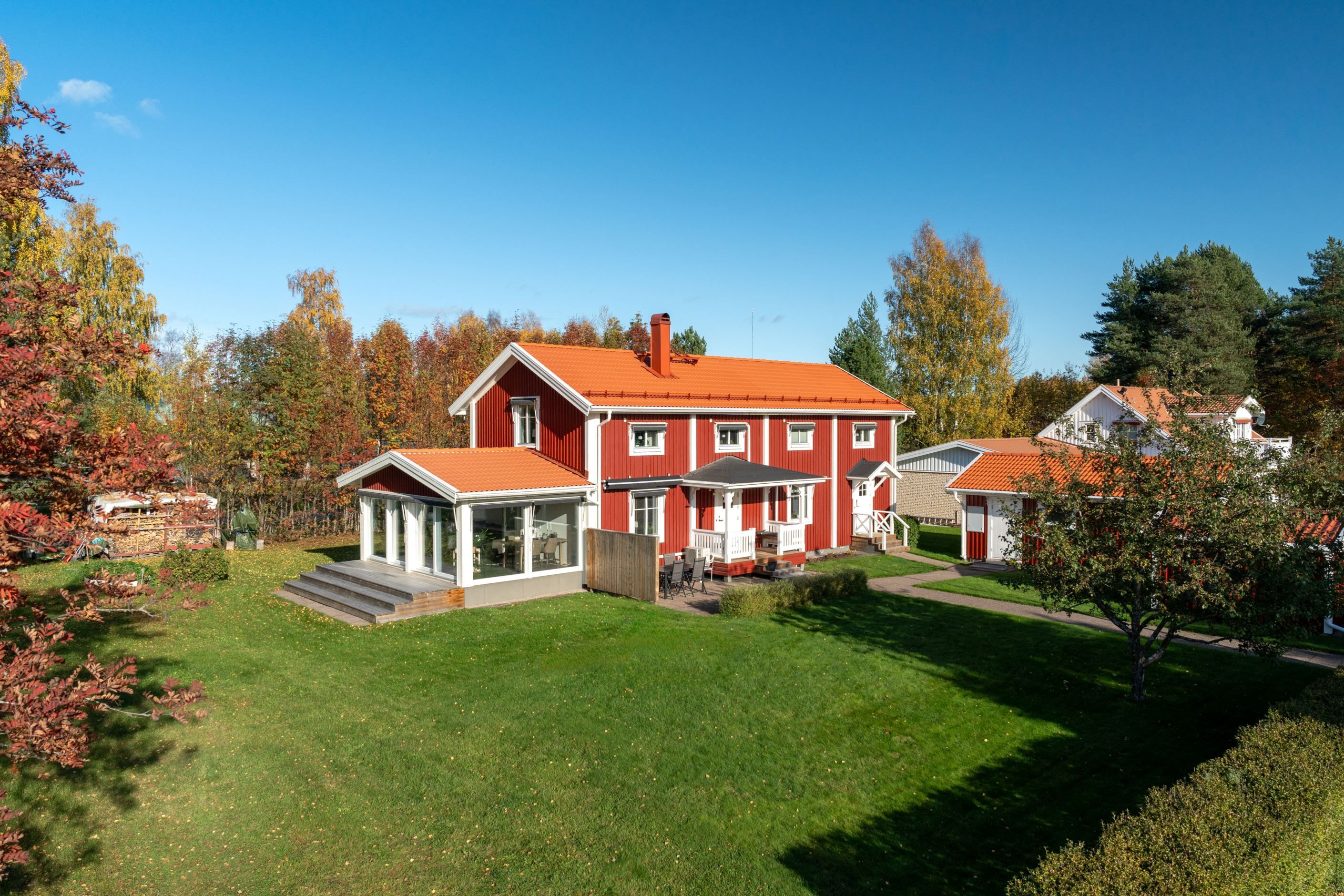 Här finner ni ett trivsamt och väldisponerat boende i två plan och med allt du kan tänkas behöva som tillexempel rymligt garage och förråd, fantastiskt varm isolerat uterum, stor solig tomt och social planlösning. Trädgårdstomten är vackert inramad av både buskar och träd, de fina gräsytorna vid altanen öppnar upp för mycket lek och umgänge, perfekt för dig som har familj med barn.