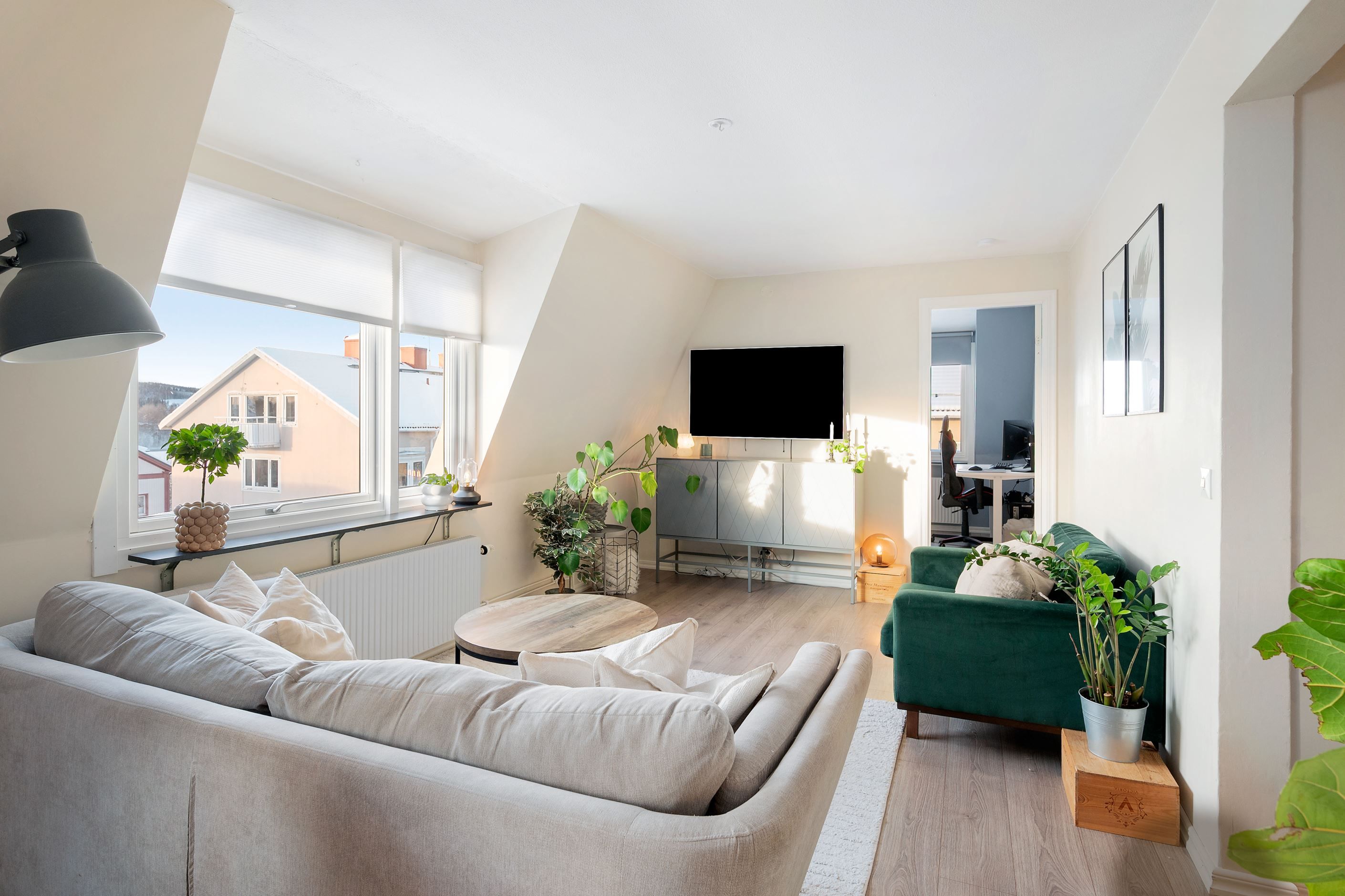 På tredje våningen, mitt i hjärtat av Skellefteå, väntar denna omsorgsfullt renoverade trea om 75,5 kvm – ett hem där moderna materialval möter en varm och inbjudande atmosfär. Här bor du med stadens puls runt hörnet, samtidigt som bostaden erbjuder en lugn och harmonisk tillvaro ovanför gatulivet.