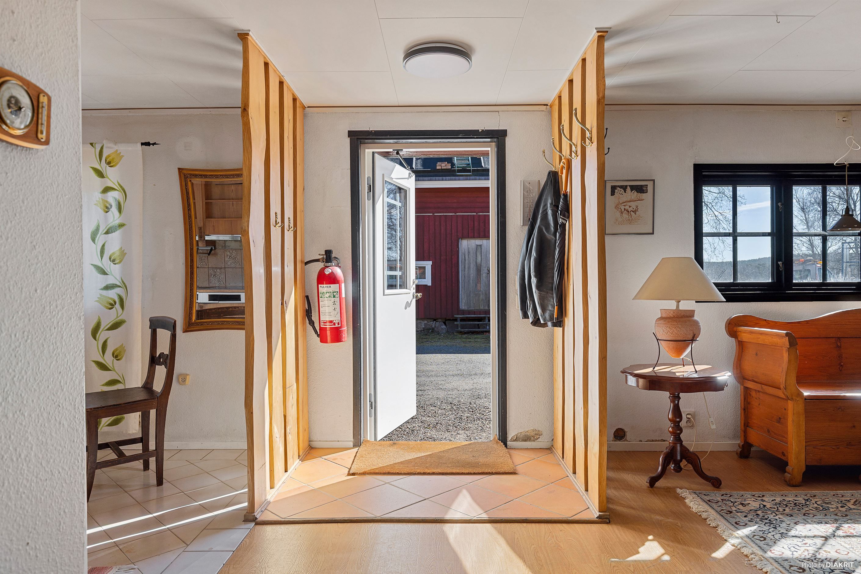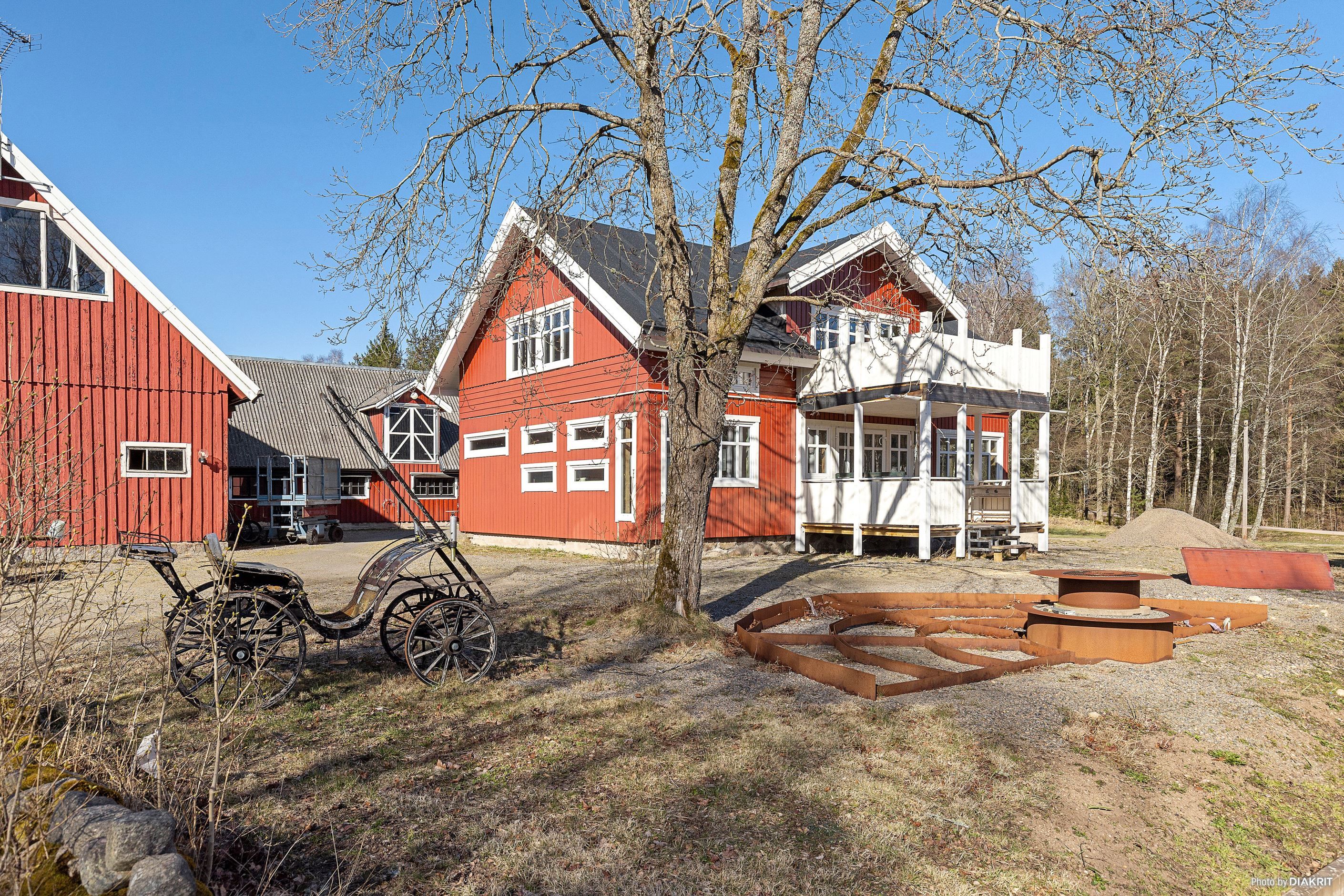 På tomten finns även gott om utrymme för både hobby och verksamhet – med verkstad, förråd, loge och traktorgarage. Här finns plats för allt från maskiner, verktyg, eller kreativa projekt. Möjlighet för lite små höns och något enstaka får.