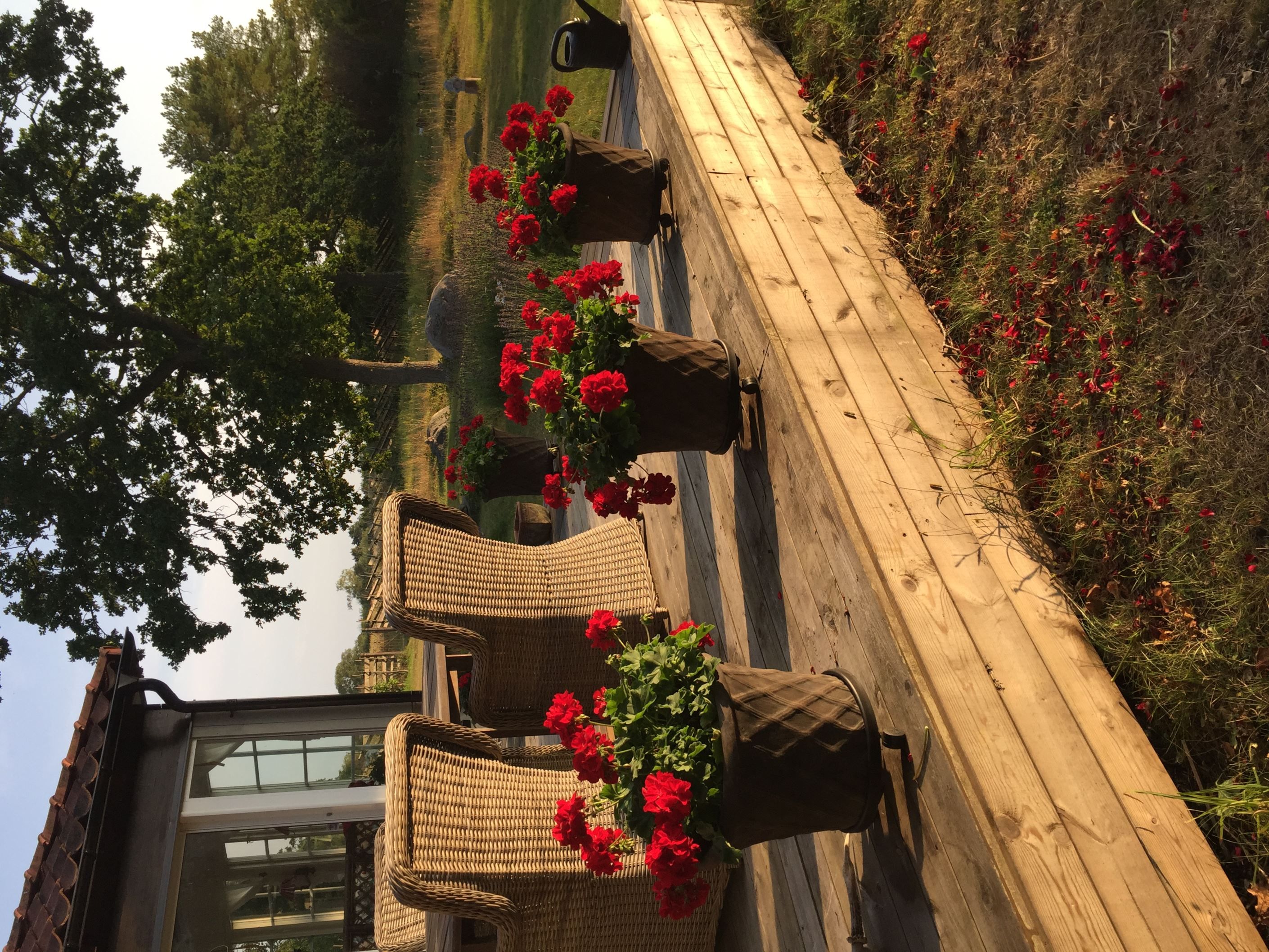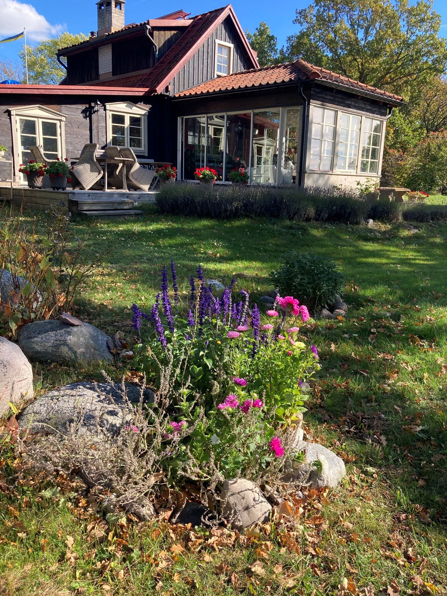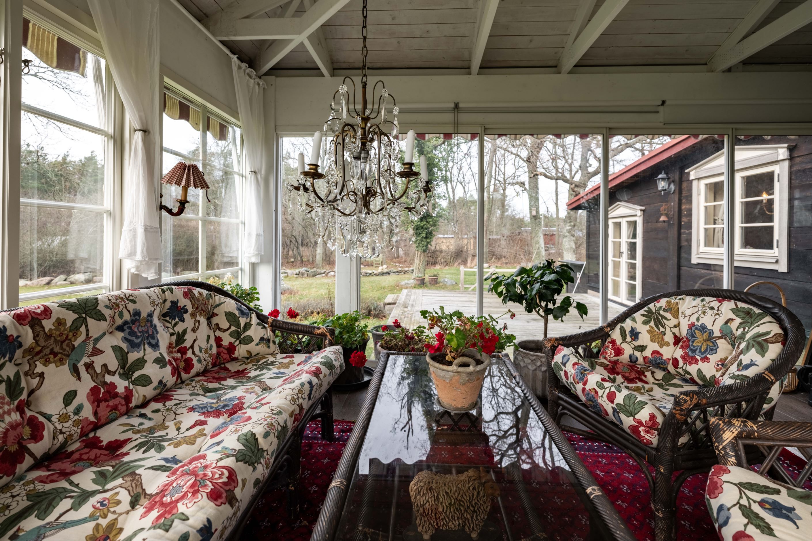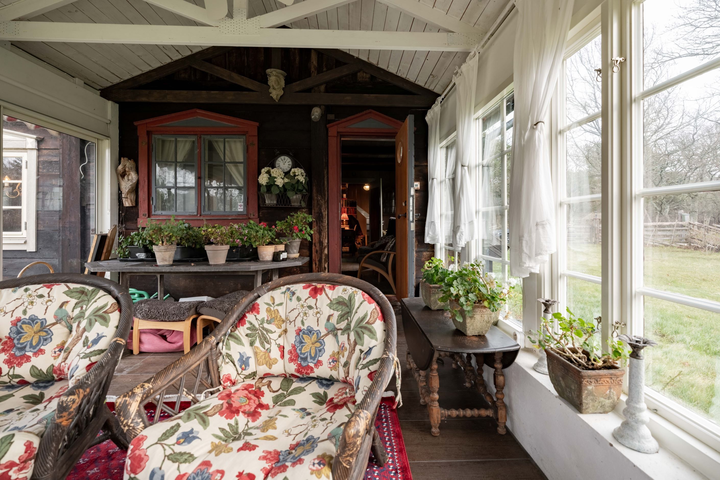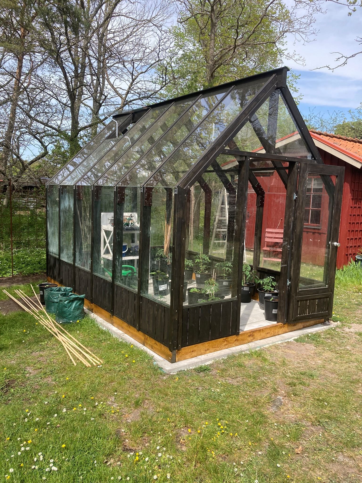 Här finns också ett vackert växthus i trä, smakfullt och inbjudande, där tomatplantorna trivs alldeles utmärkt och sommardoften dröjer sig kvar. Allt samspelar. Allt känns genomtänkt, men aldrig tillrättalagt.