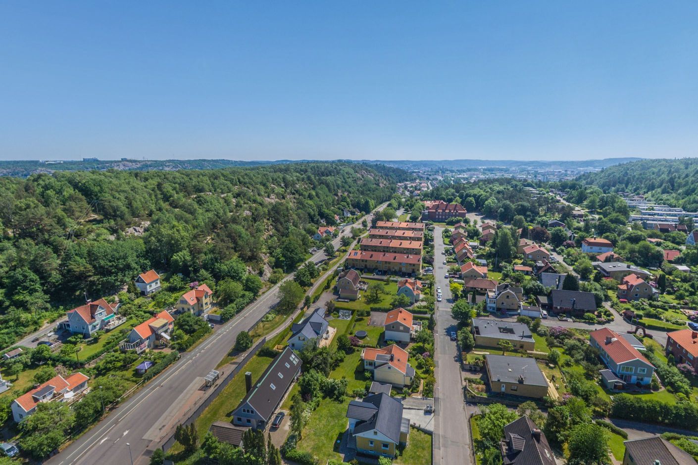 Här bor du i ett stillsamt och grönskande område, med naturen bokstavligen runt knuten och samtidigt nära till stadens bekvämligheter, skolor och kommunikationer. Ett hem som erbjuder både rymd, möjligheter och ett attraktivt läge. Tänk att du kan promenera eller cykla in till Göteborg härifrån!