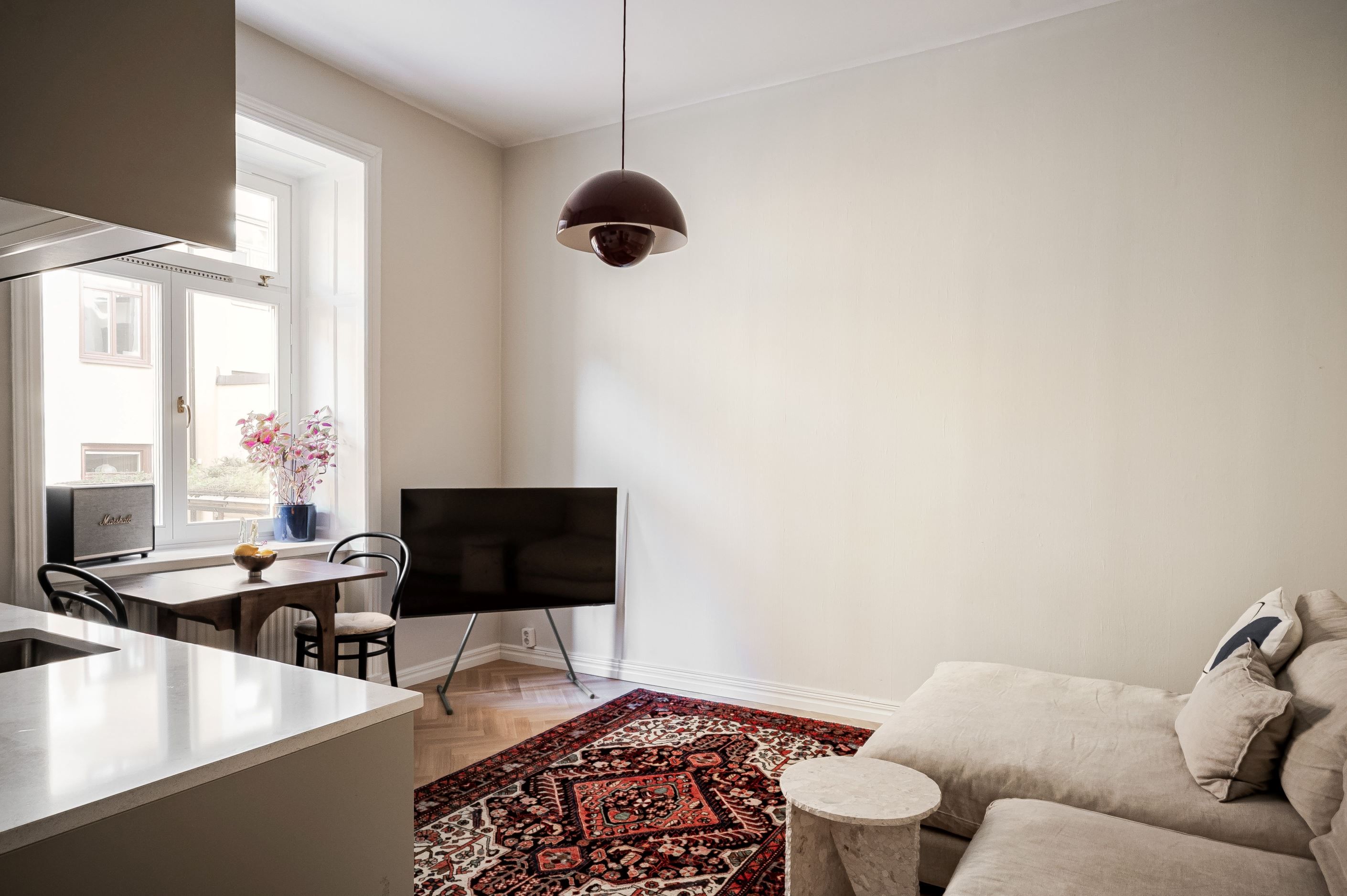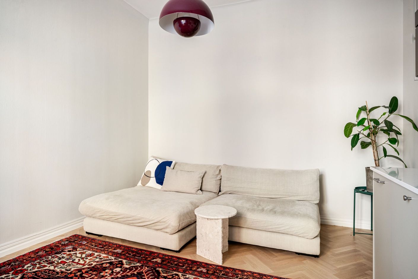 Välkommen till denna charmiga lägenhet i en vacker sekelskiftesfastighet. Den generösa takhöjden skapar en härlig rymd och den optimala planlösningen gör bostaden både funktionell och trivsam. Här möts sekelskifteskaraktär och modern design i en perfekt kombination. Bostaden är renoverad med fina materialval i sobra toner, genomgående fiskbensparkett och gott om garderobsutrymme.