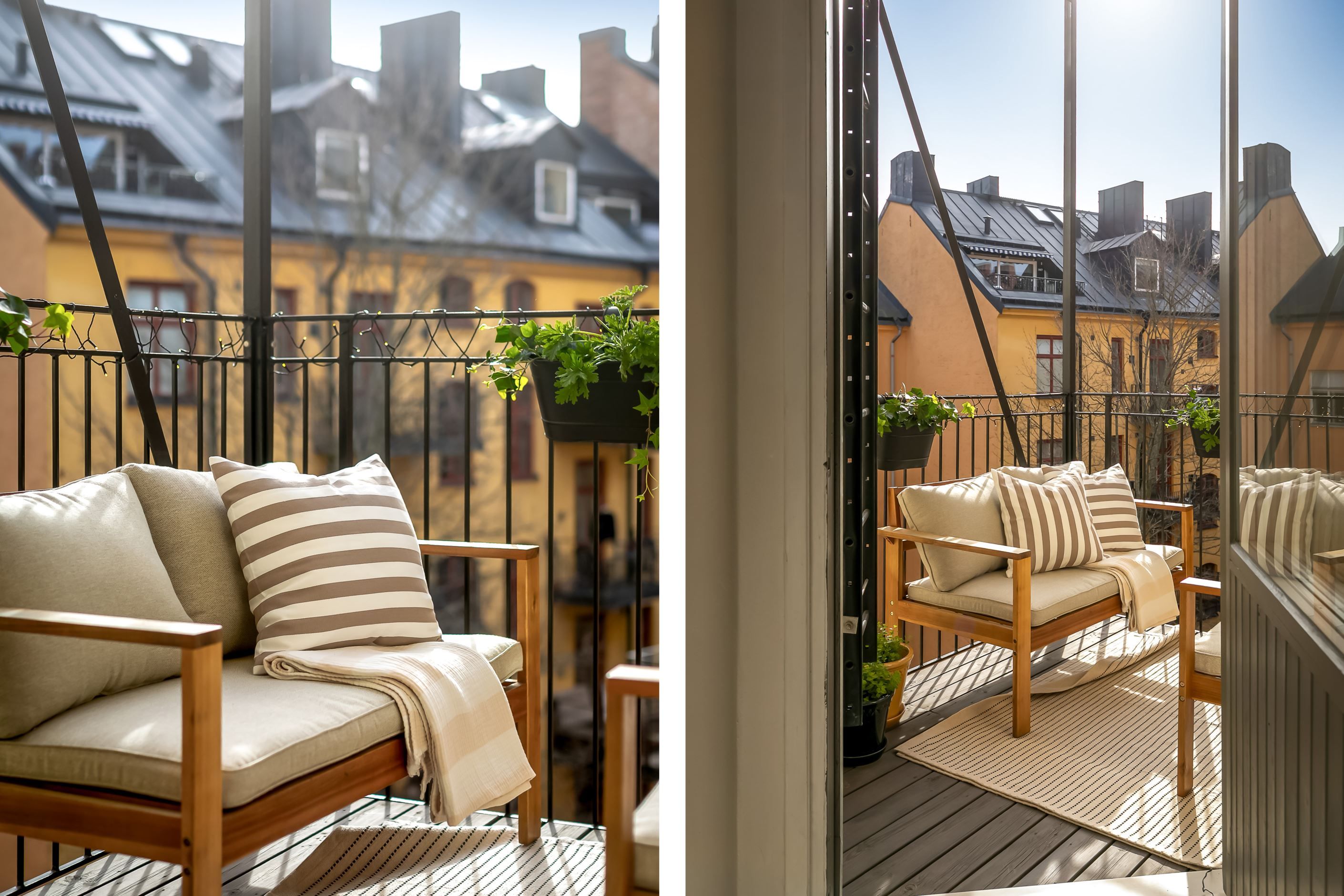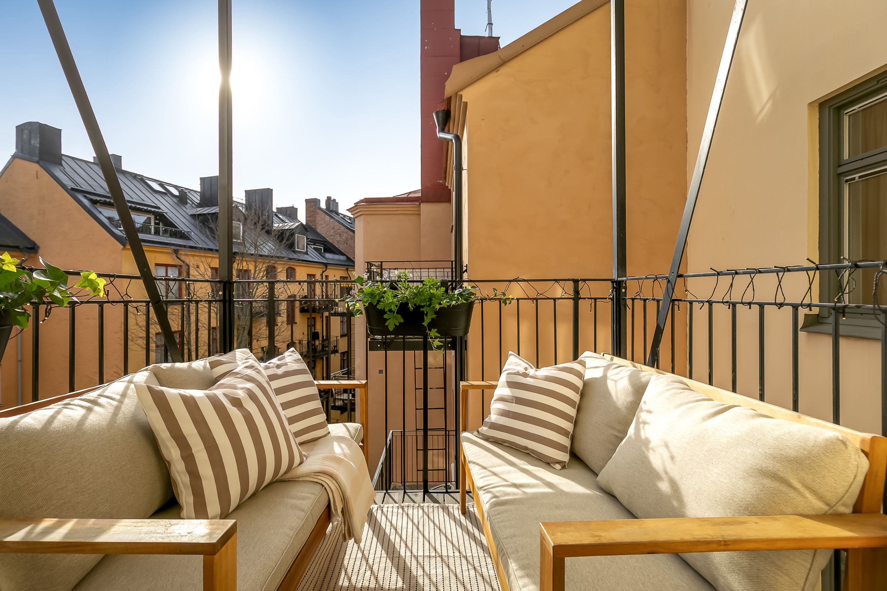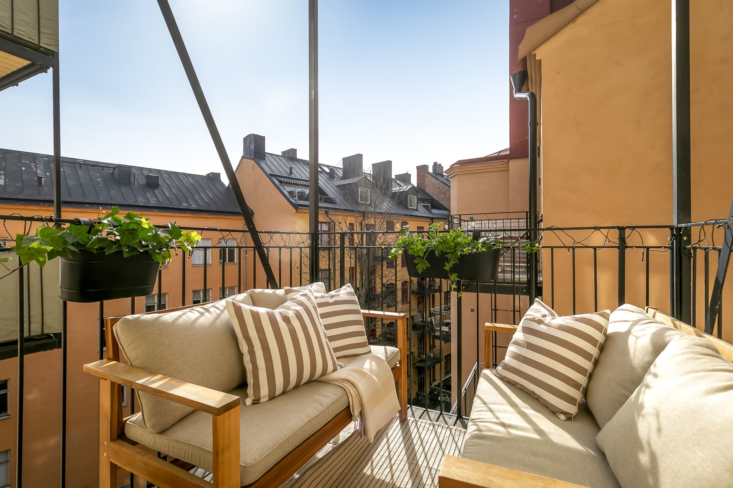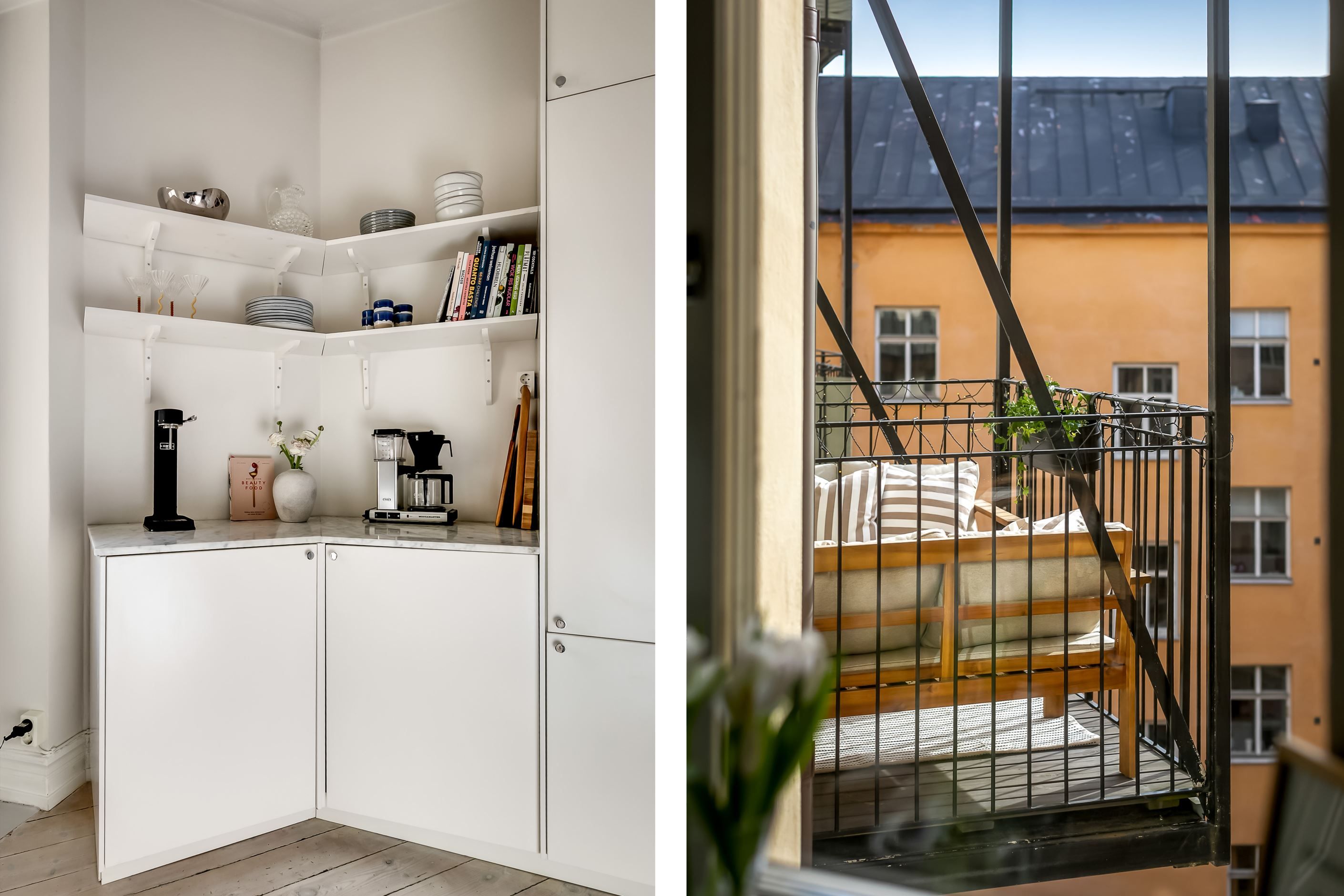 Från köket nås den underbara balkongen i soligt söderläge – en privat plats i solen där morgonkaffet, helgfrukosten eller ett glas vin i sommarkvällen får en självklar plats i vardagen. Läget mot gården gör balkongen till en lugn oas mitt i innerstaden.