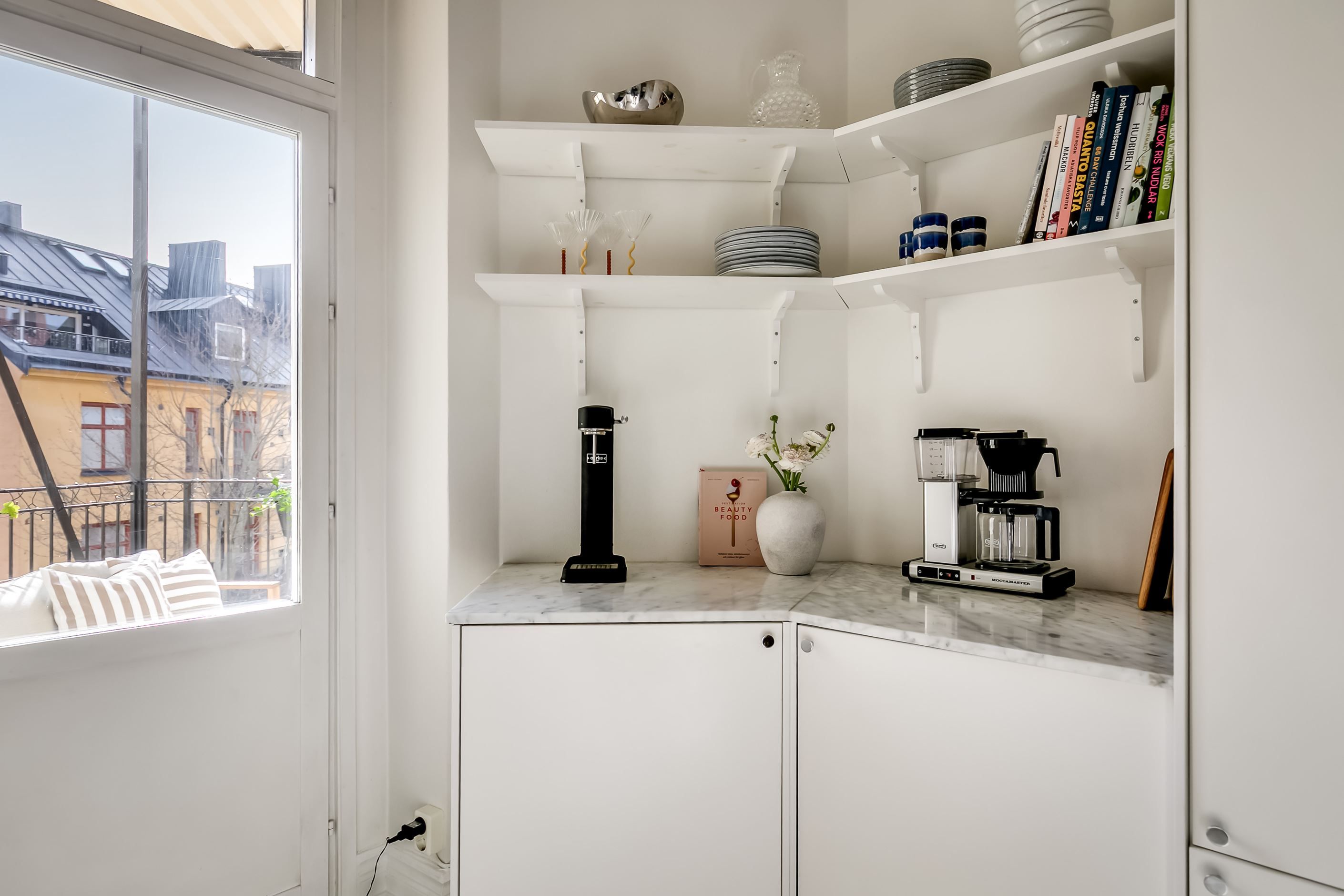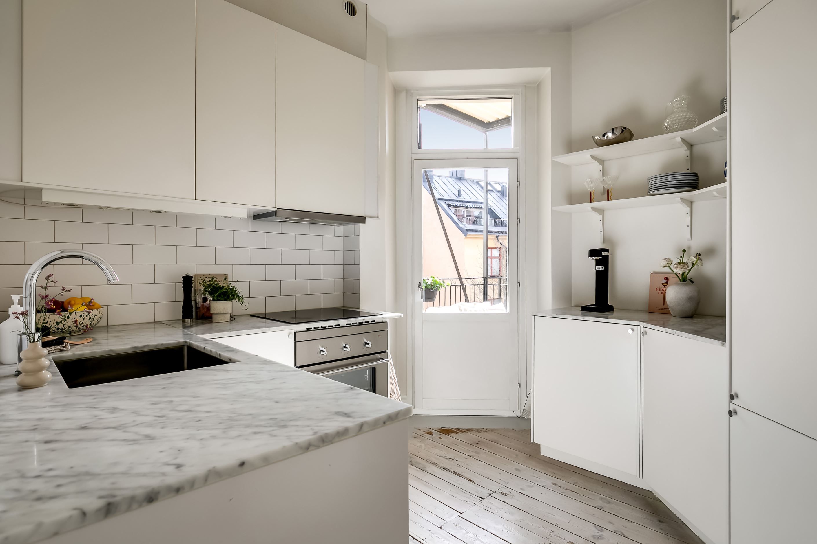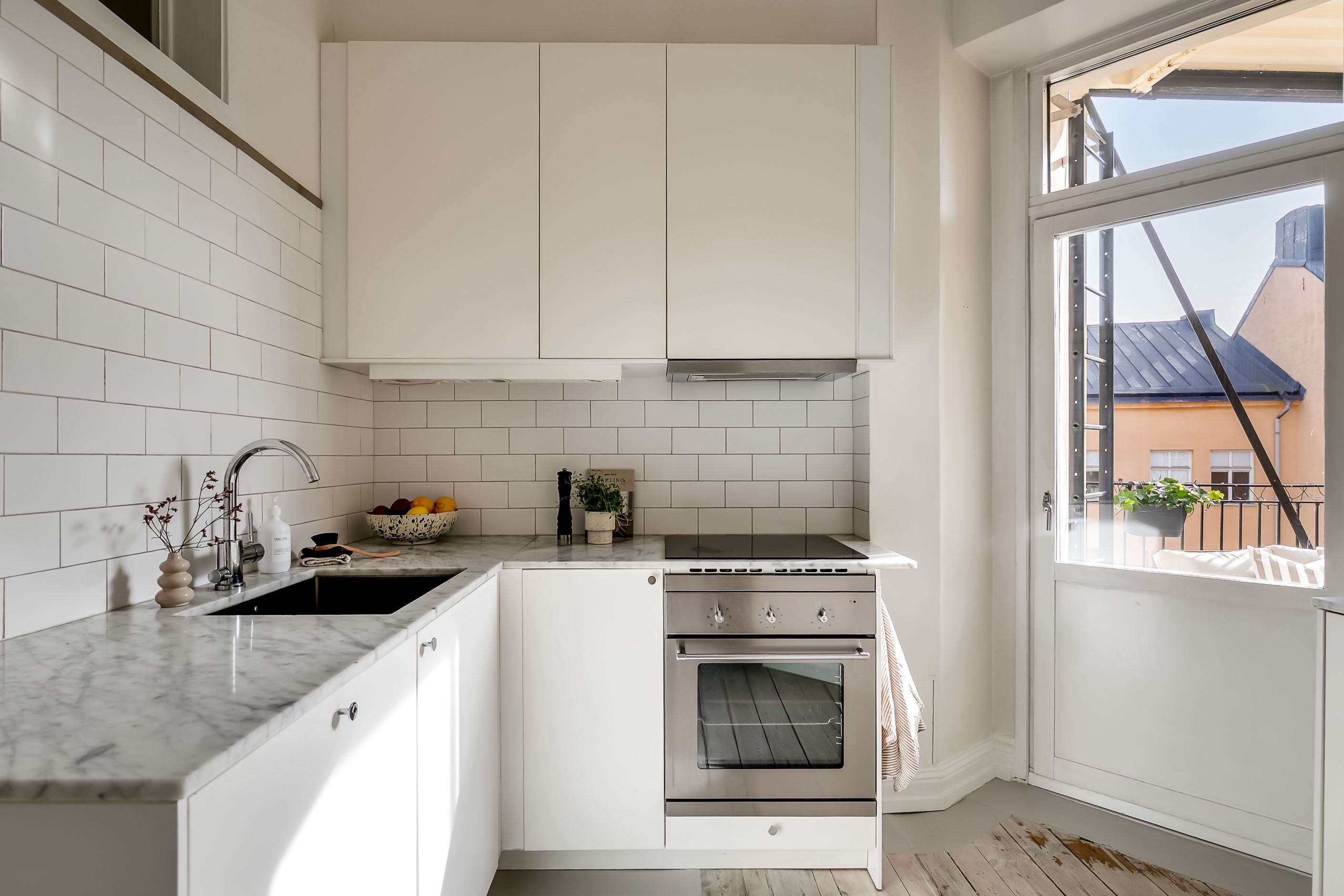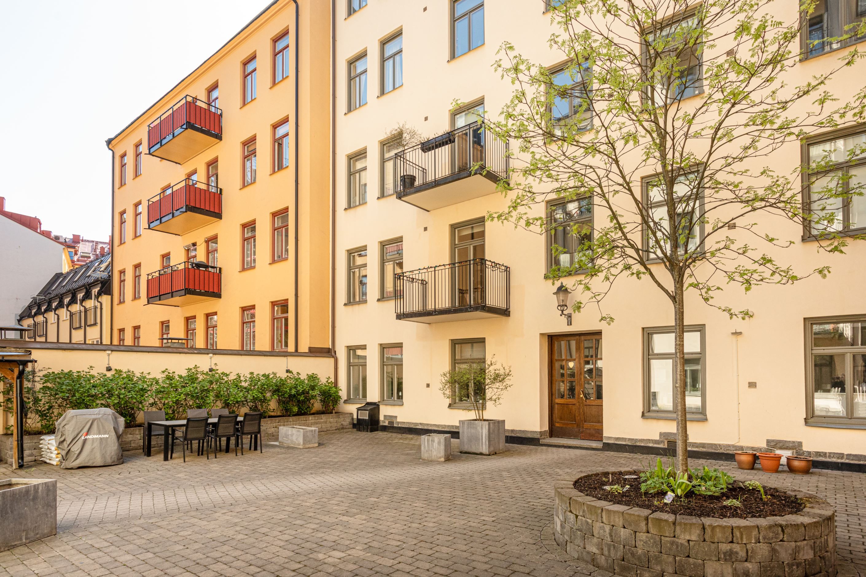 Från köket nås den underbara balkongen i soligt söderläge – en privat plats i solen där morgonkaffet, helgfrukosten eller ett glas vin i sommarkvällen får en självklar plats i vardagen. Läget mot gården gör balkongen till en lugn oas mitt i innerstaden.