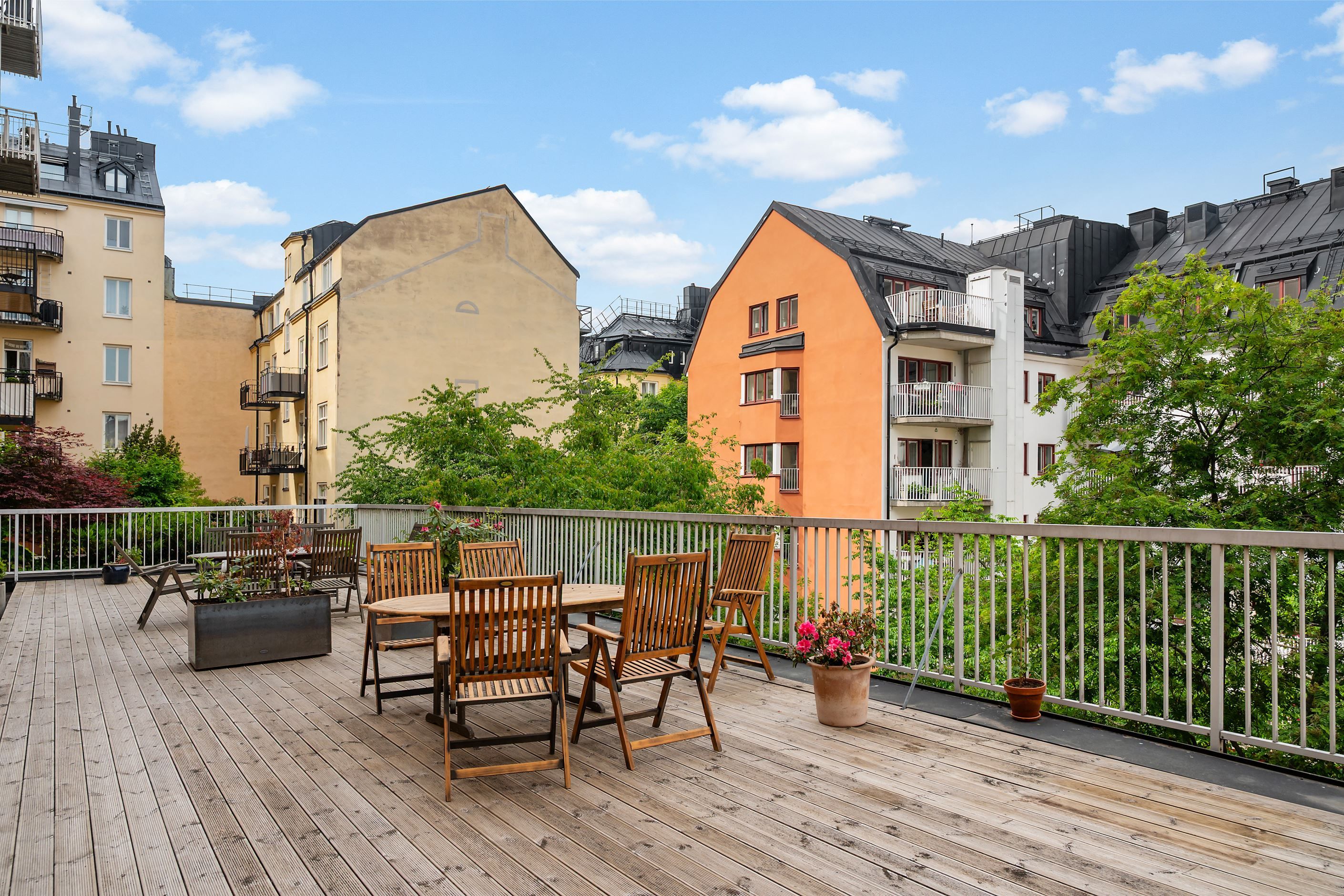 Föreningen är stabil och mycket välskött med en låg långfristig belåning om endast 989 kr/kvm. Som medlem har du tillgång till en stor och grönskande innergård med trall, flera sittgrupper och gott om plats för avkoppling, middagar under bar himmel eller sommarens fikastunder. I huset finns dessutom både bastu och övernattningslägenhet.