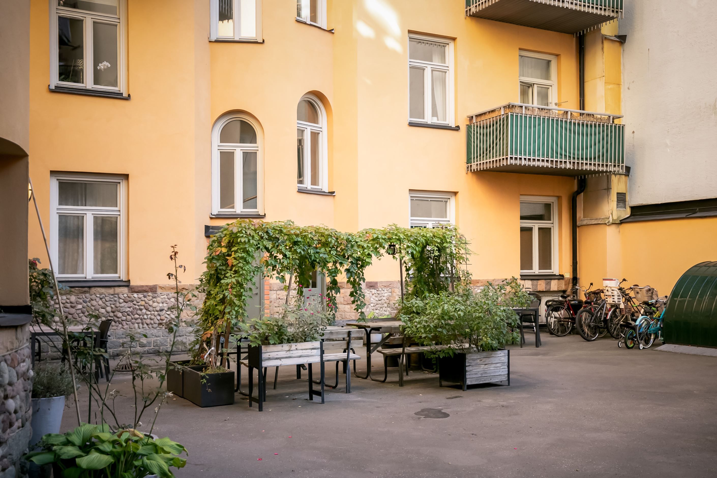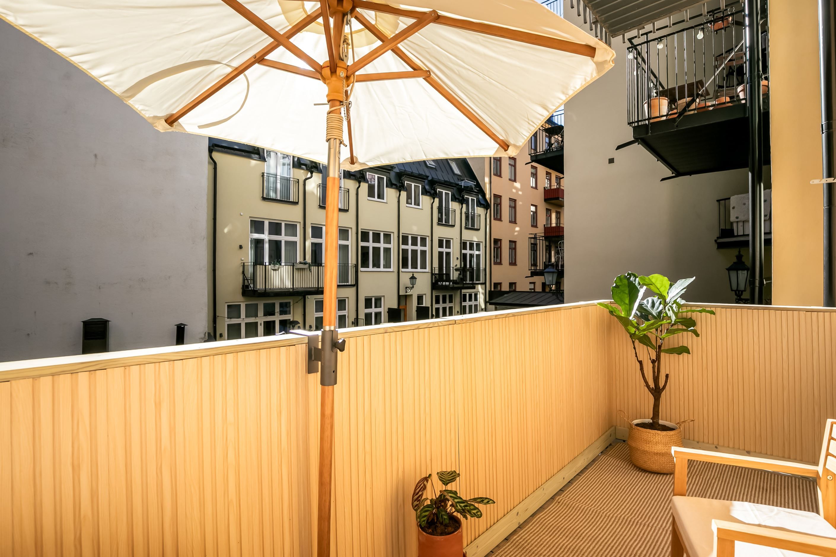 Planlösningen är lika funktionell som inbjudande: två generösa sovrum vetter mot den rofyllda innergården, medan vardagsrum och kök flyter samman i en öppen yta som bjuder in till både vardagsliv och stora middagar. Planlösningen maximerar varje kvadratmeter och inget utrymme går till spillo. Mot gården ligger den rymliga och soliga balkongen i söderläge, en perfekt plats för avkoppling eller socialt umgänge och en fridfull oas mitt i stadens puls.