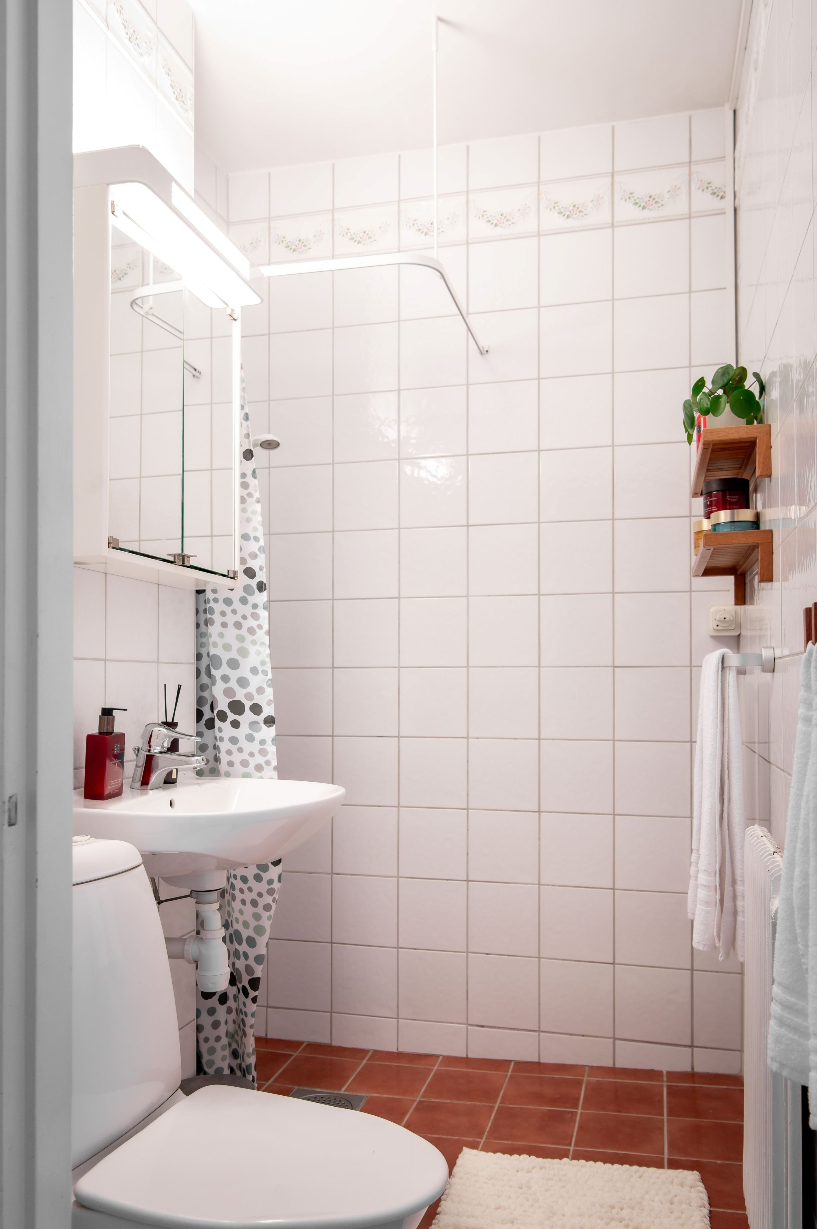 Bostaden ligger på tredje våning, från balkongen ser du ut över kvarteret med sol som sällskap från morgon till eftermiddag.