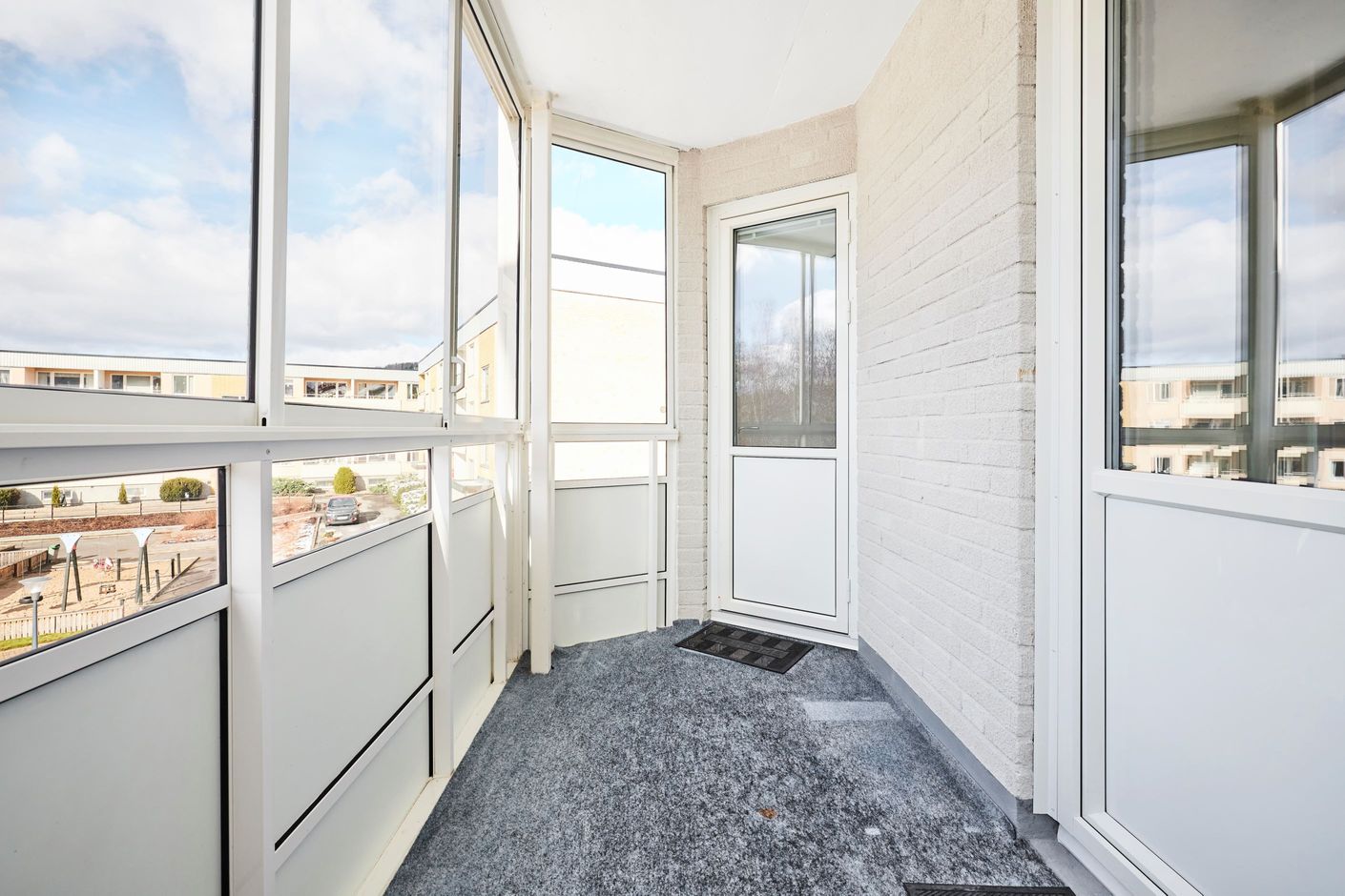 Bostaden bjuder på trevlig inglasad balkong som är perfekt för att kunna nyttja året om. Med ett glasparti som skyddar mot vind och regn, kan du njuta av en underbar utsikt utan att behöva oroa dig för väderleken.