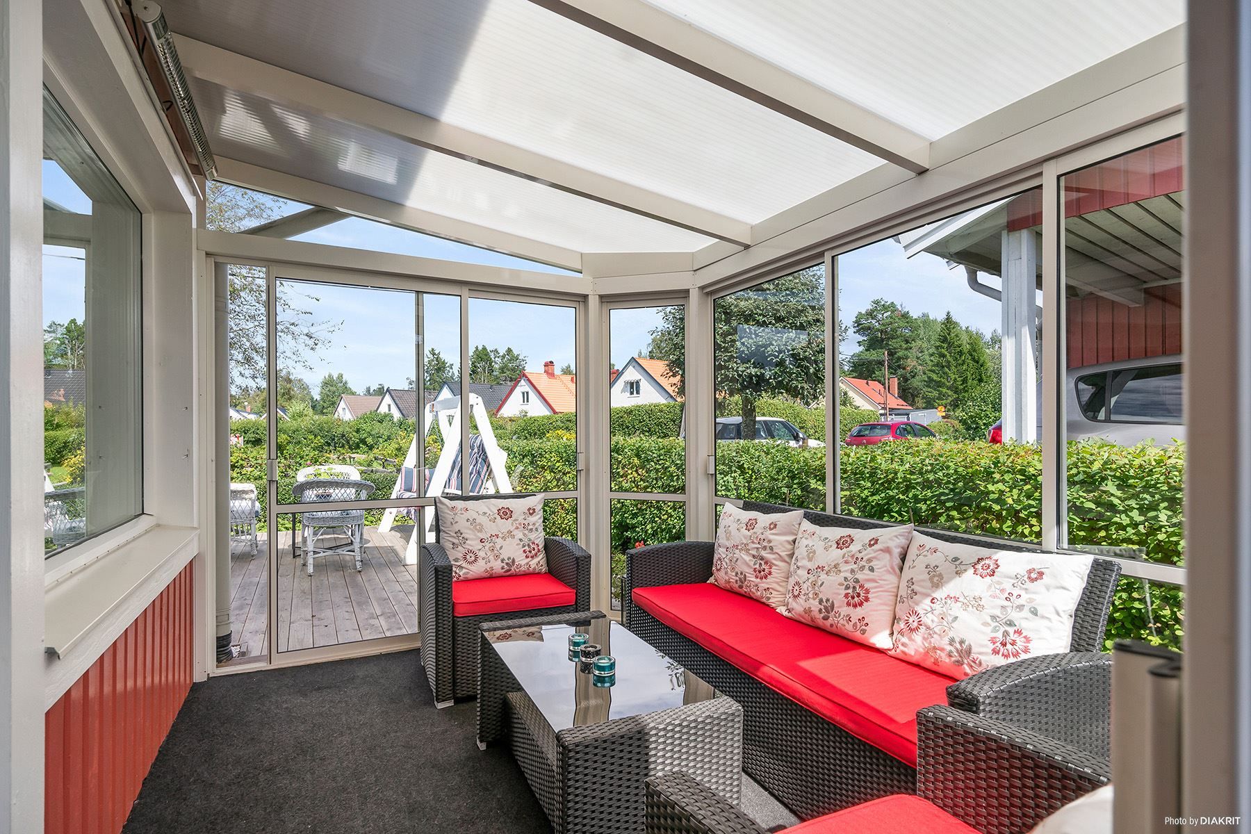 Omtyckt +55-boende med inglasat uterum och solig trädgård