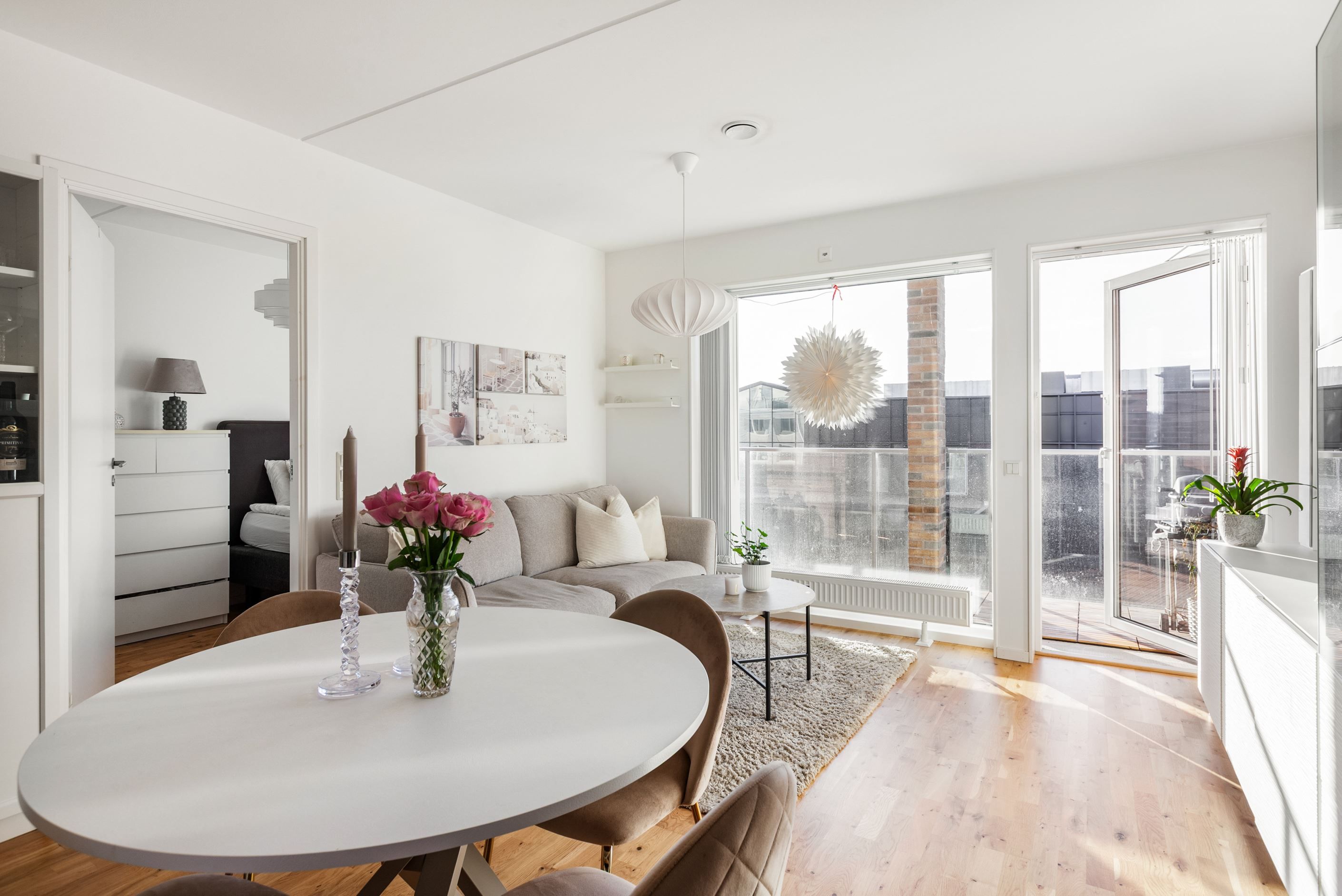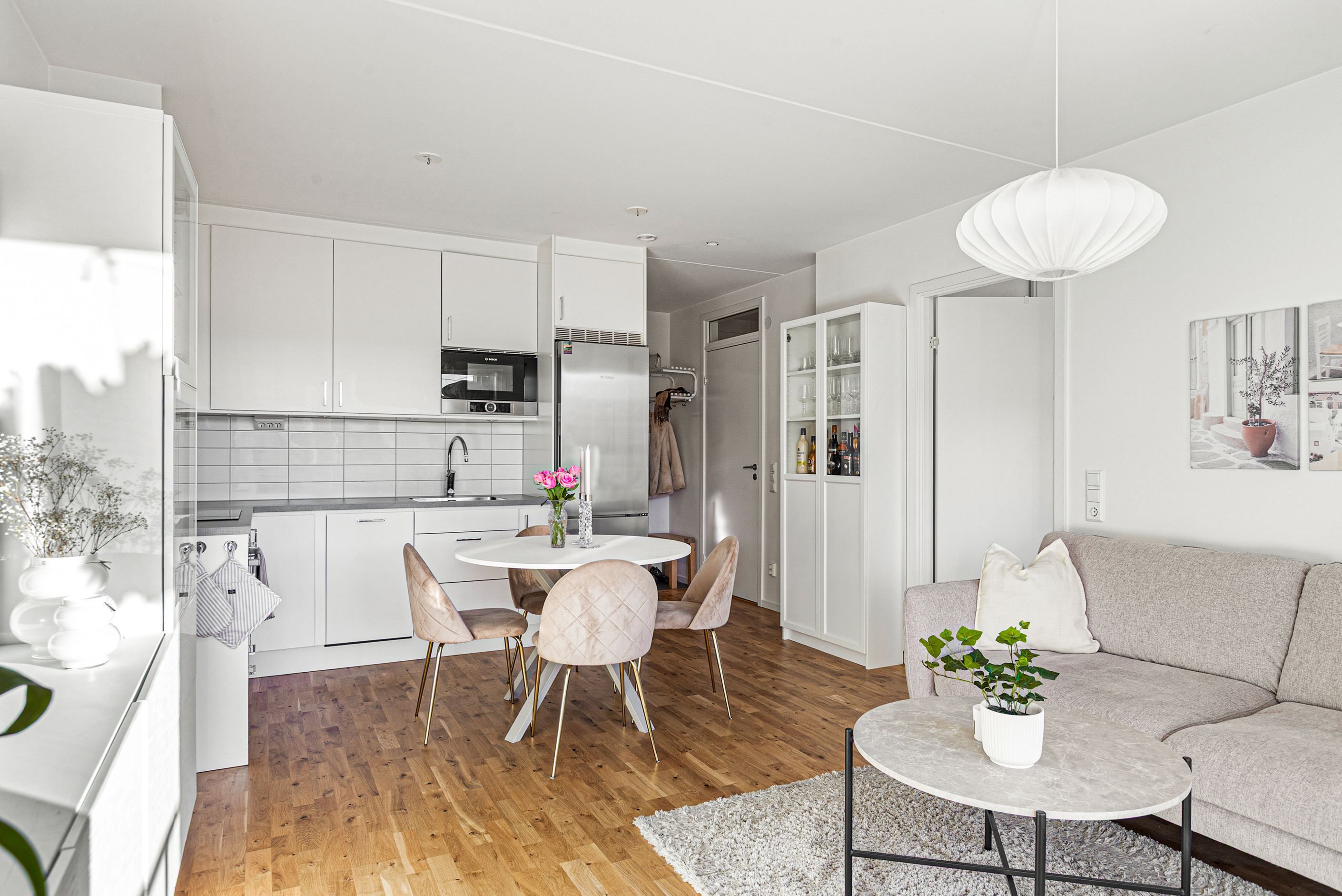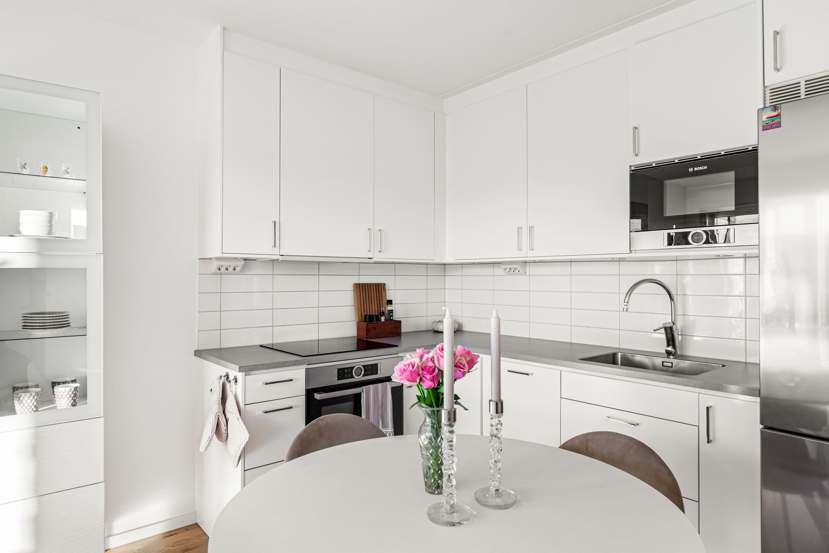 Fantastisk lägenhet på vån 5 med magisk balkong med optimalt solläge! Ljus, välplanerad tvåa med klädkammare, badrum med kombinerad tvätt och tork, fint kök i vinkel med diskmaskin och rymligt vardagsrum. Sovrum med skjurdörragarderob för mer förvaring.