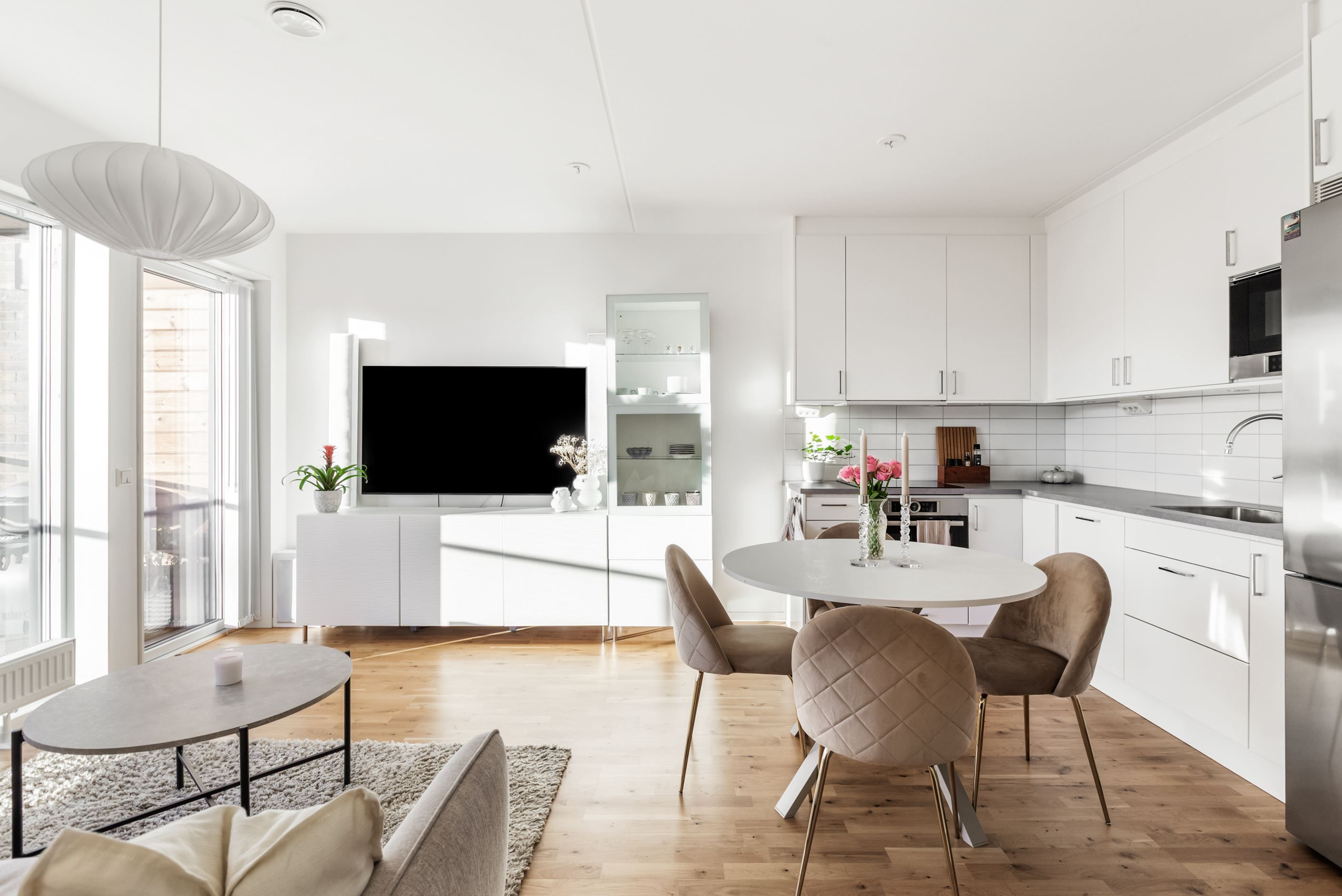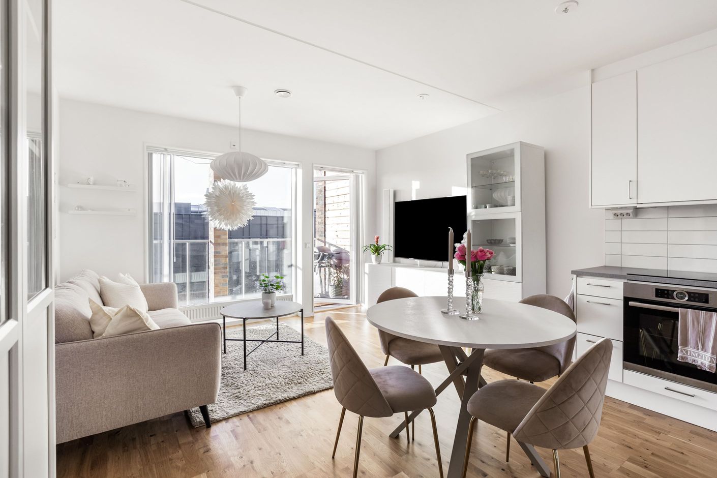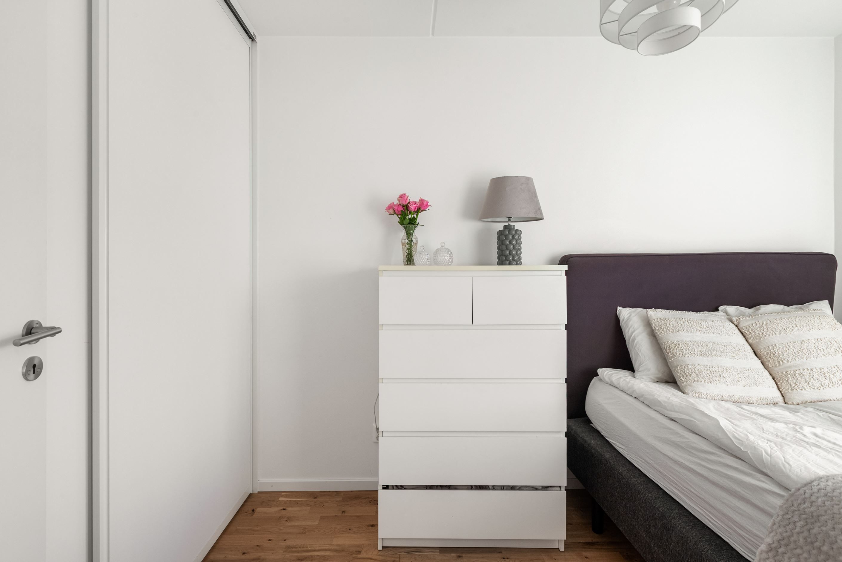 Fantastisk lägenhet på vån 5 med magisk balkong med optimalt solläge! Ljus, välplanerad tvåa med klädkammare, badrum med kombinerad tvätt och tork, fint kök i vinkel med diskmaskin och rymligt vardagsrum. Sovrum med skjurdörragarderob för mer förvaring.