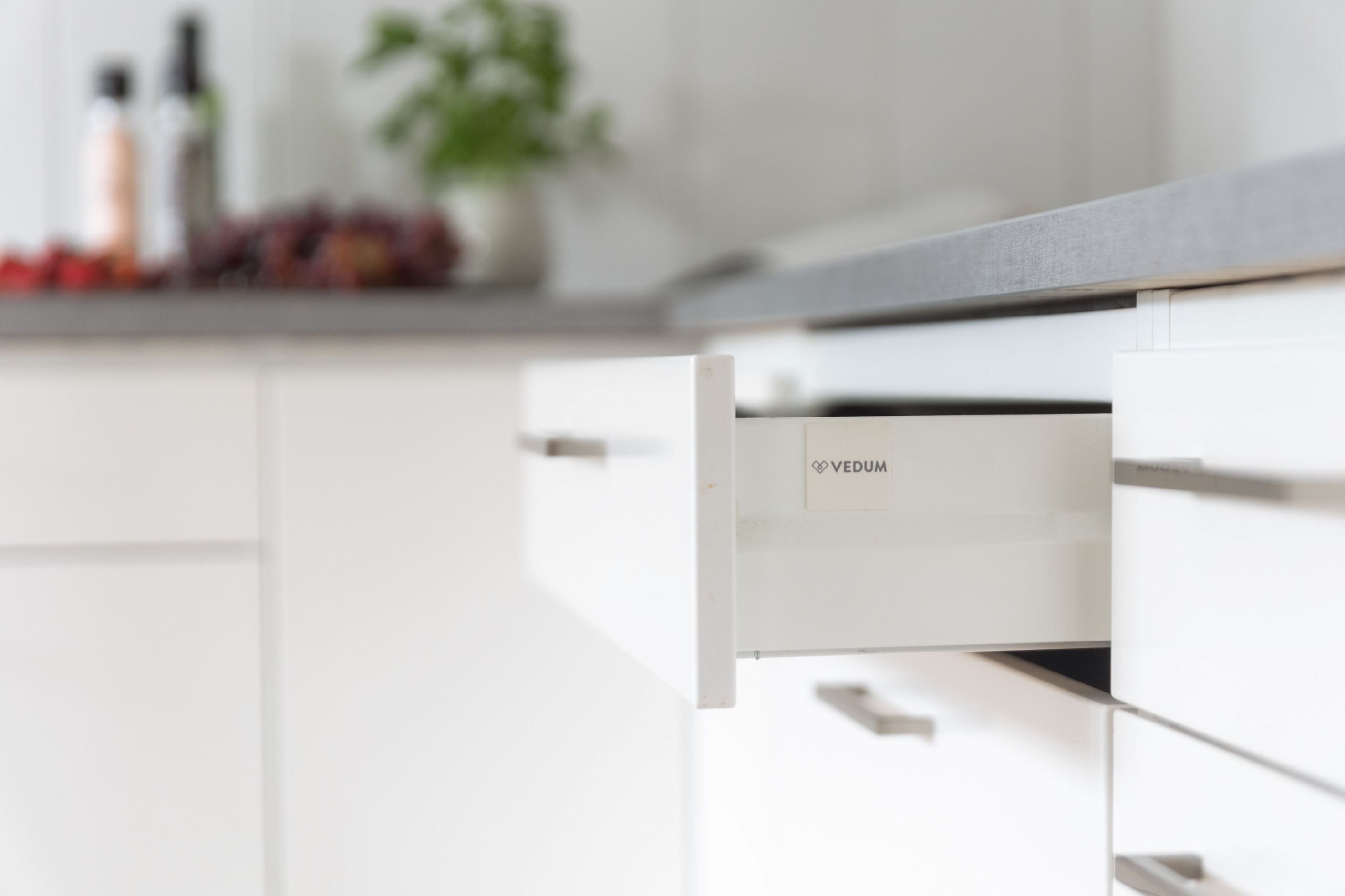 Det stilrena köket går i vitt med goda arbetsytor och full maskinell utrustning – perfekt för dig som gillar att laga mat och bjuda hem vänner. I anslutning finns en rymlig matplats med plats för större sällskap.