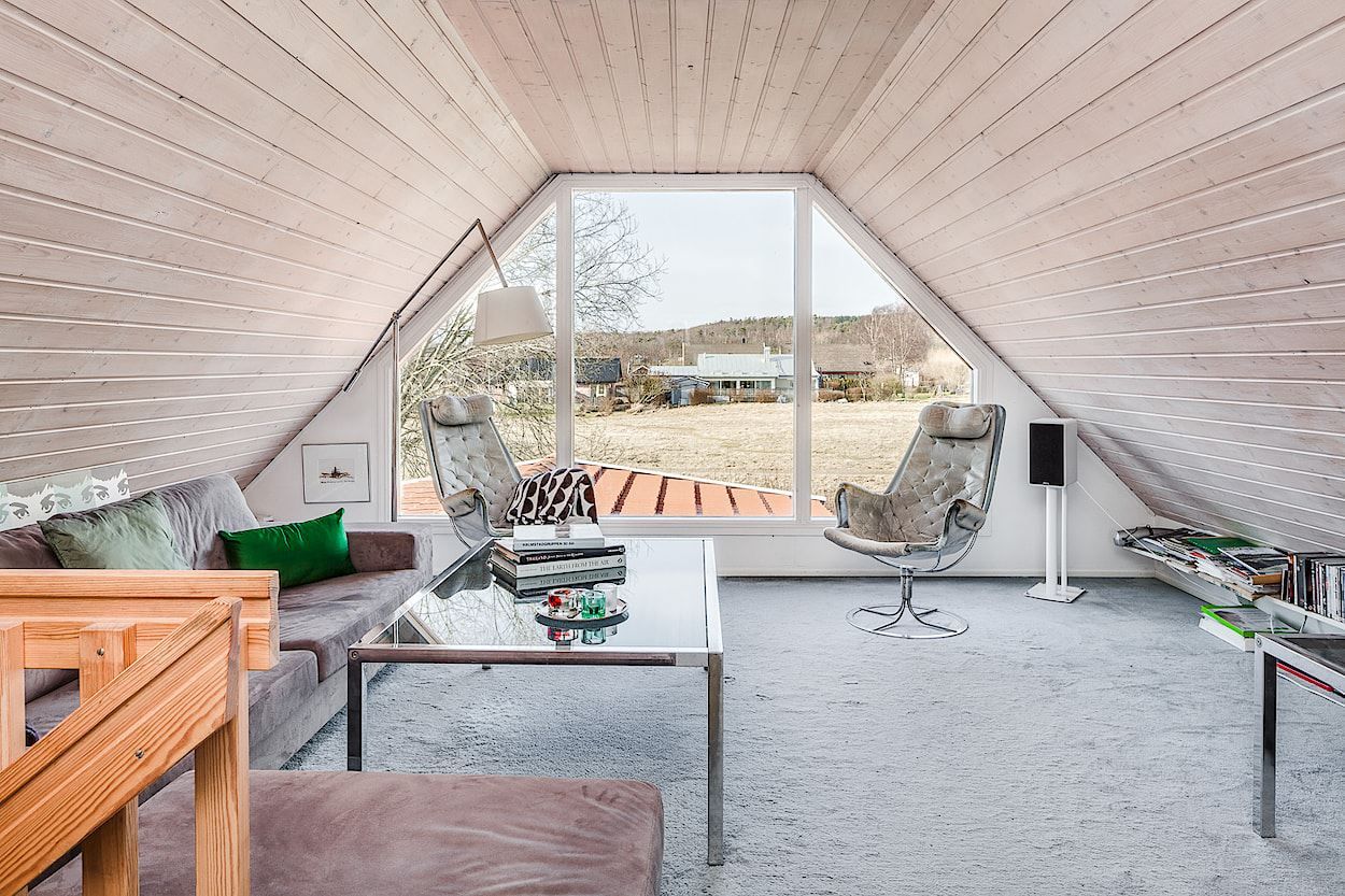 Varje kvadratmeter tjänar väl sitt syfte i en öppen planlösning mellan kök och vardagsrum där ljuset faller generöst och skapar en inbjudande atmosfär för såväl stilla stunder som sociala sammanhang. Från ovanvåningen breder utsikten ut sig genom panoramafönster som låter blicken vila över landskapet och ger en påtaglig känsla av rymd och ro. Uterummet blir en naturlig förlängning av hemmet, en plats där årstidernas skiftningar kan upplevas i ett skyddat och harmoniskt sammanhang.