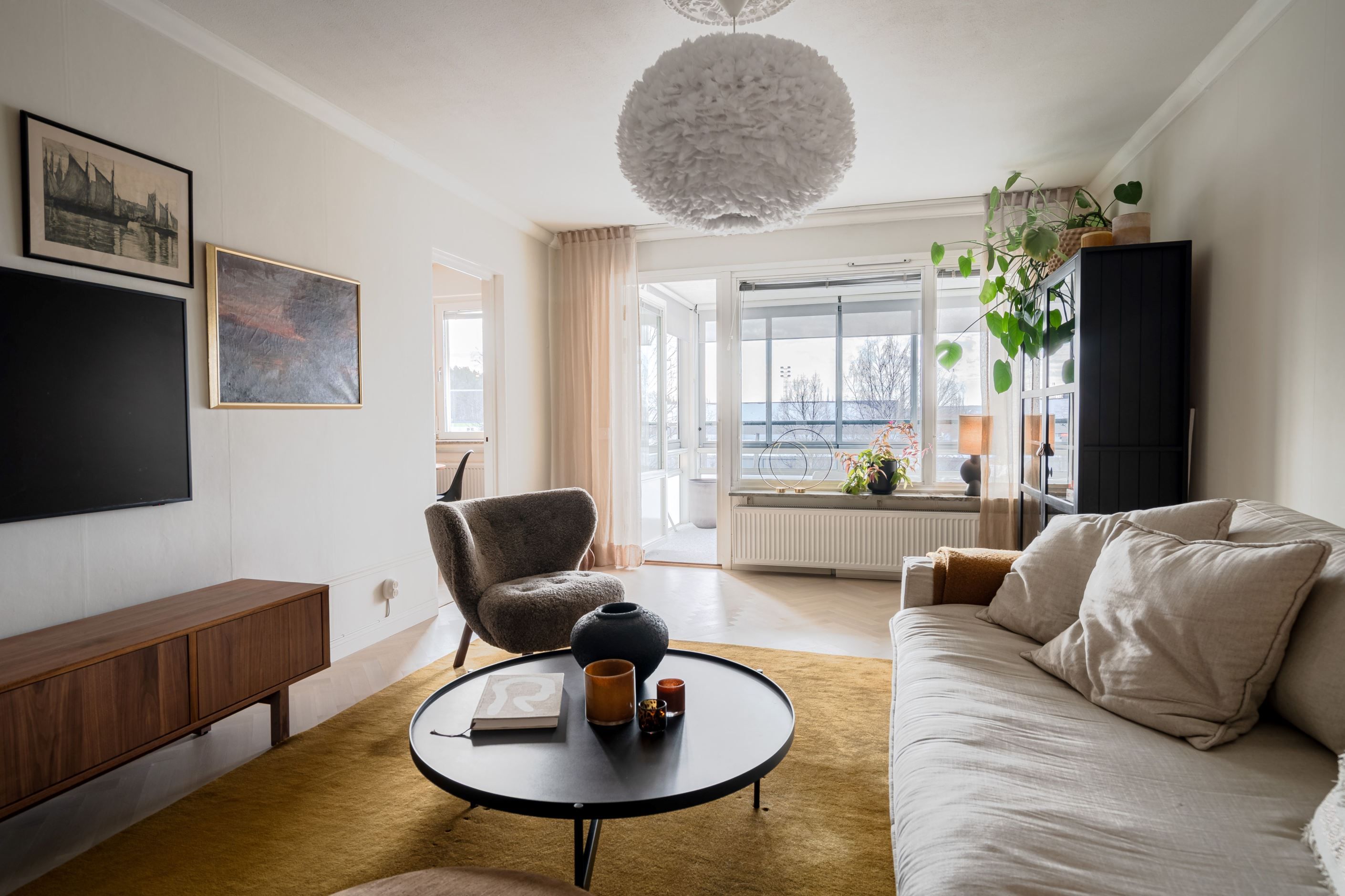 Högst upp i huset, med ett fritt och högt läge, väntar denna smakfullt renoverade trea om 70,5 kvm - ett hem där ljuset flödar och där varje detalj präglas av stilrena materialval och en harmonisk helhet. Här möts du av genomgående uppdaterade ytskikt, ett totalrenoverat kök och en stor inglasad balkong i soligt söderläge som blir en naturlig förlängning av bostaden.