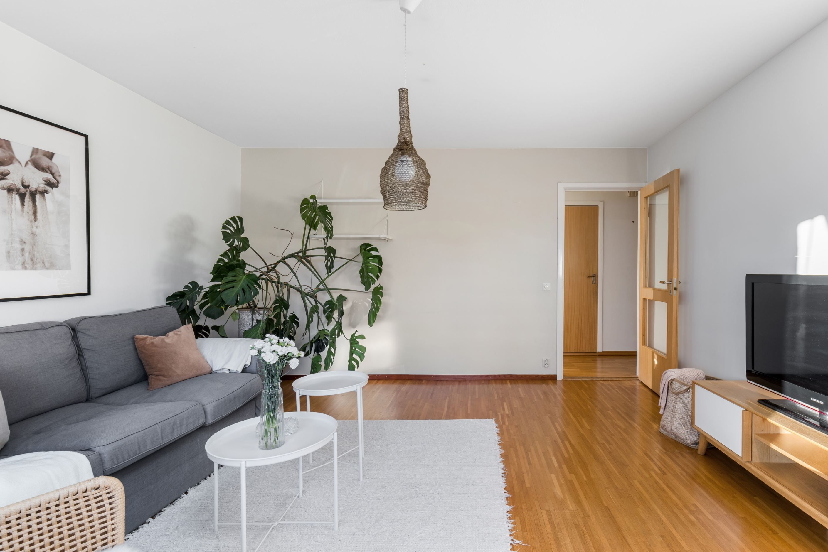 Lägenheten präglas av en öppen planlösningen som är både funktionell och lättmöblerad. Vardagsrummet är rymligt och har plats för en stor soffgrupp och med fönster mot Fyrisån. Även sovrummet vetter mot ån och rymmer dubbelsäng samt förvaring. Köket har gott om arbetsytor, plats för matbord och utgång till balkong i sydvästläge. Badrummet är helkaklat och utrustat med badkar och tvättmaskin. Förvaring finns i hall och sovrum samt ett förråd i källaren. Genomgående parkettgolv och ljusa ytskikt ger ett enhetligt intryck i hela bostaden.