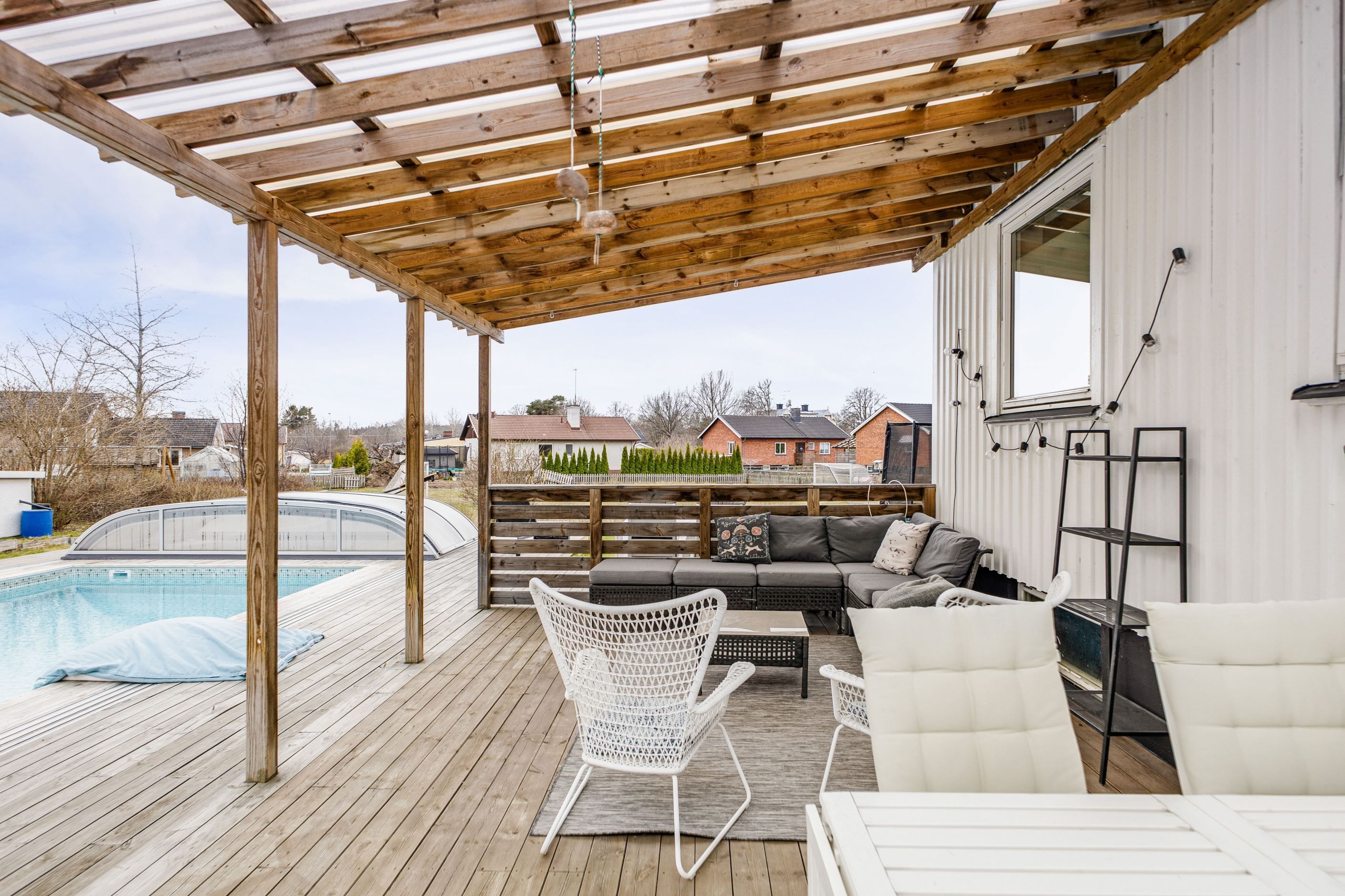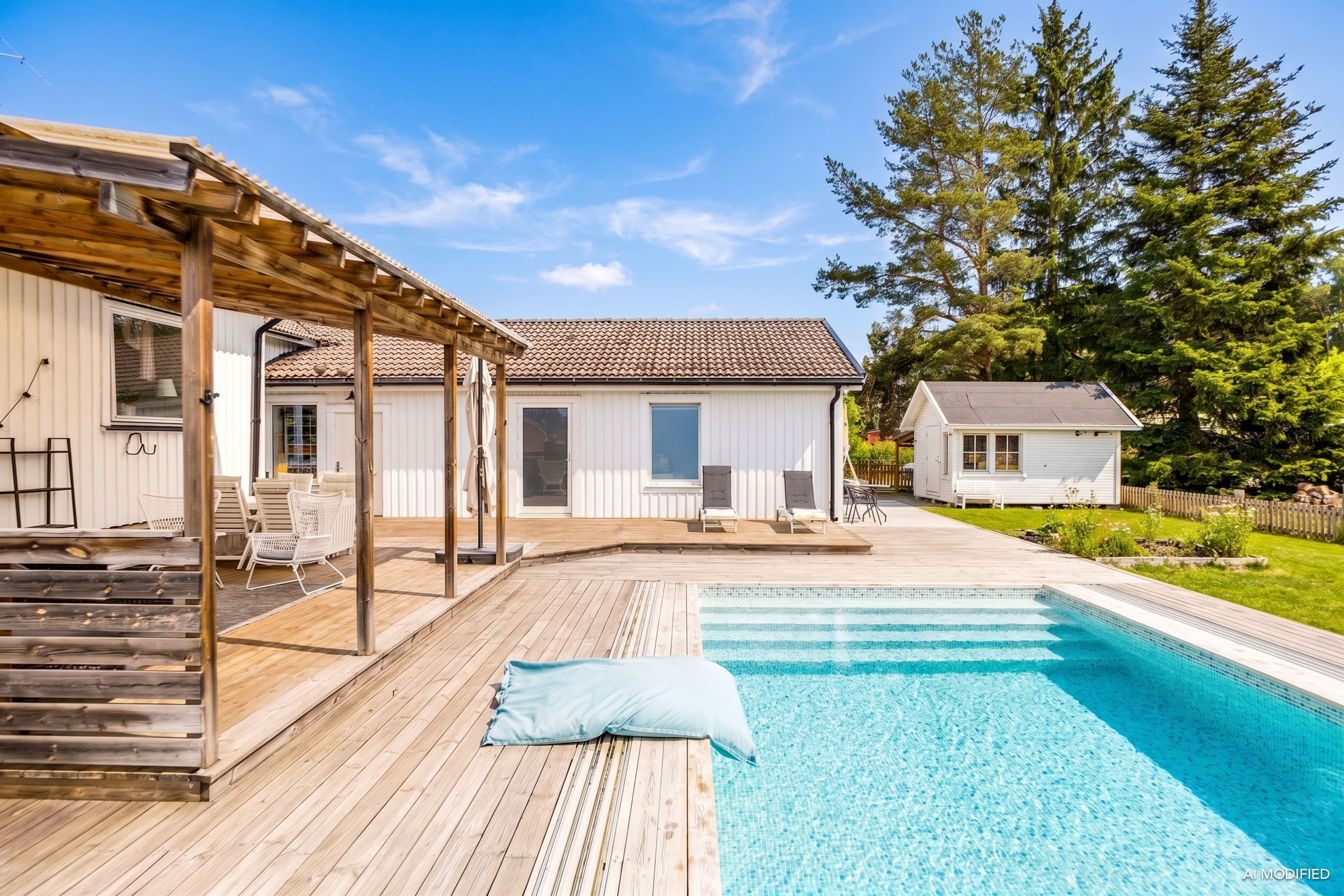 Entréplanet bjuder på en härlig öppen planlösning med bla ett mycket tilltalande kök. Här finner ni även fyra sovrum varav ett masterbedroom med eget badrum och utgång till balkong. De sociala ytorna bjuder in till umgänge med både familj och vänner, inte minst tack vare den stämningsfulla eldstaden som blir hemmets självklara samlingspunkt. Från det stilrena, helkaklade badrummet kliver du rakt ut till poolen där sommaren känns lite längre. Uteplatsen med många soltimmar förlänger dagen och gör utelivet till en naturlig del av boendet. För extra avkoppling finns dessutom en vedeldad bastu.