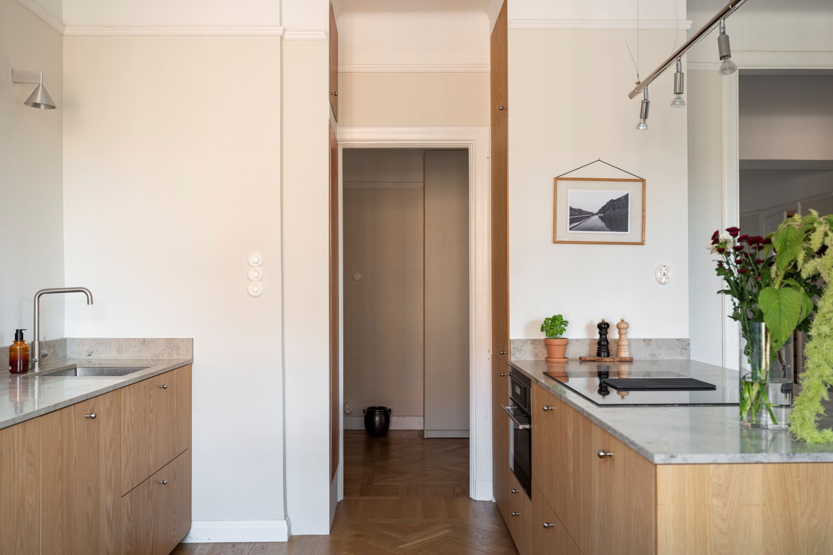 Välkommen till denna stilfullt renoverade tjugotalspärla, belägen högt upp i huset. Här möts du av en bostad som på bästa sätt förenar tidstypiska detaljer med moderna lösningar – en perfekt kombination av charm och funktionalitet.