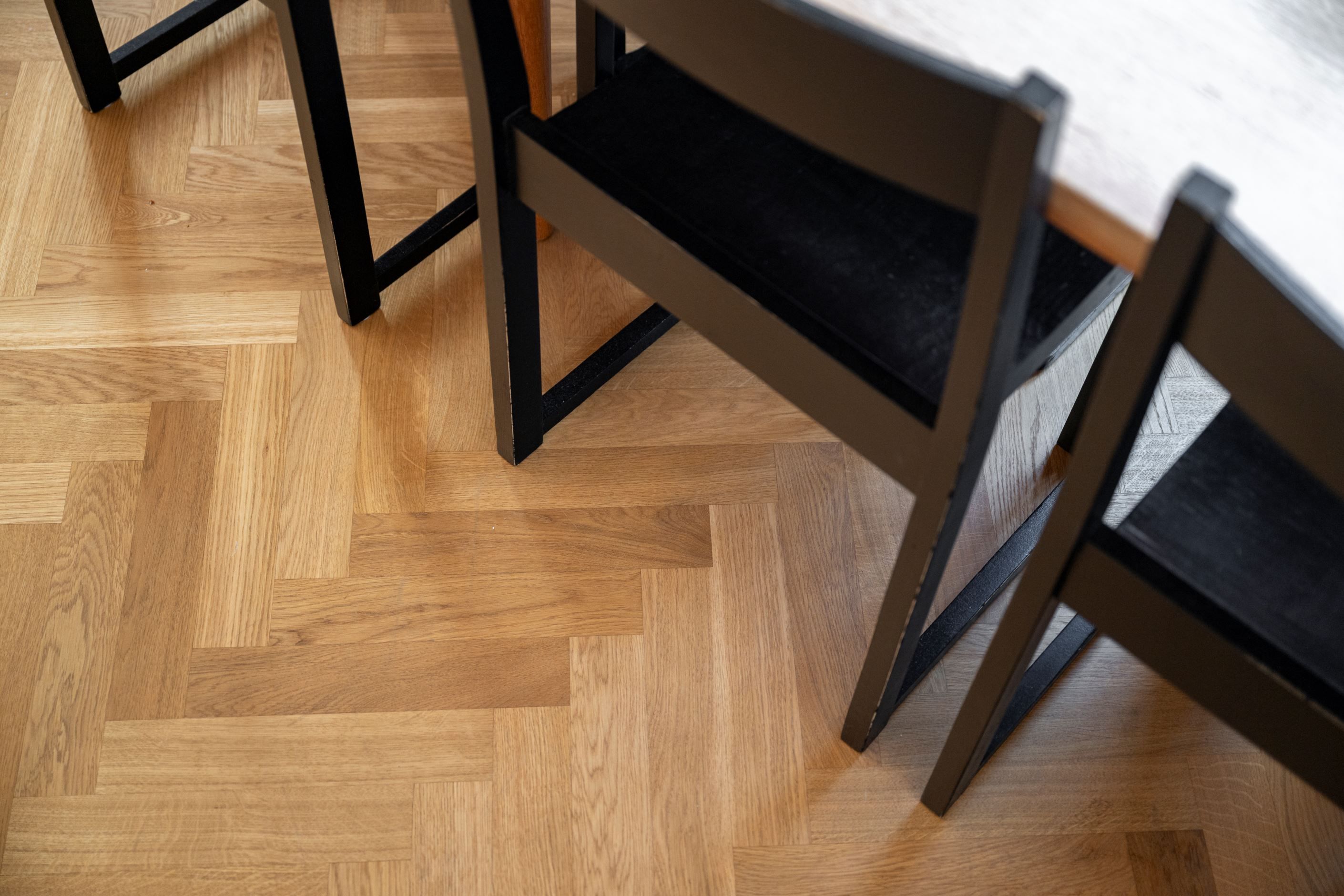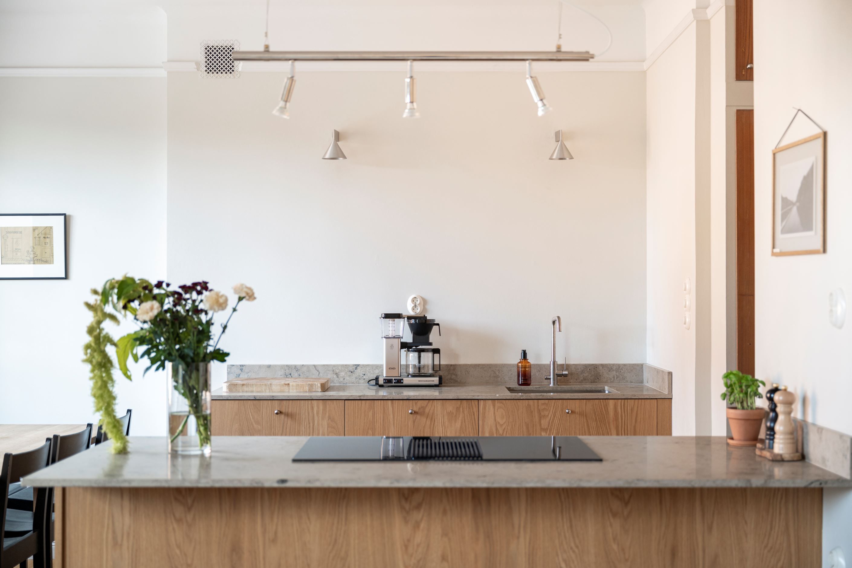 Den genomgående planlösningen skapar ett naturligt flöde mellan rummen. Kök och vardagsrum vetter mot gatan och bjuder in till både sociala tillställningar och avkopplande vardagskvällar. Takhöjden, de stora fönstren och den fria utsikten ger ett fantastiskt ljusinsläpp och en härlig känsla av rymd.