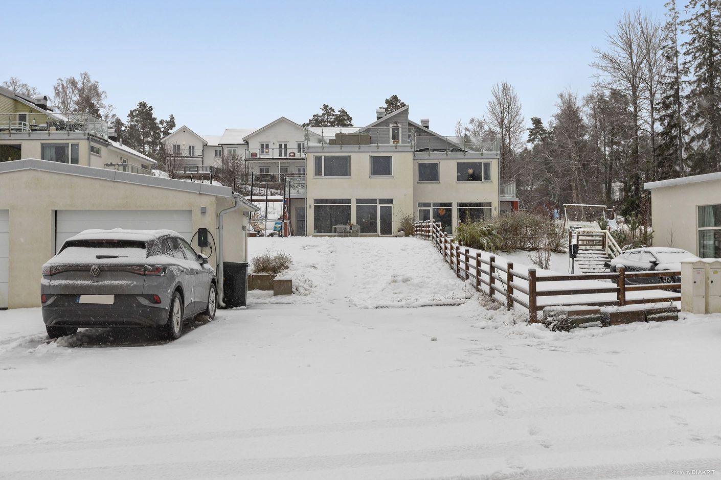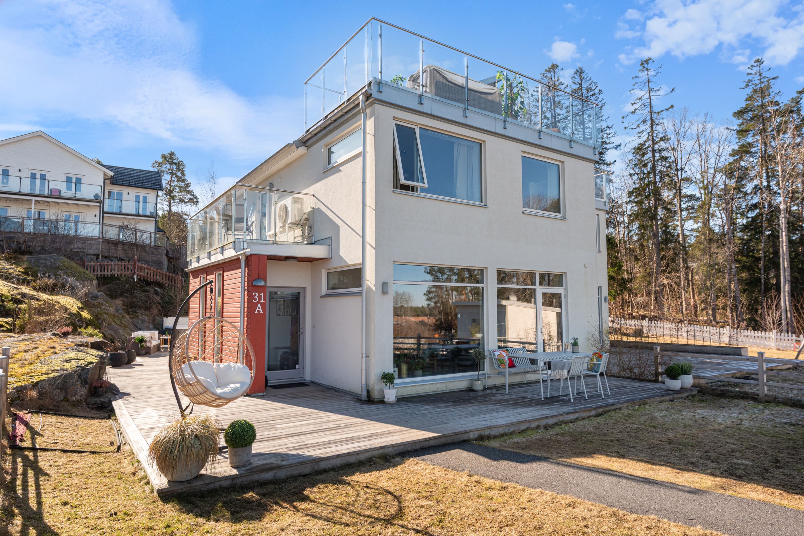 Välkommen till detta stilfulla parhus som bjuder på modern arkitektur och utsikt över Torsbyfjärden. Huset består av fyra fina sovrum varav ett av rummen har ett platsbyggt loft om 2,5 kvm med utrymme för en 120-säng (frihöjd om 180 cm). Kök och vardagsrum i trevlig öppen planlösning och två helkaklade badrum varav ett med tvättmaskin och torktumlare samt enkel access till spabadet. Huset har påkostade materialval och samtliga vitvaror är från Miele. De stora fönsterpartierna skapar generöst med ljusinsläpp och en fantastisk känsla av rymd. Båda våningsplanen har vattenburen golvvärme for bästa komfort. För det riktigt varma sommardagarna finns även luftvärmepump med kyla.