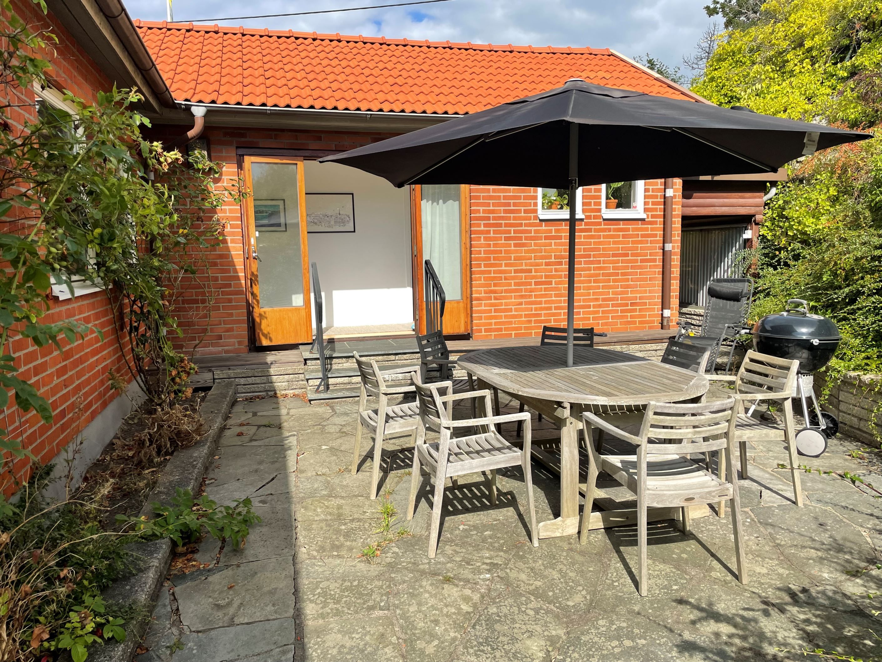 På en lummig och privat trädgård har ni detta L-formade enplanshus med källare. En ett funktionellt hus med smart planlösning.