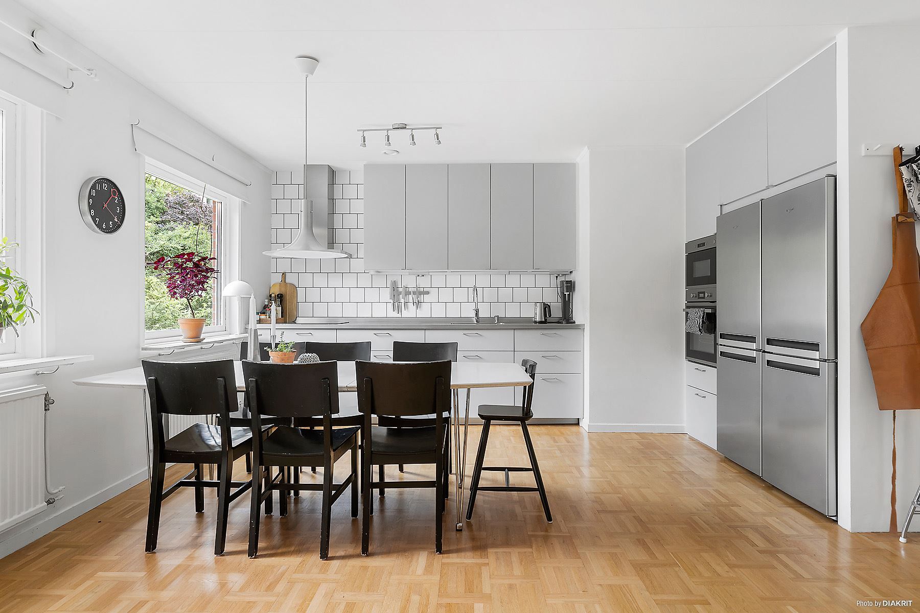 Huset inreds med klassiska materialval ifrån 50-talet som man senare moderniserat med nyare renoveringar så som kök och badrum. Huset inreds idag med 3 sovrum på entréplan varav ett av sovrummen enkelt kan delas upp till två. Både stort vardagsrum och kök ger generösa ytor för umgänge med familj och vänner. I källarplan har ni extra sovrum och förvaringsytor.