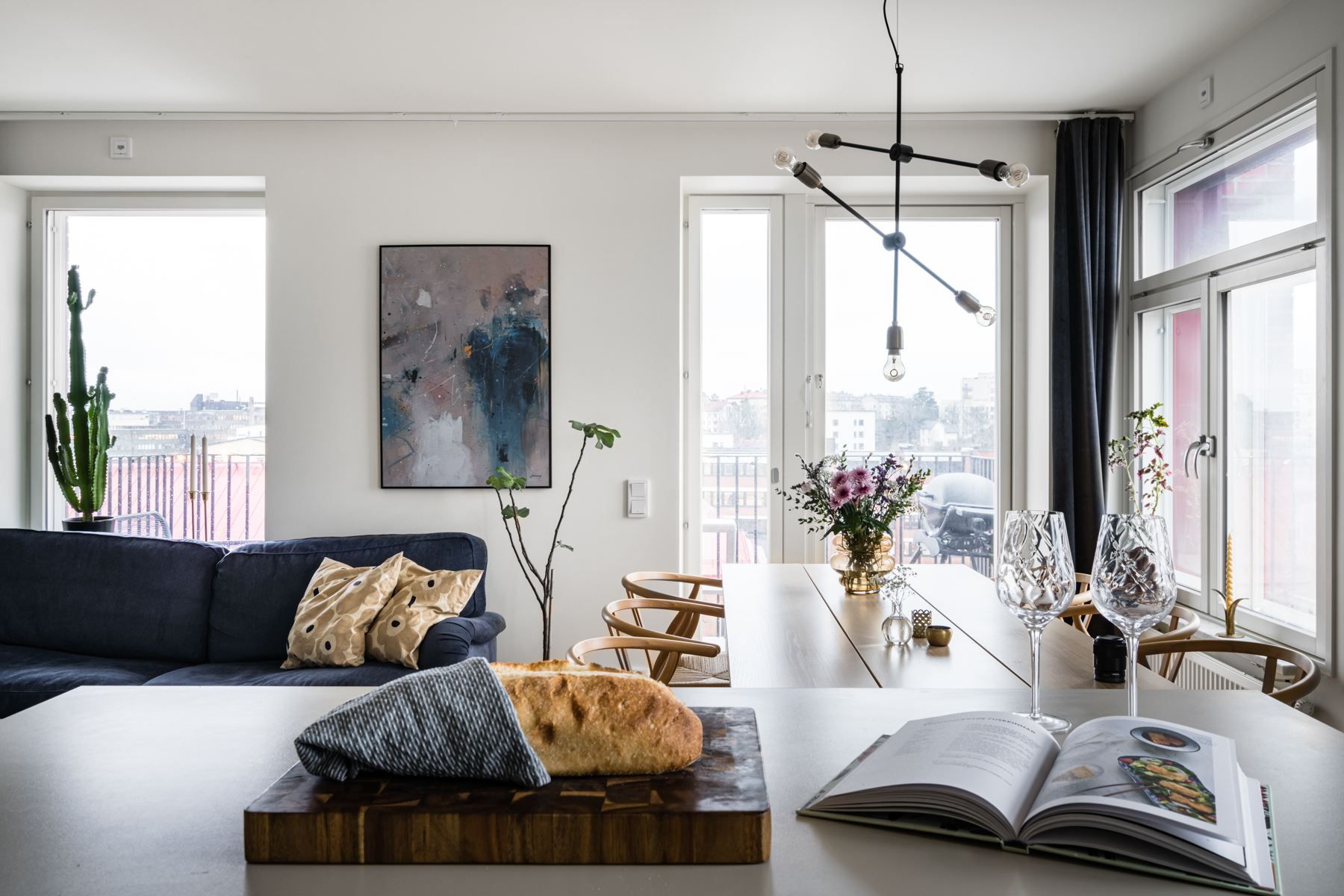 - Milsvid vy högt upp med takåsarna som granne från både balkong likväl bostadens fönsterpartier. Perfekt för nyårsraketerna!