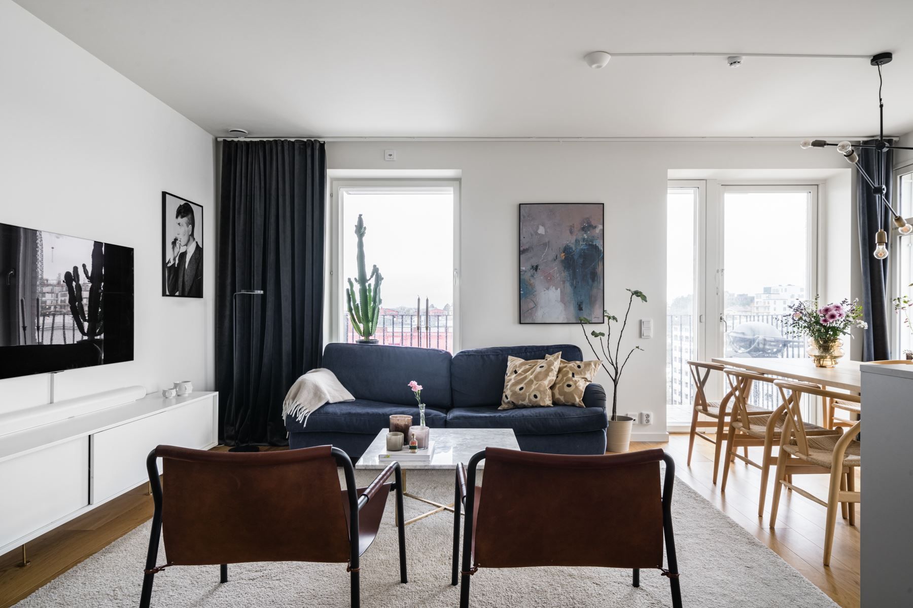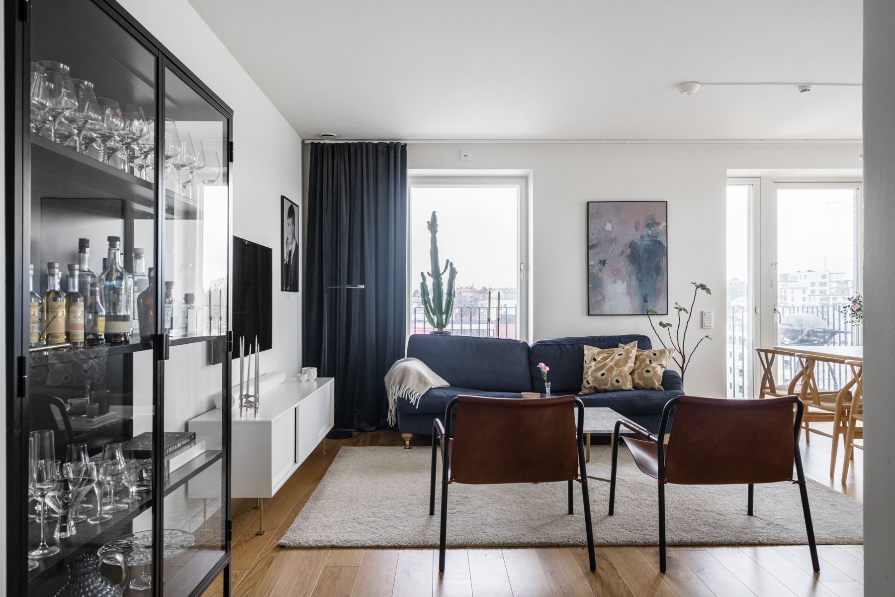 Poggenpohl-köket och vardagsrum flyter ihop fint där du har plats för en soffgrupp samt en plats för matbord. Plats för hemmakontoren runt om bostaden. En lägenhet som passar dig som har behov av ljuset och vill bo nära pulsen. Runt hörnan kommer du till ett av de mest centrala lägen i Sundbyberg med kommunikationer, restauranger, barer, närbutiker och grönområden.